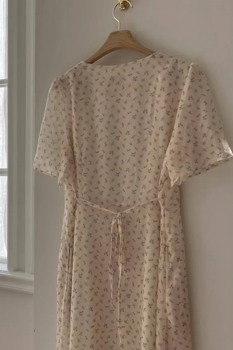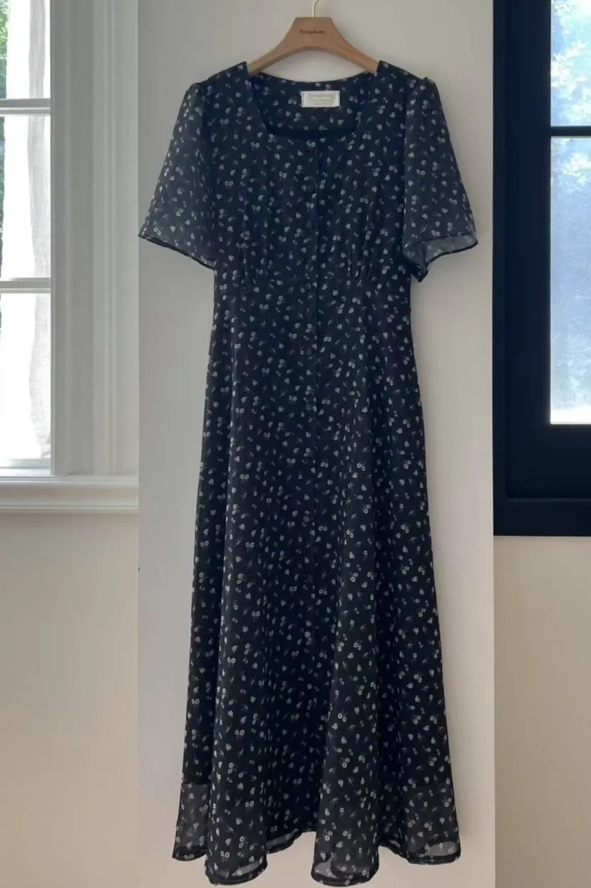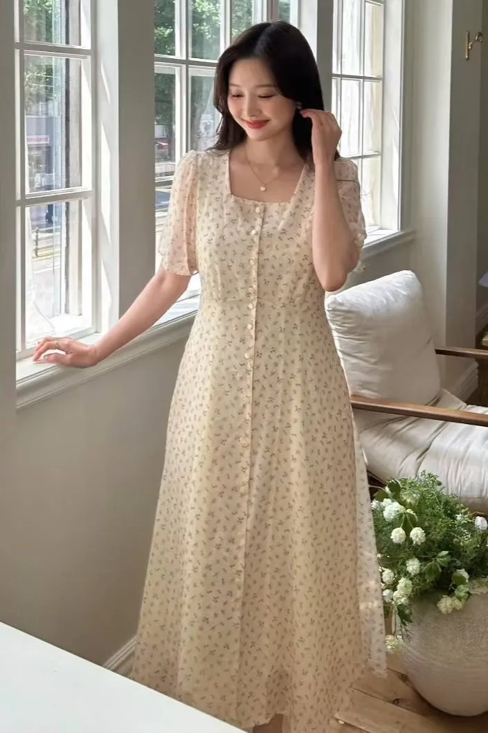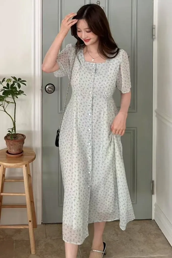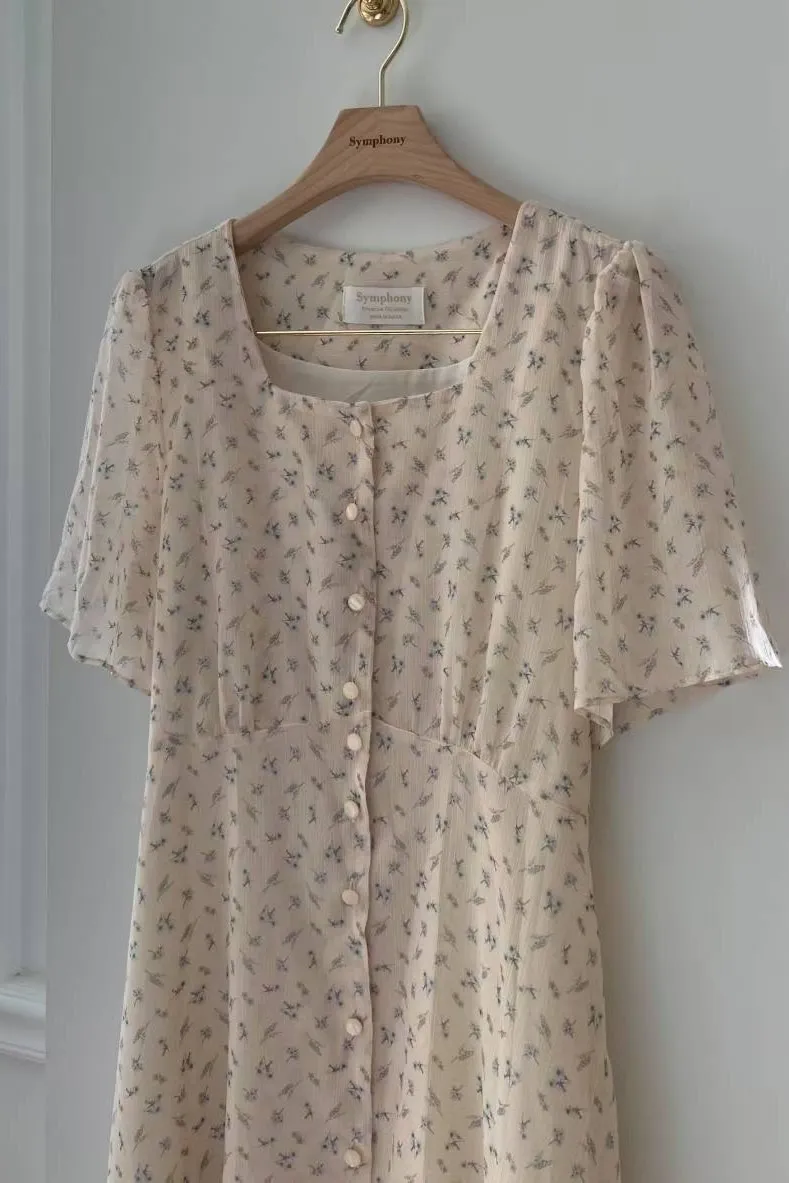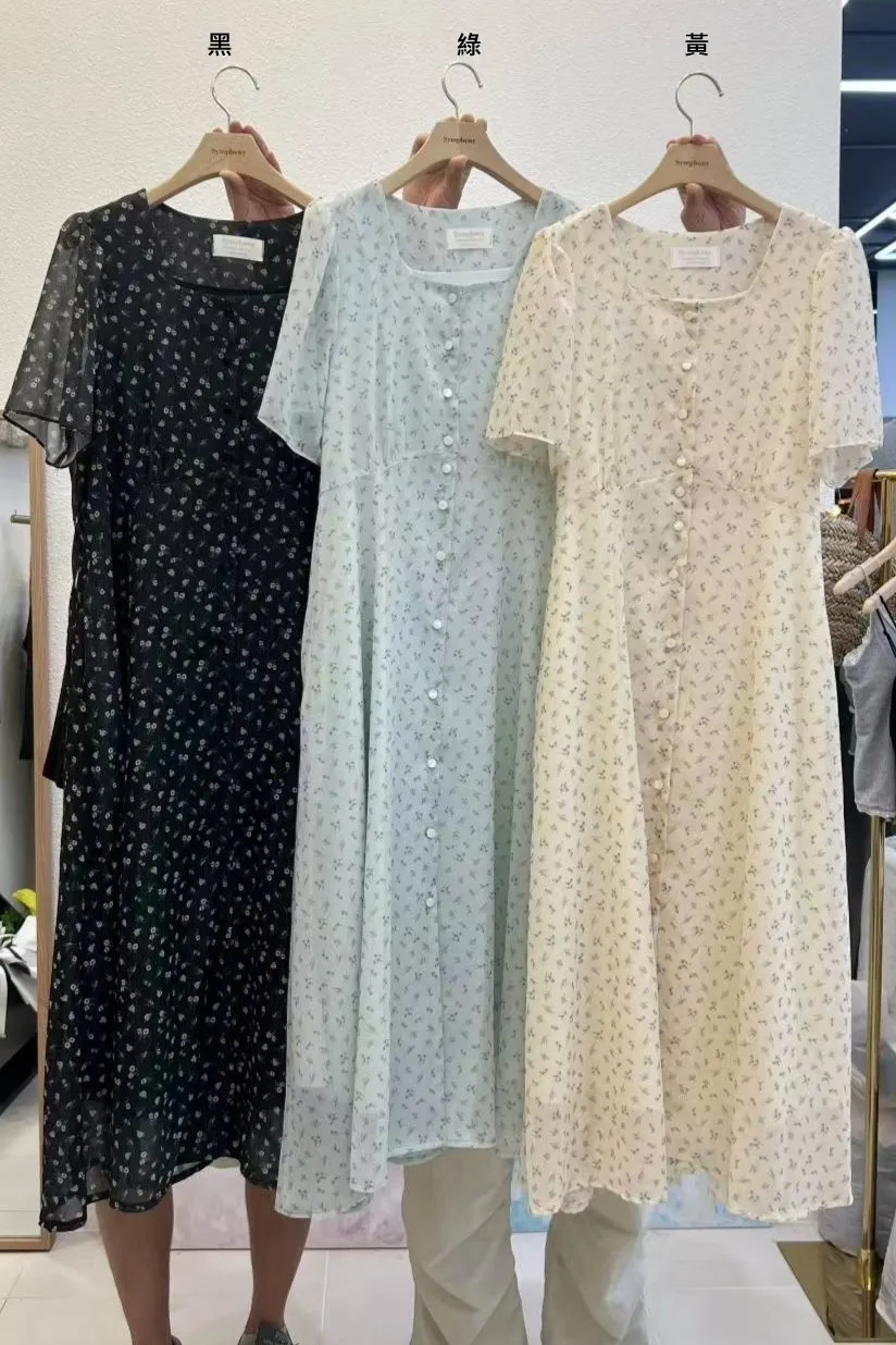 雪紡 方領排釦 小清新風格 自然腰身綁線裙擺 有內裡 有口袋 超敏肌略過