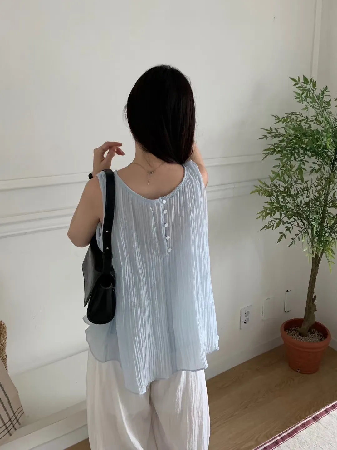 髮絲雪紡 層次透光 可兩面穿 輕盈薄款 不易皺 背後排釦
