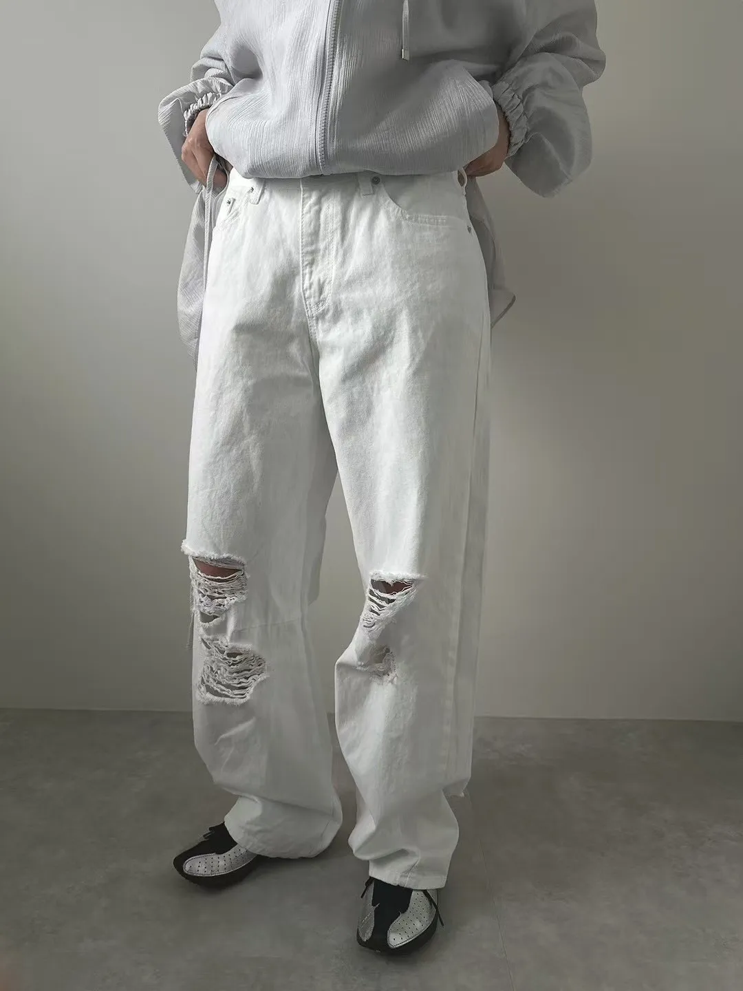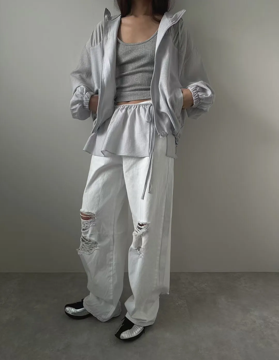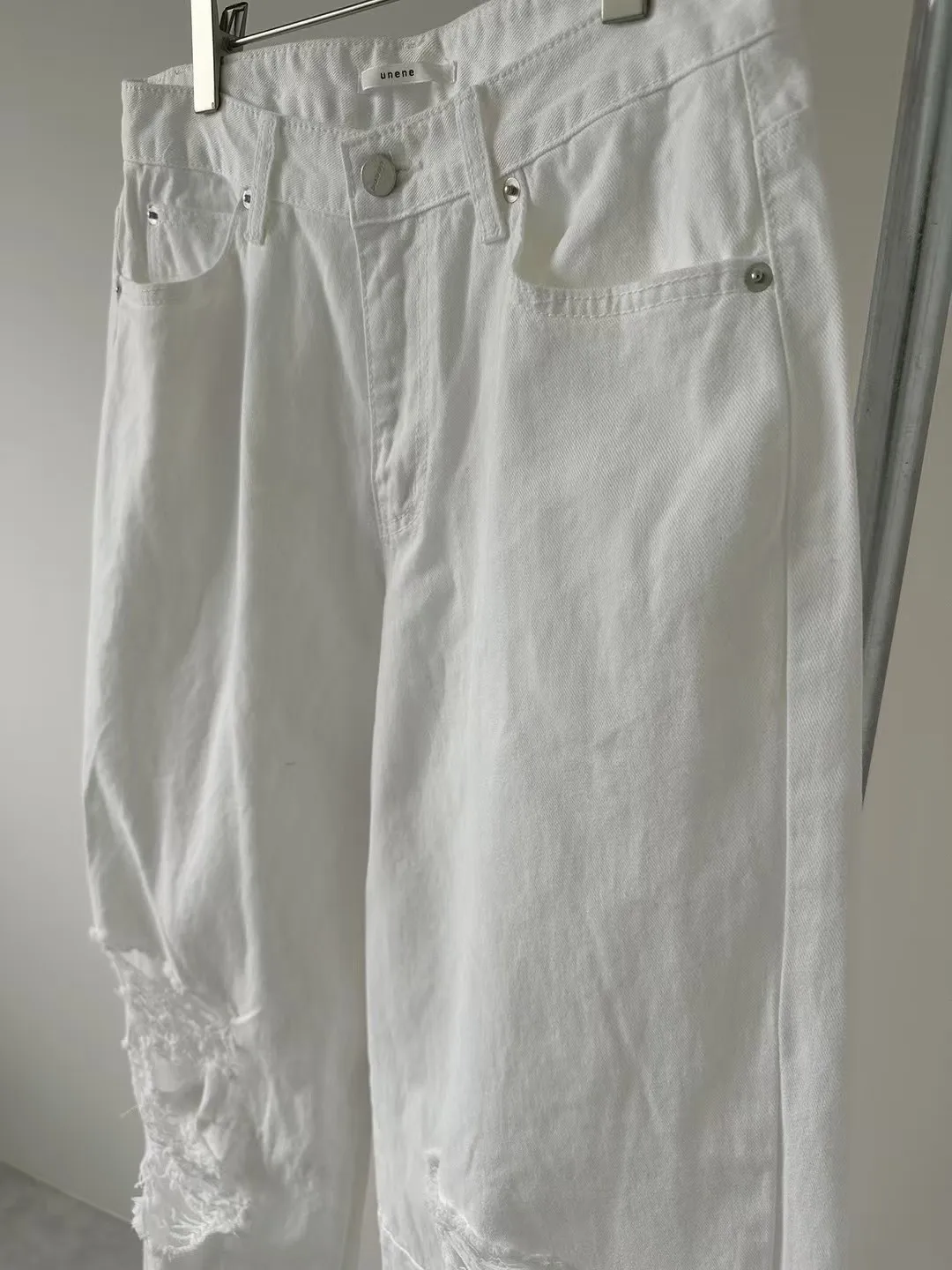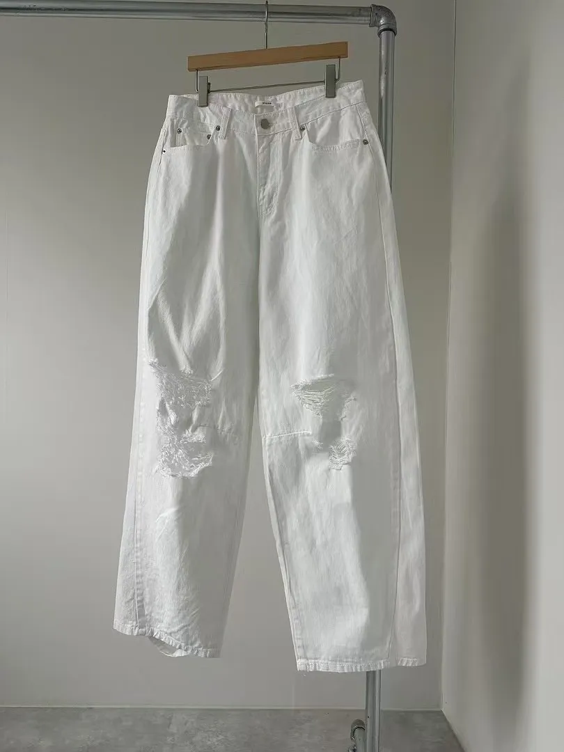 棉 釦鍊穿脫 刷破設計 有口袋 厚度四季皆宜 中低腰版型