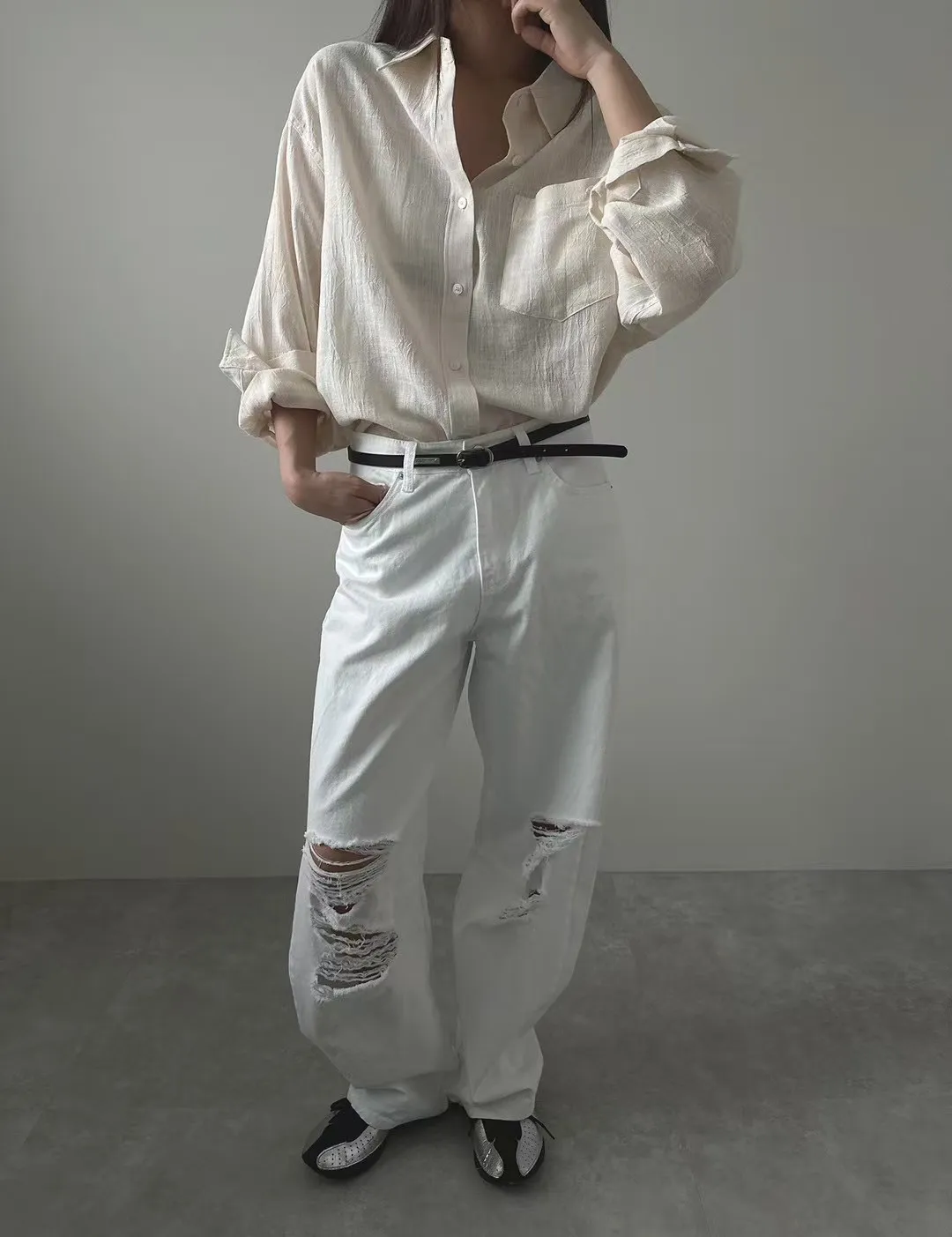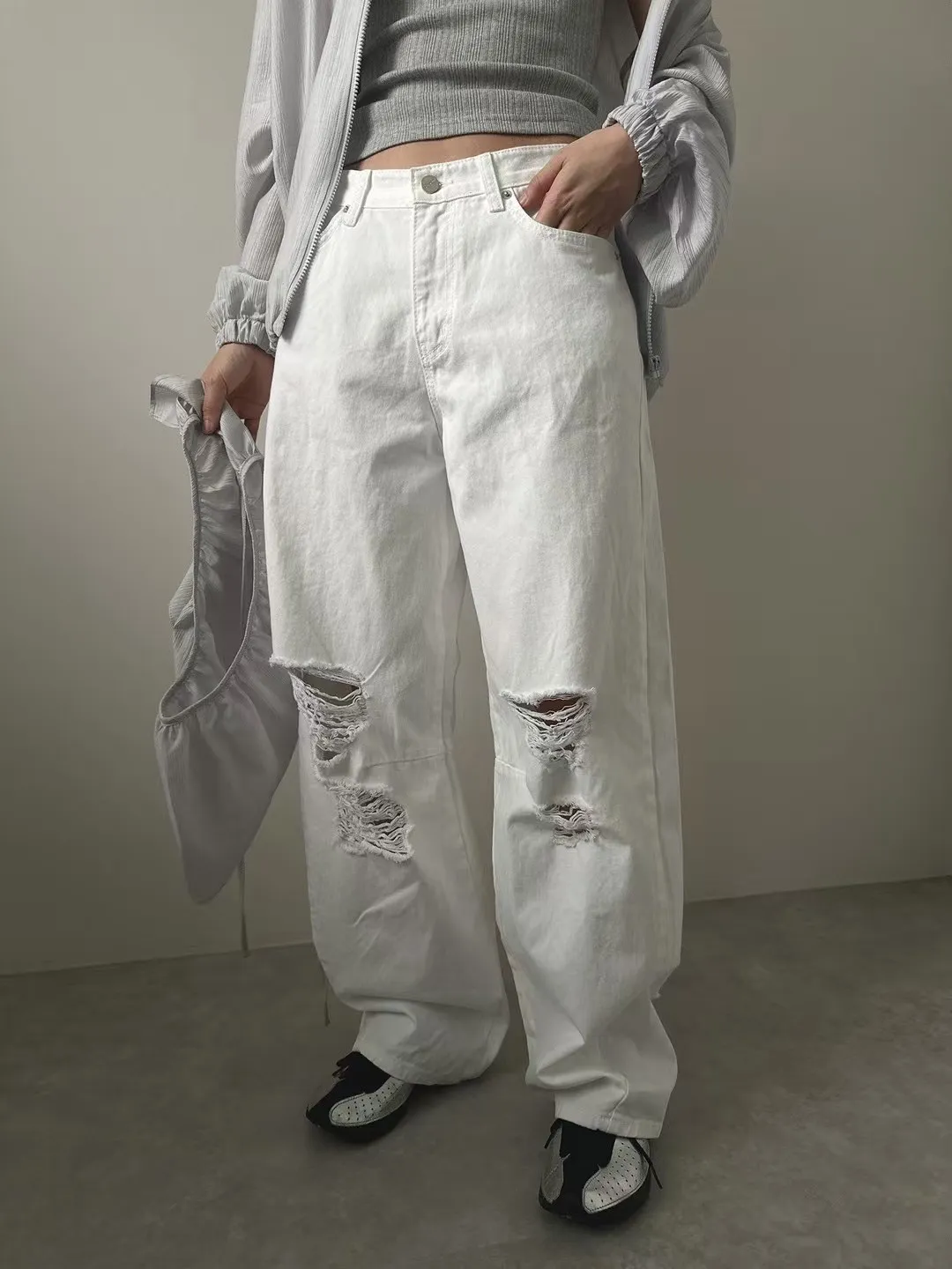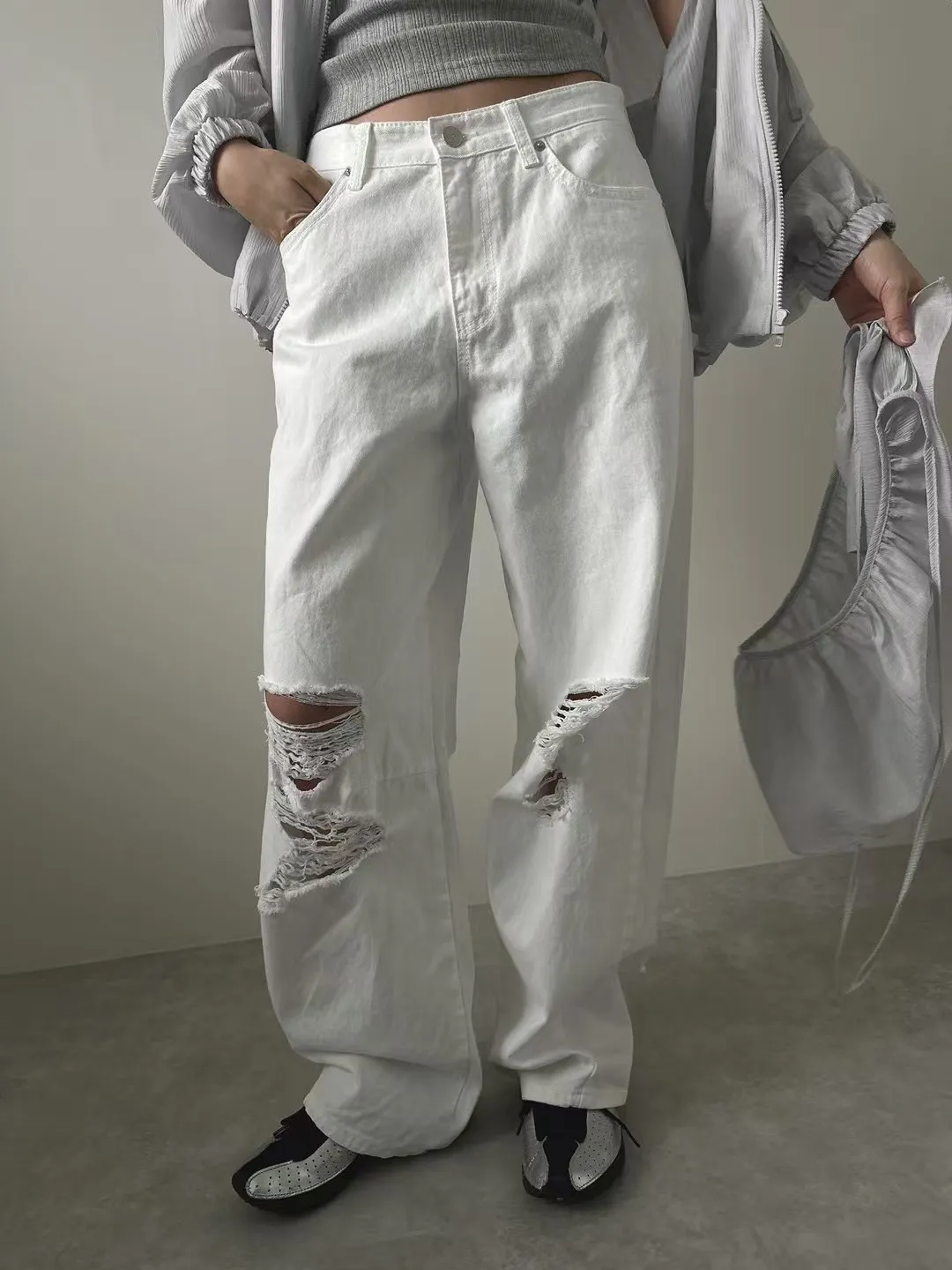 棉 釦鍊穿脫 刷破設計 有口袋 厚度四季皆宜 中低腰版型