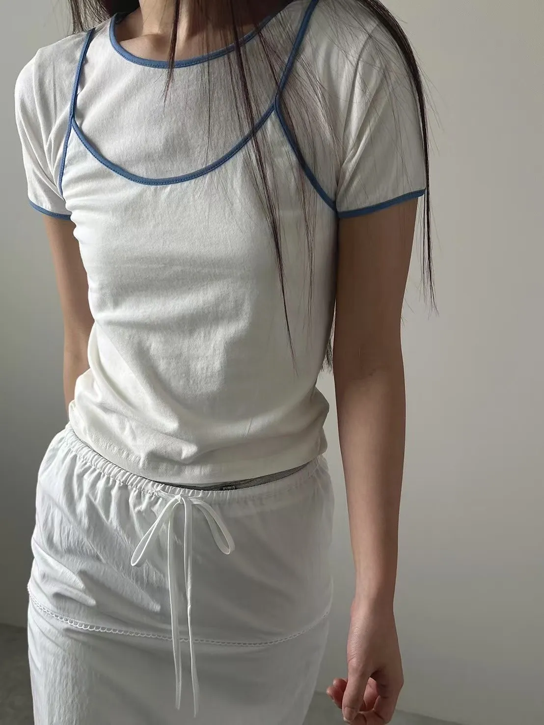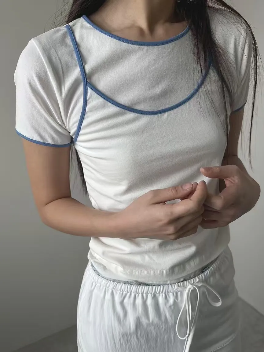 棉+莫代爾 親膚舒適 彈性很好 假兩件 跳色包邊 穿到L號