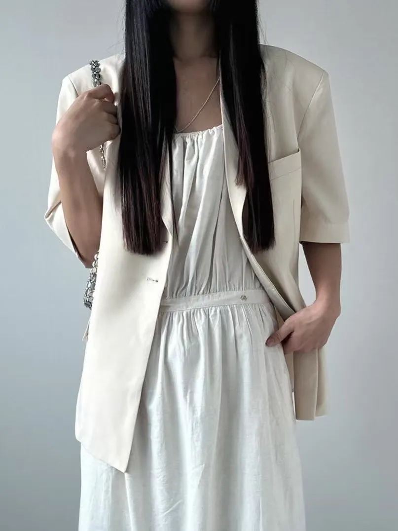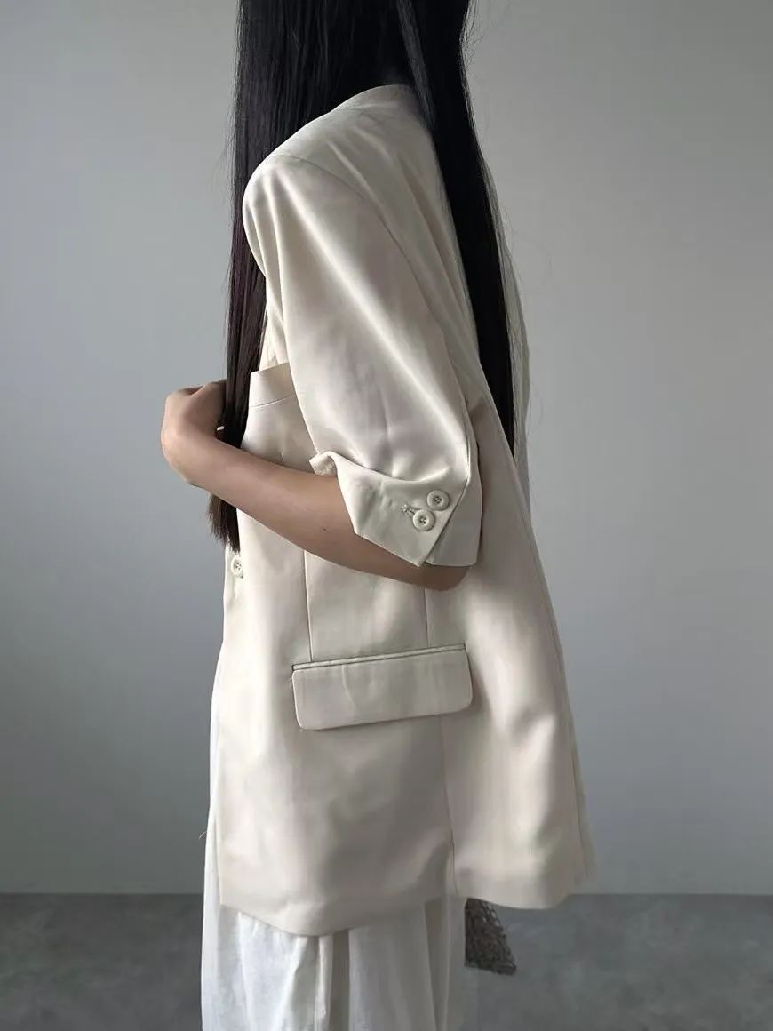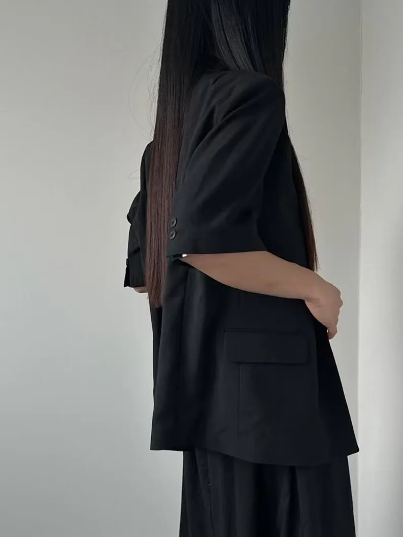 高級西裝面料 品牌訂製感 不易皺 有口袋 雙釦開襟 半截內裡