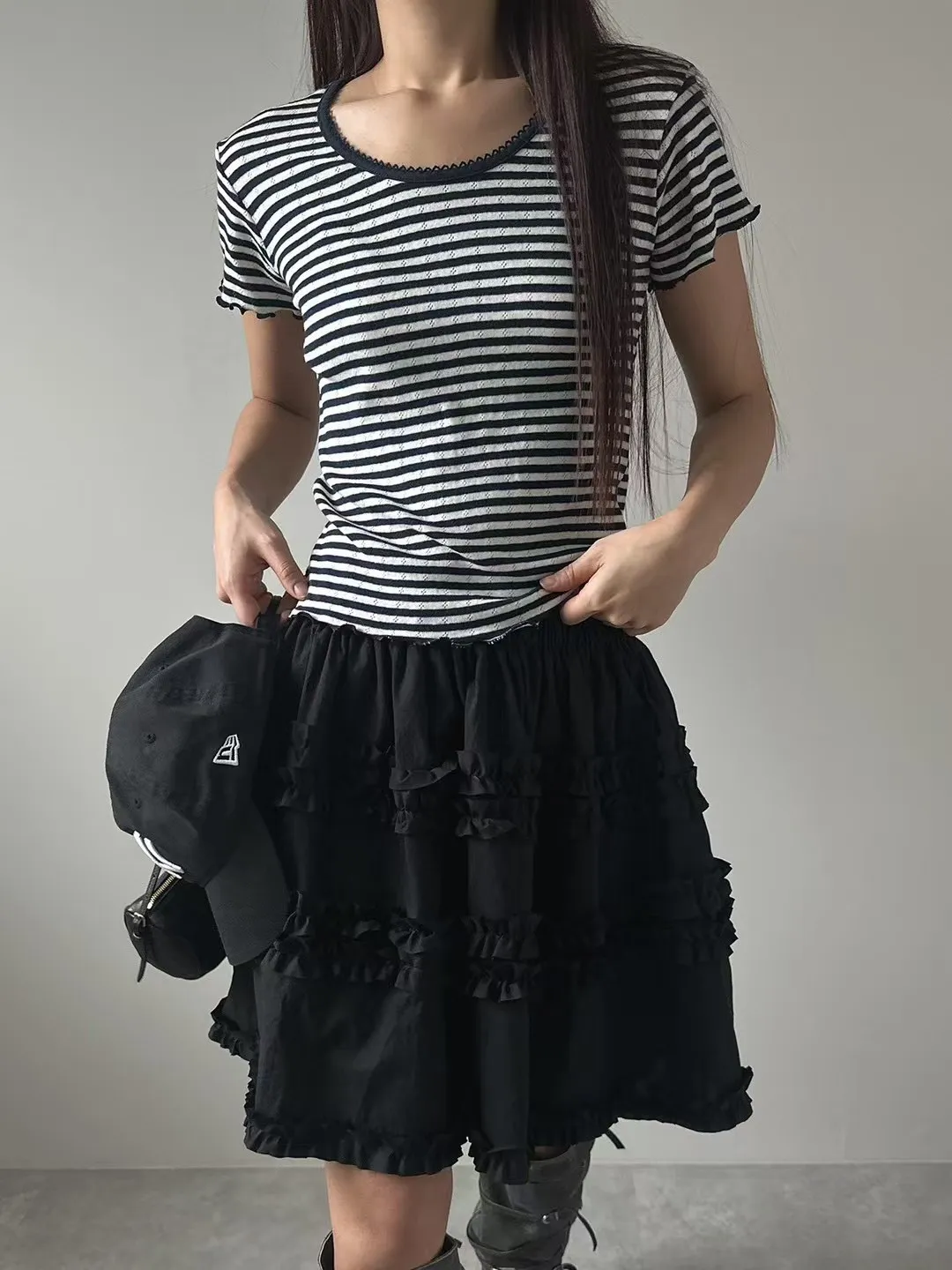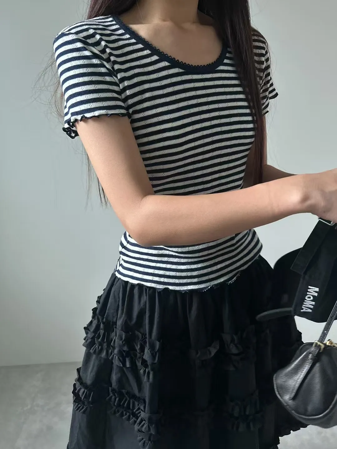 棉+彈力 薄款面料 彈性很好 袖口下擺木耳滾邊
