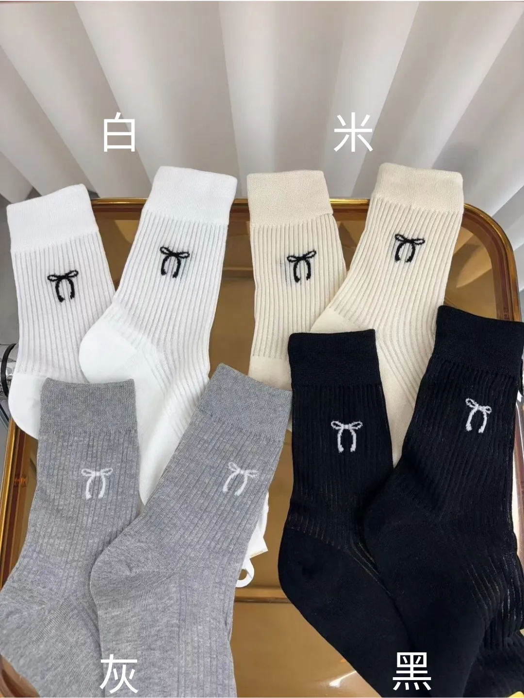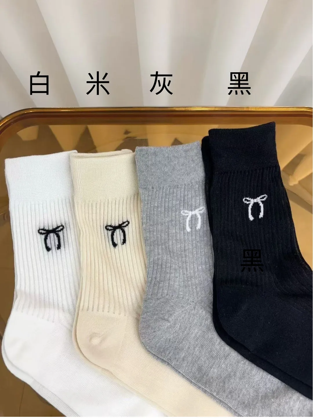 NZ126蝴蝶結長襪 白 米 灰 黑 $44 包色$160
