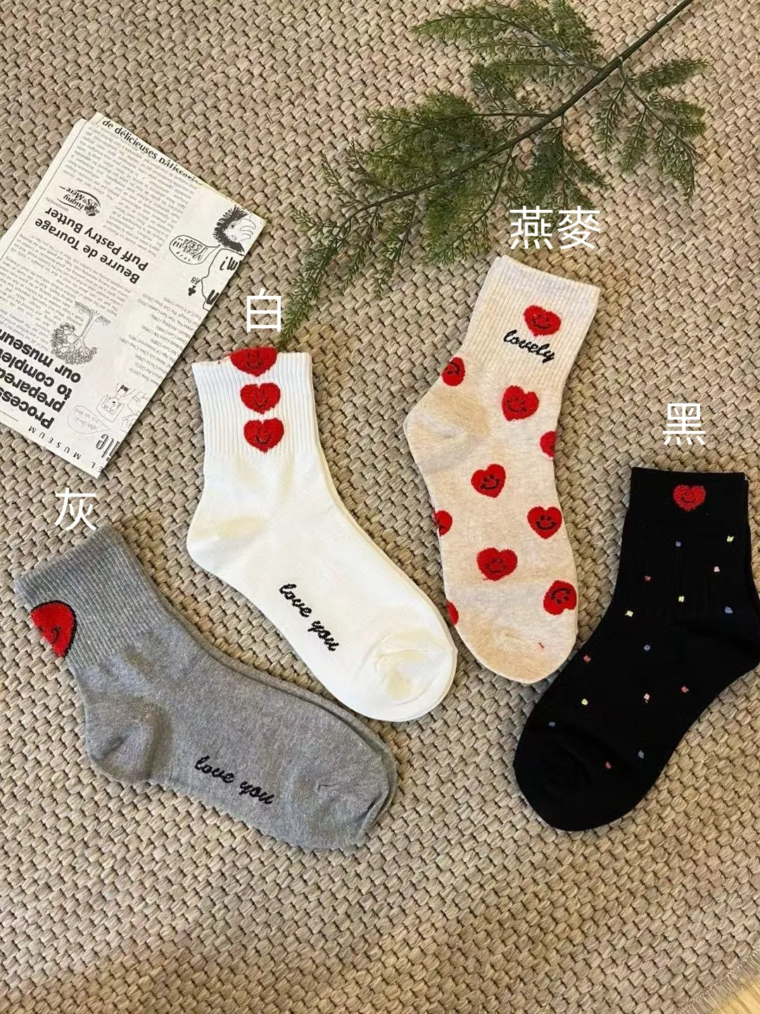 NZ133不撞款愛心襪 白 黑 灰 燕麥 $39 包色$140