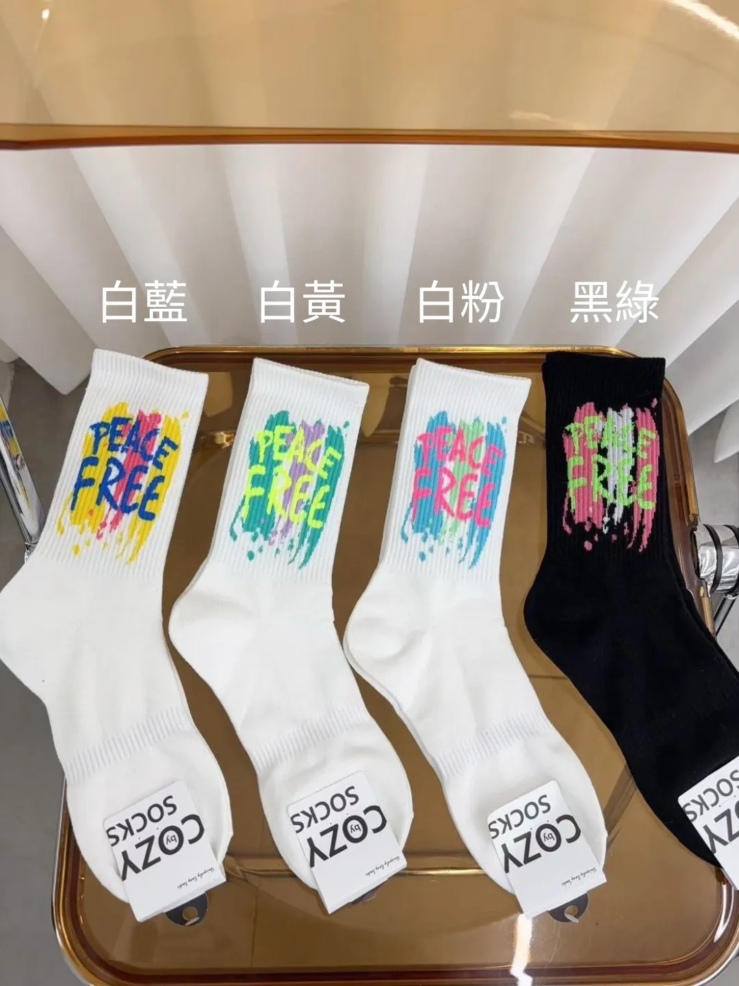 NZ134噴漆peace襪 白粉 白黃 白藍 黑綠 $39 包色$140