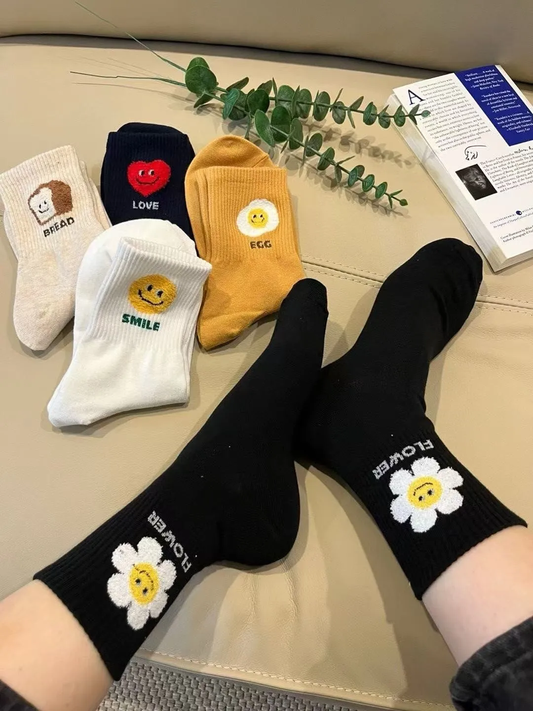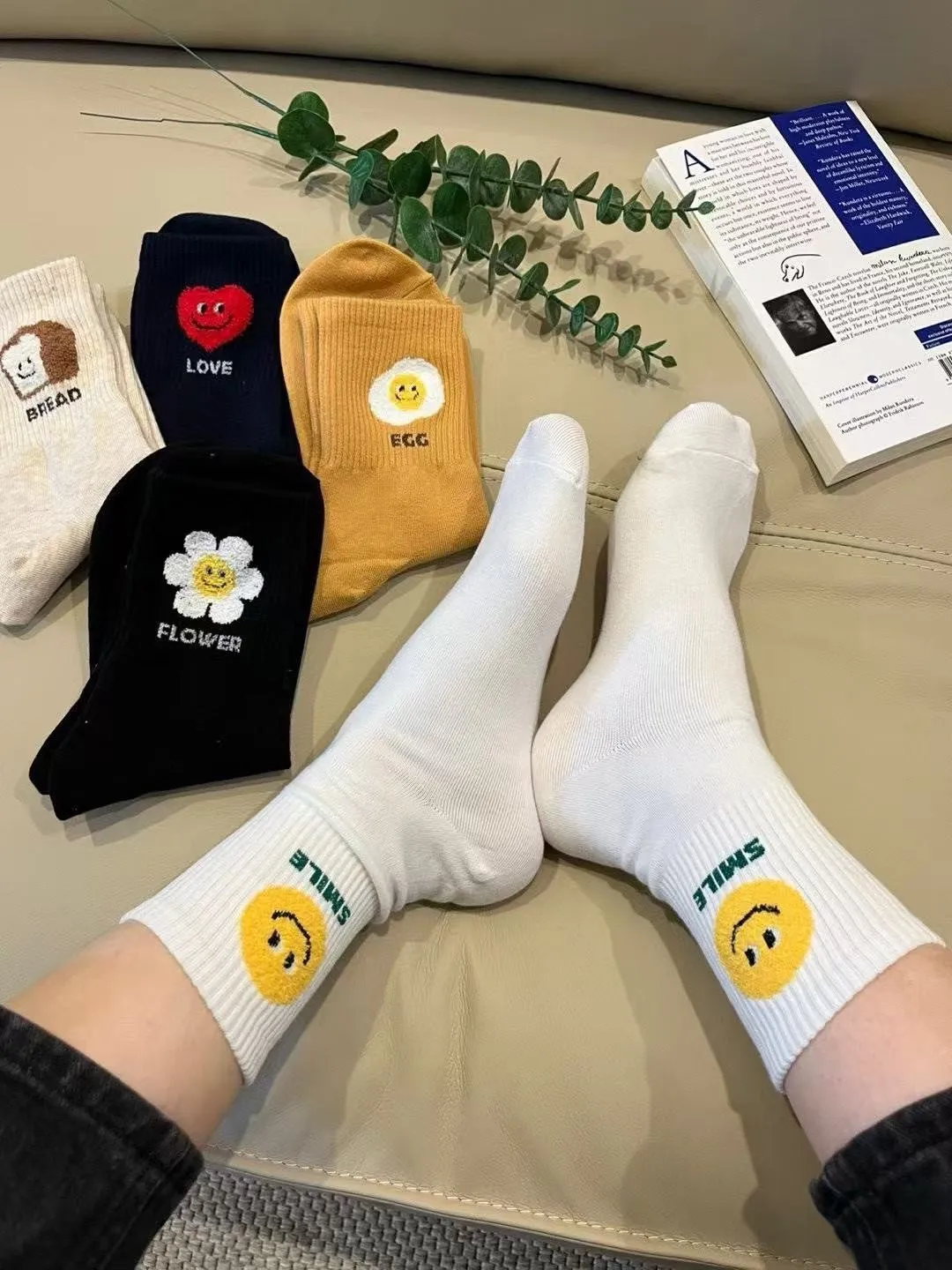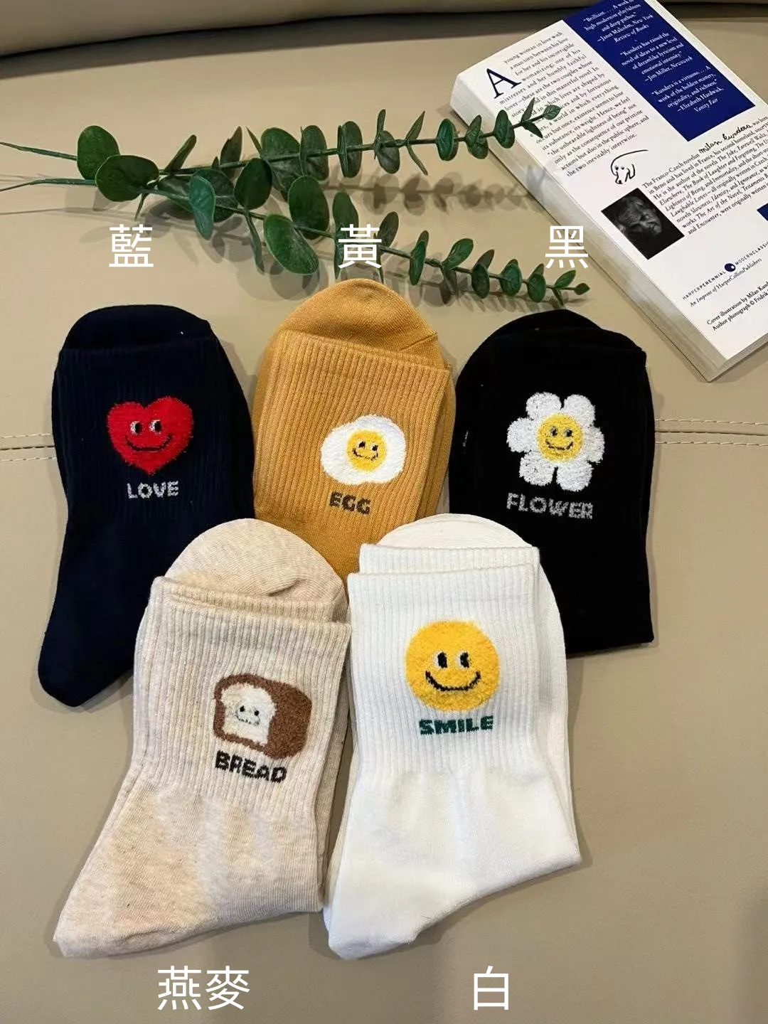 NZ144傻萌可愛笑臉食物襪 白 黑 黃 藍 燕麥 $44 包色$200