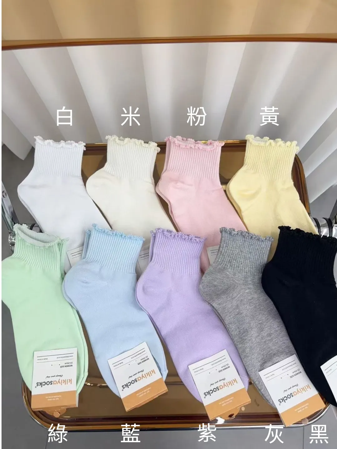 NZ145短款馬卡龍立體捲邊襪 白 米 粉 黃 綠 藍 紫 灰 黑 $44 包色$360