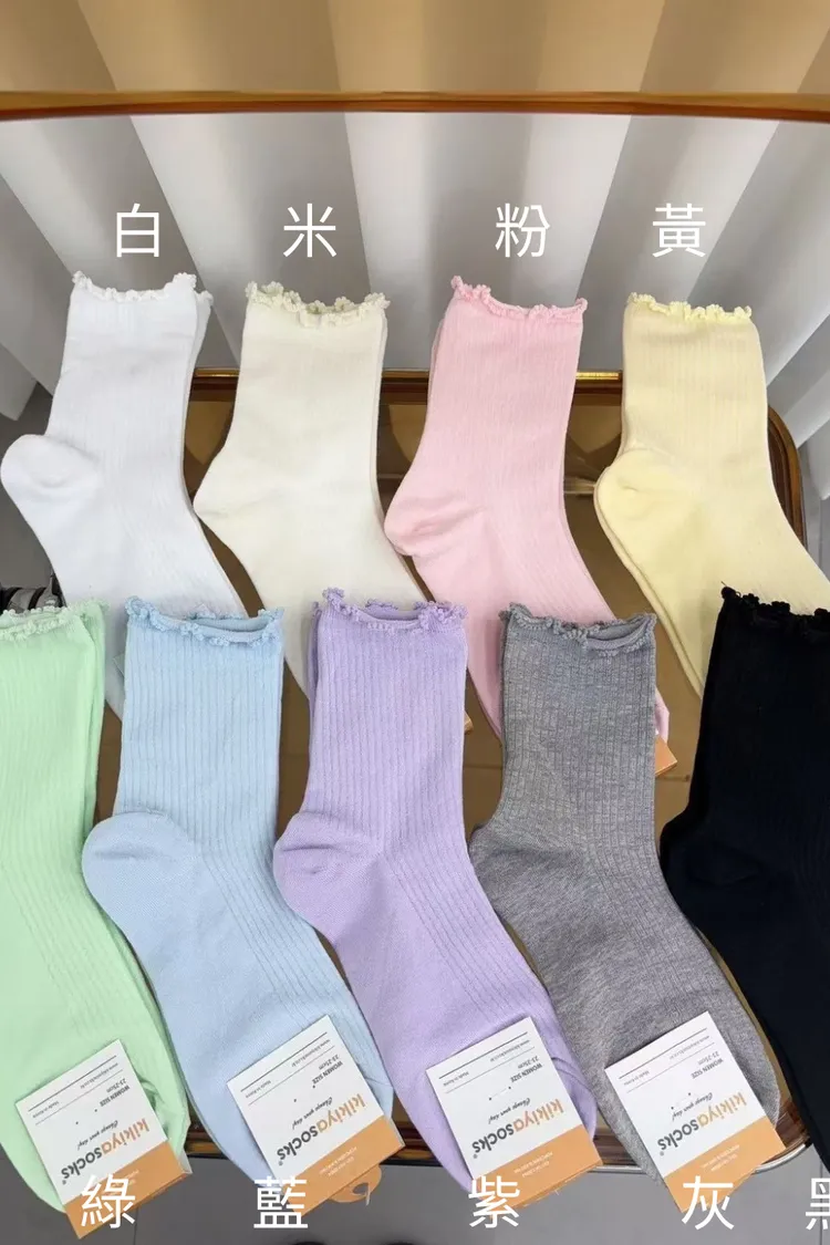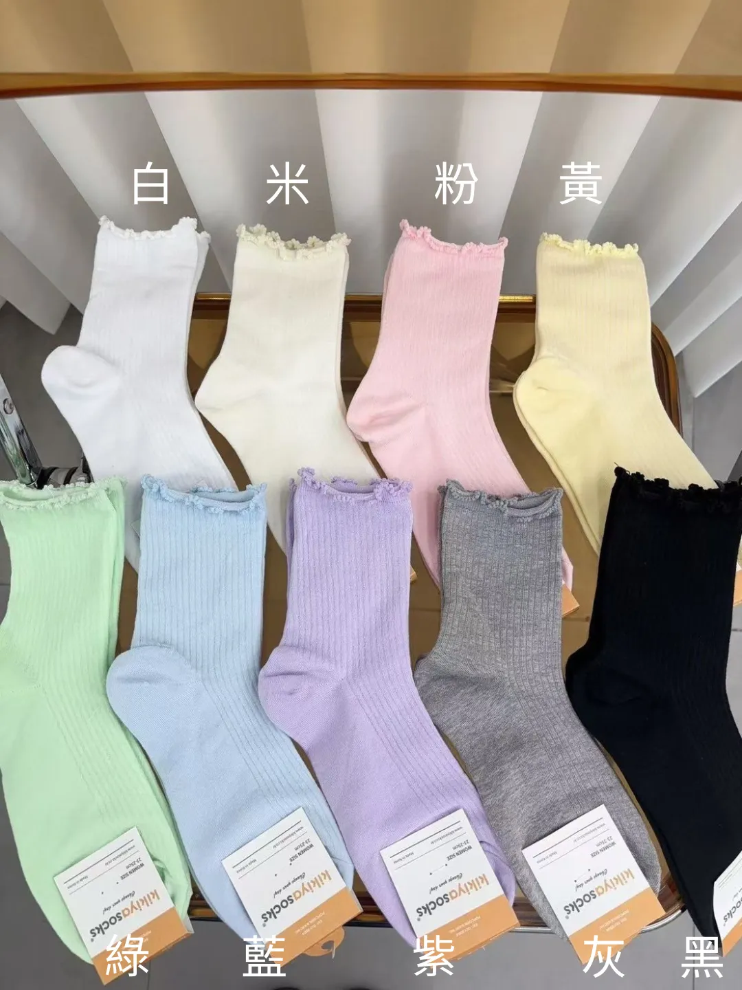 NZ146長款馬卡龍立體捲邊襪 白 米 粉 黃 綠 藍 紫 灰 黑 $49 包色$405