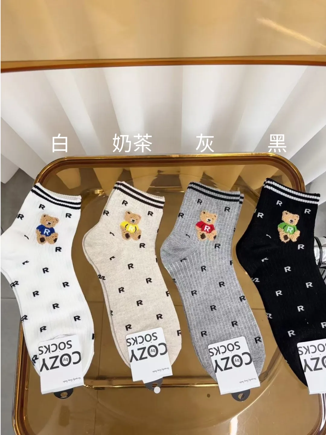 NZ159男款流潮滿版R熊熊襪 白 灰 黑 奶茶 $44 包色$160
