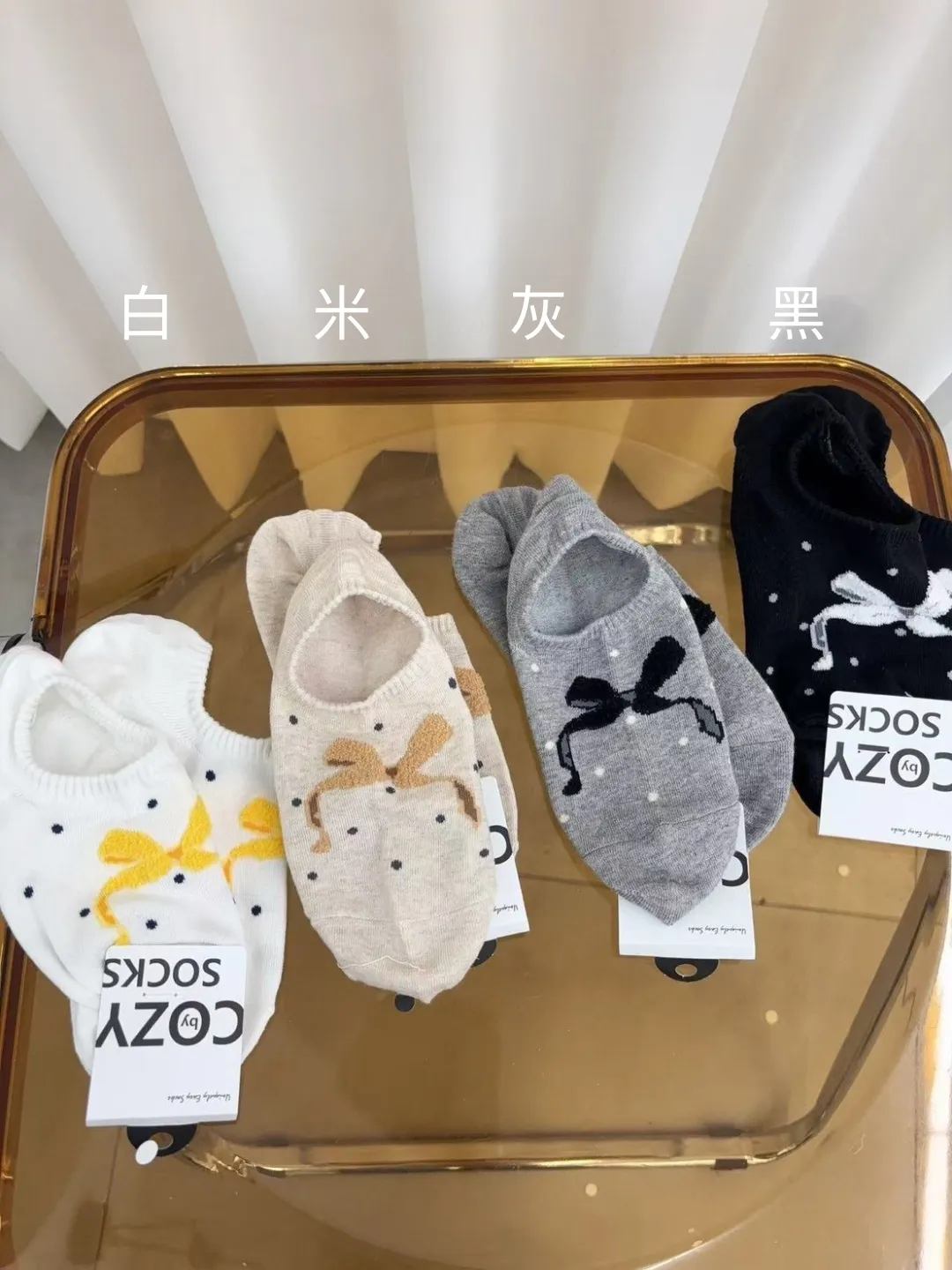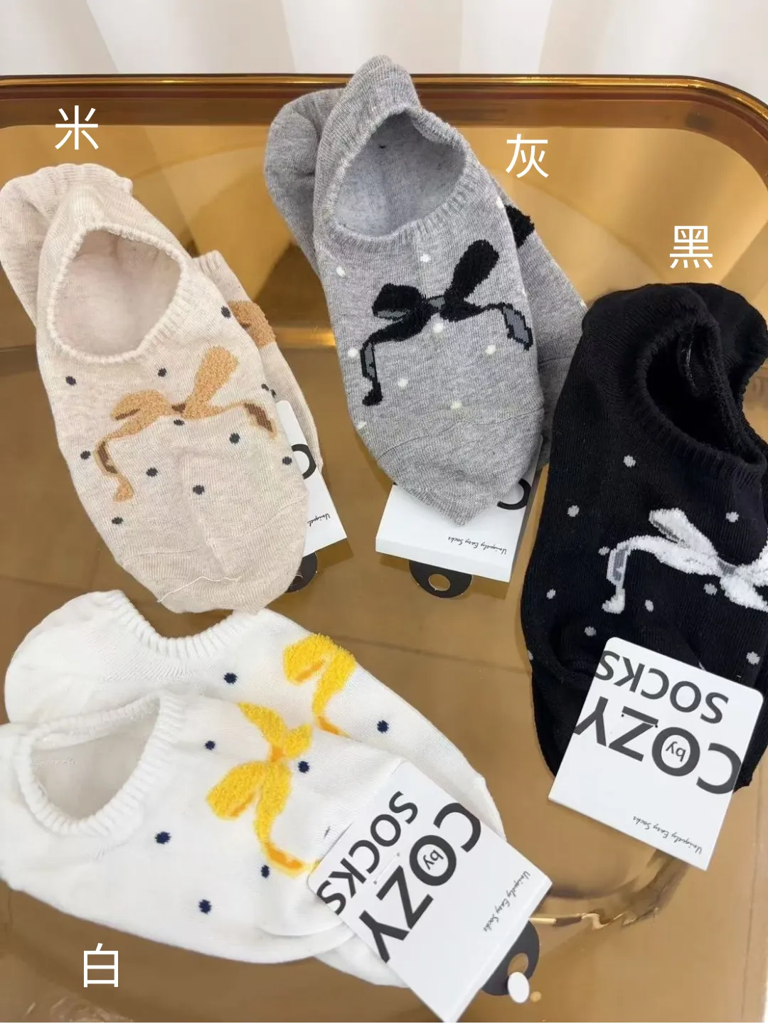 NZ162推薦款點點絨毛蝴蝶結襪 白 米 灰 黑 $39 包色$140