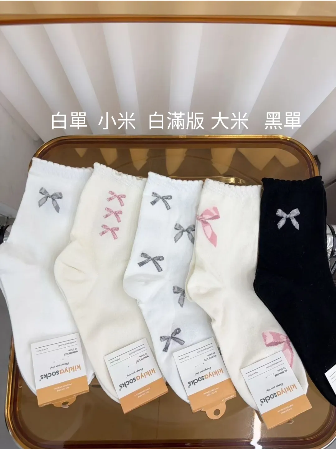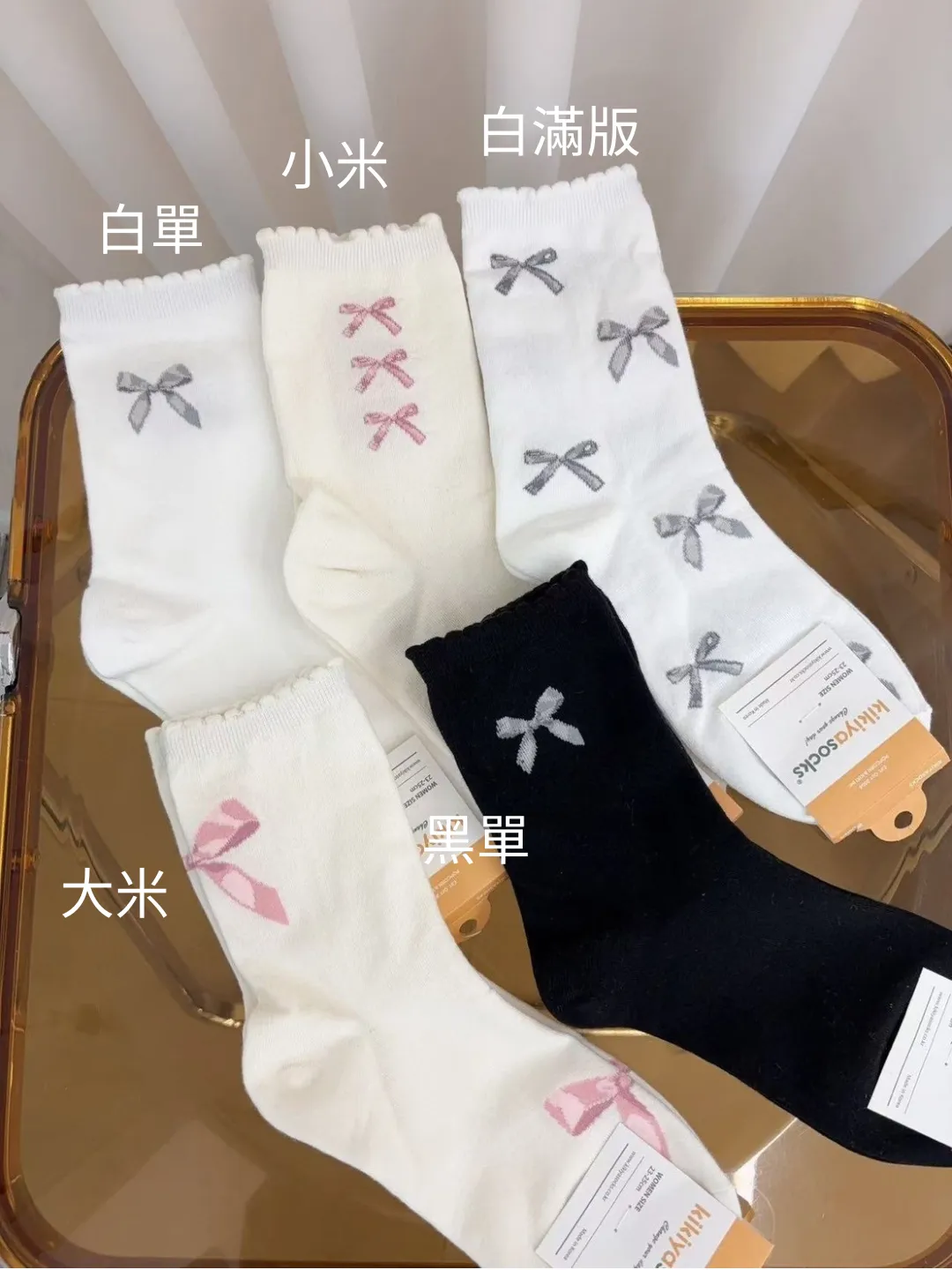 NZ165創意蝴蝶結系列襪 白單 黑單 白滿版 小米 大米 $44 包色$200