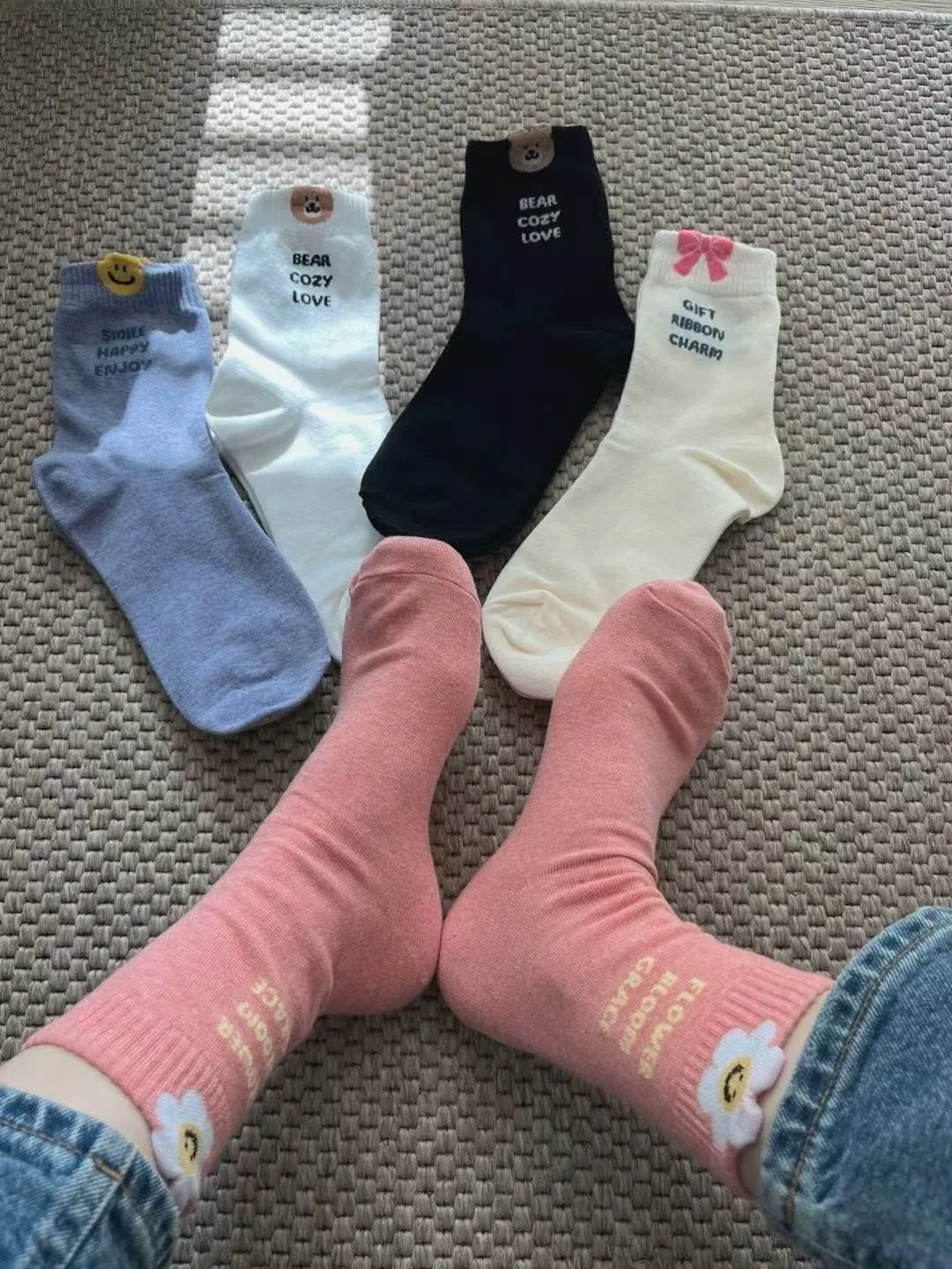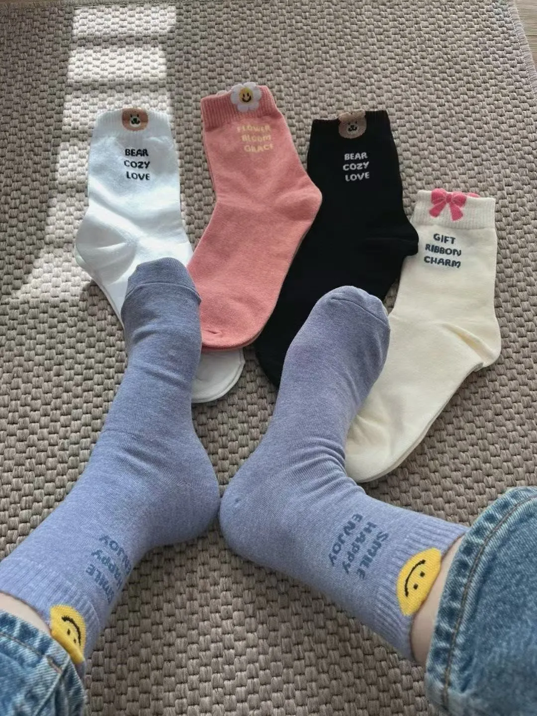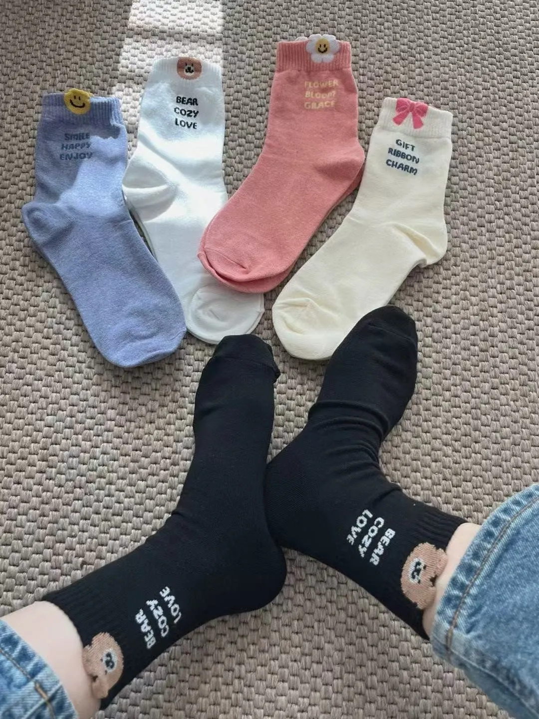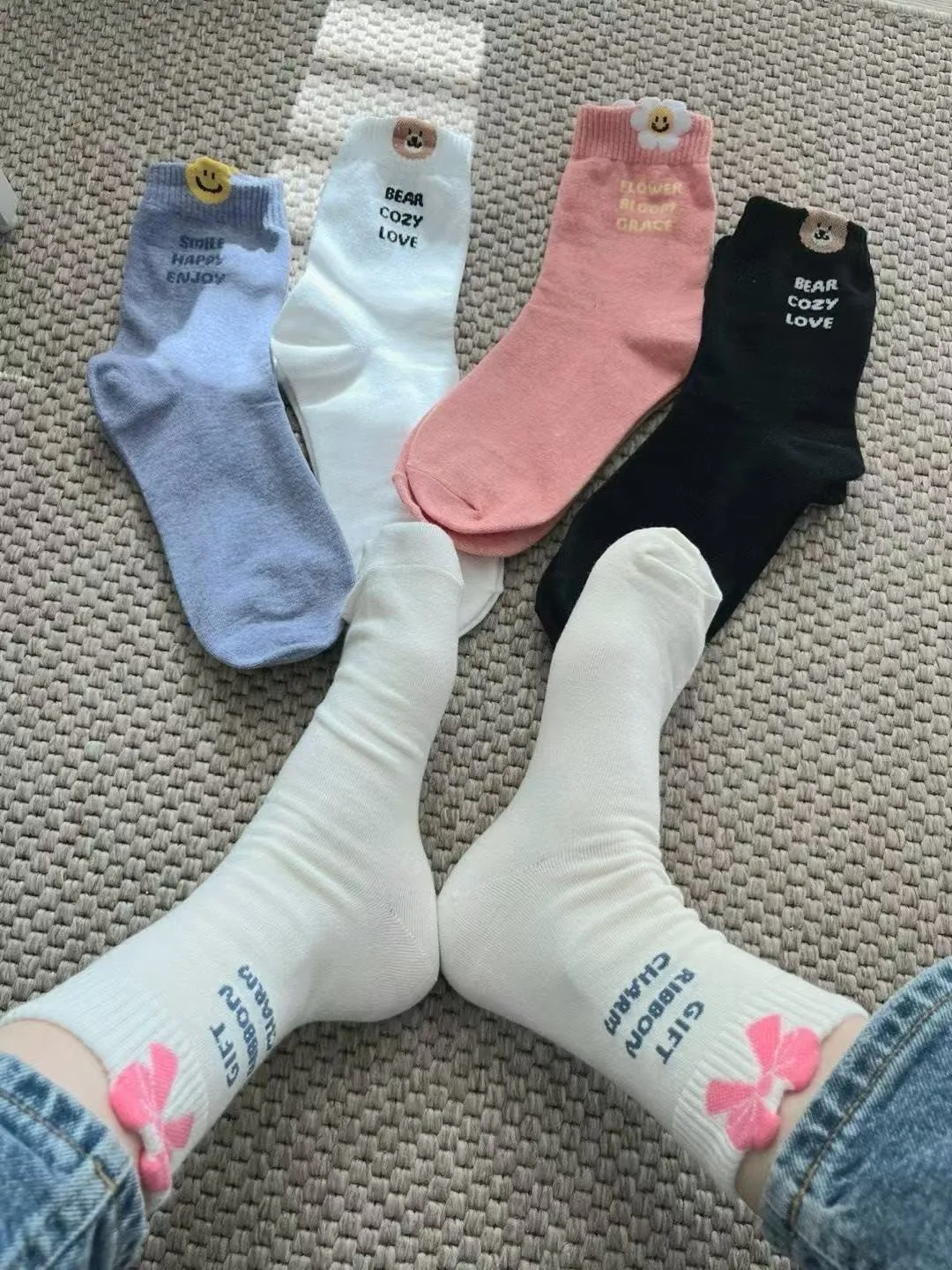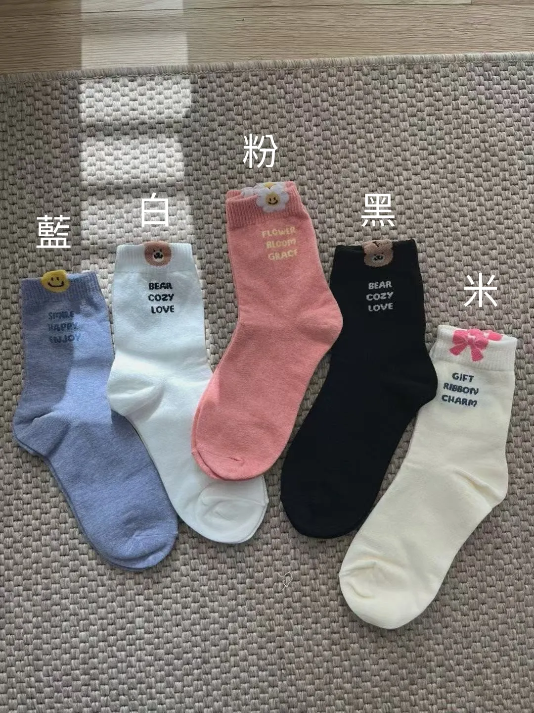 NZ166立體圖案英文襪 白 米 粉 藍 黑 $44 包色$200