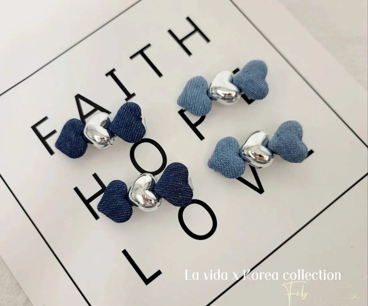 NZ217牛仔愛心髮夾組(一組兩入) 淺藍 深藍 官網價$160 永恆甜甜價$120