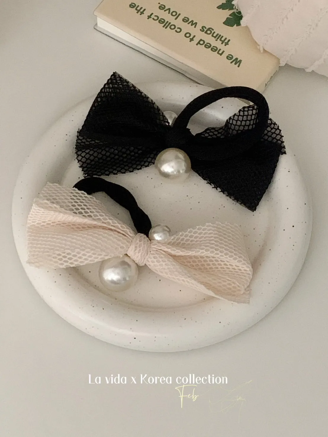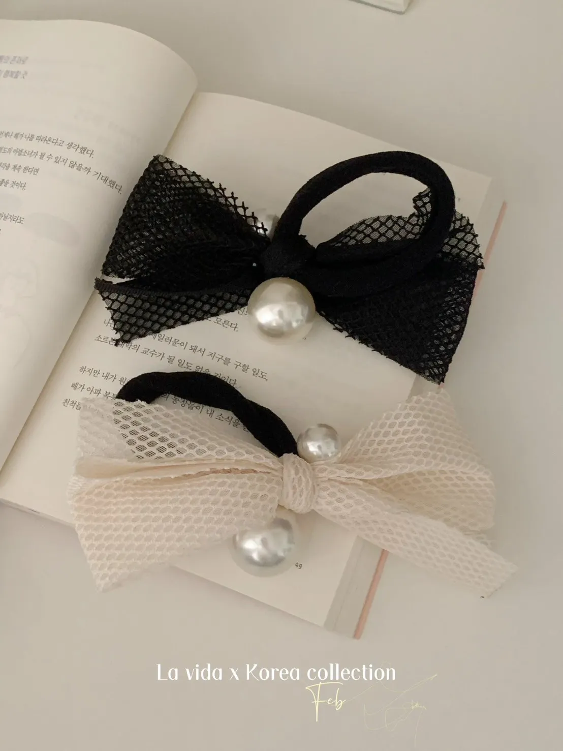 NZ221細緻透光紗網格珍珠髮圈 米 黑 官網價$159 永恆甜甜價$119