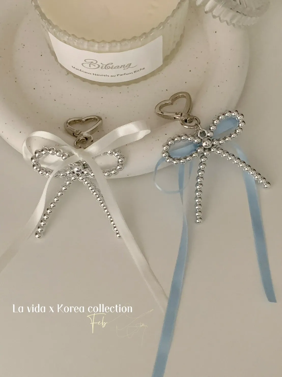 NZ234銀珠蝴蝶結愛心緞帶吊飾 米 藍 官網價$170 永恆甜甜價$130