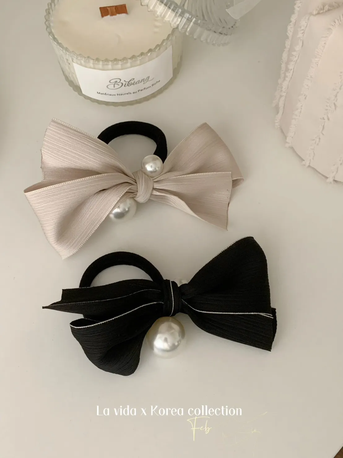 NZ257低調小香風緞面光澤珍珠髮圈 米 黑 官網價$150 永恆甜甜價$110