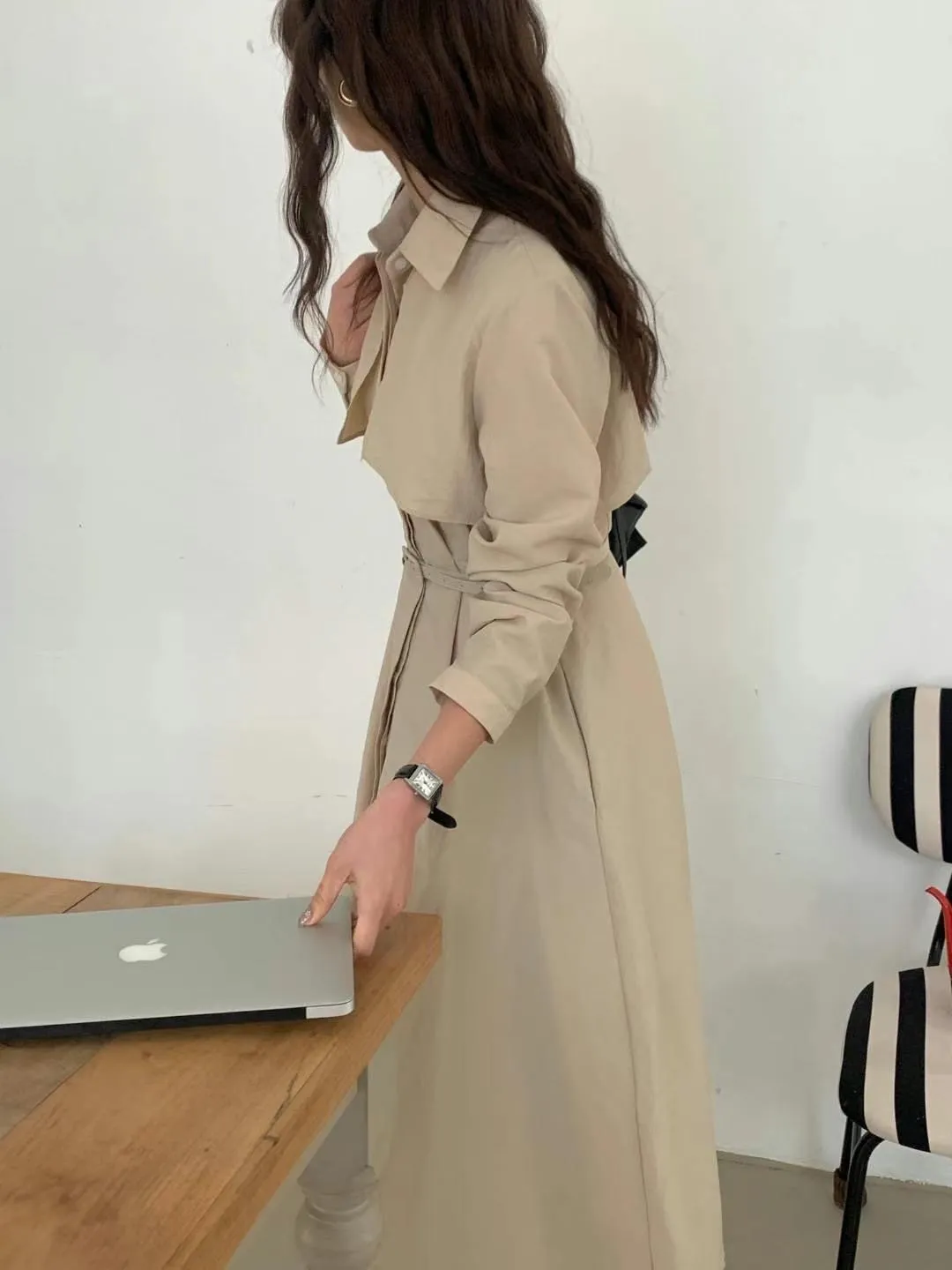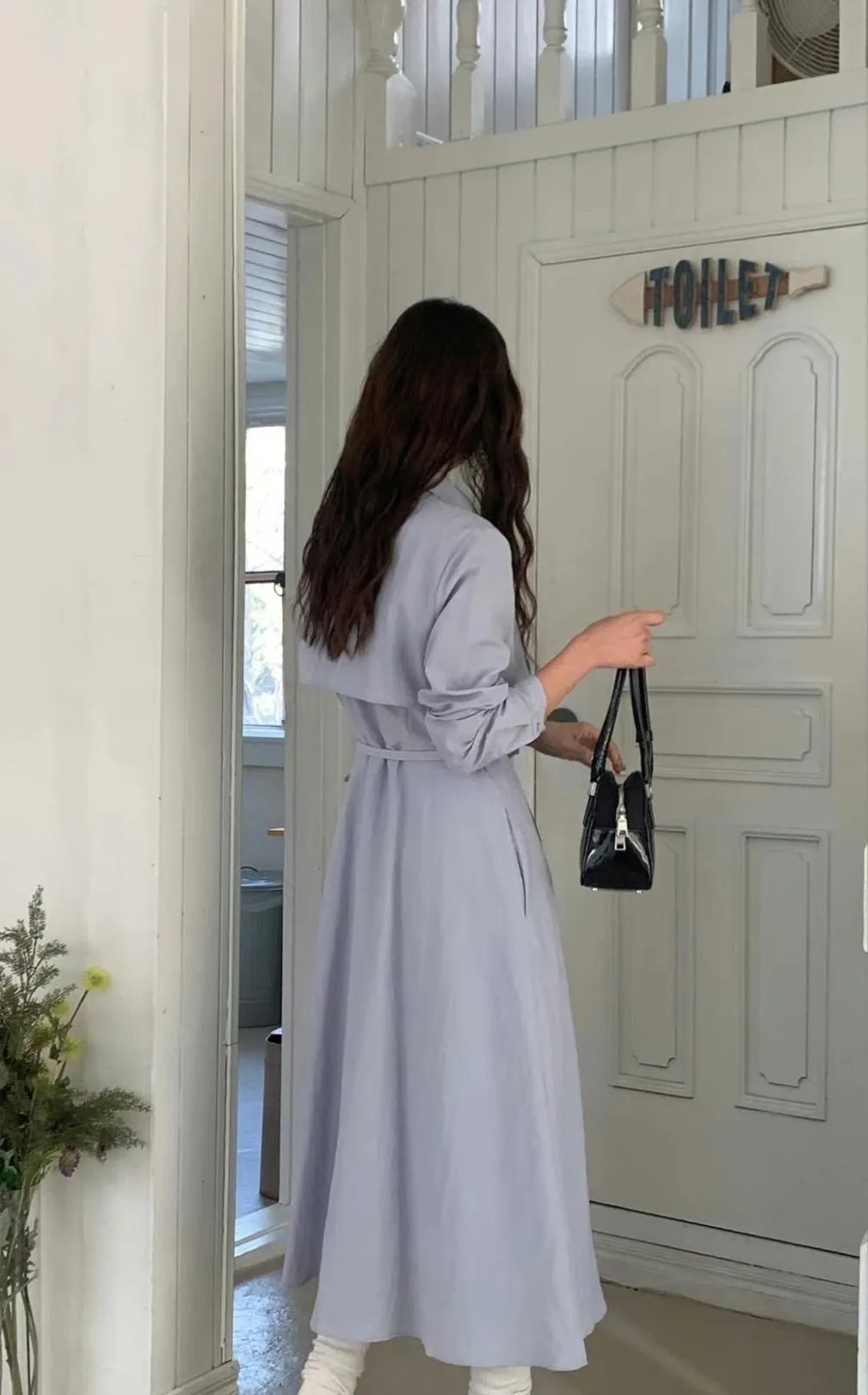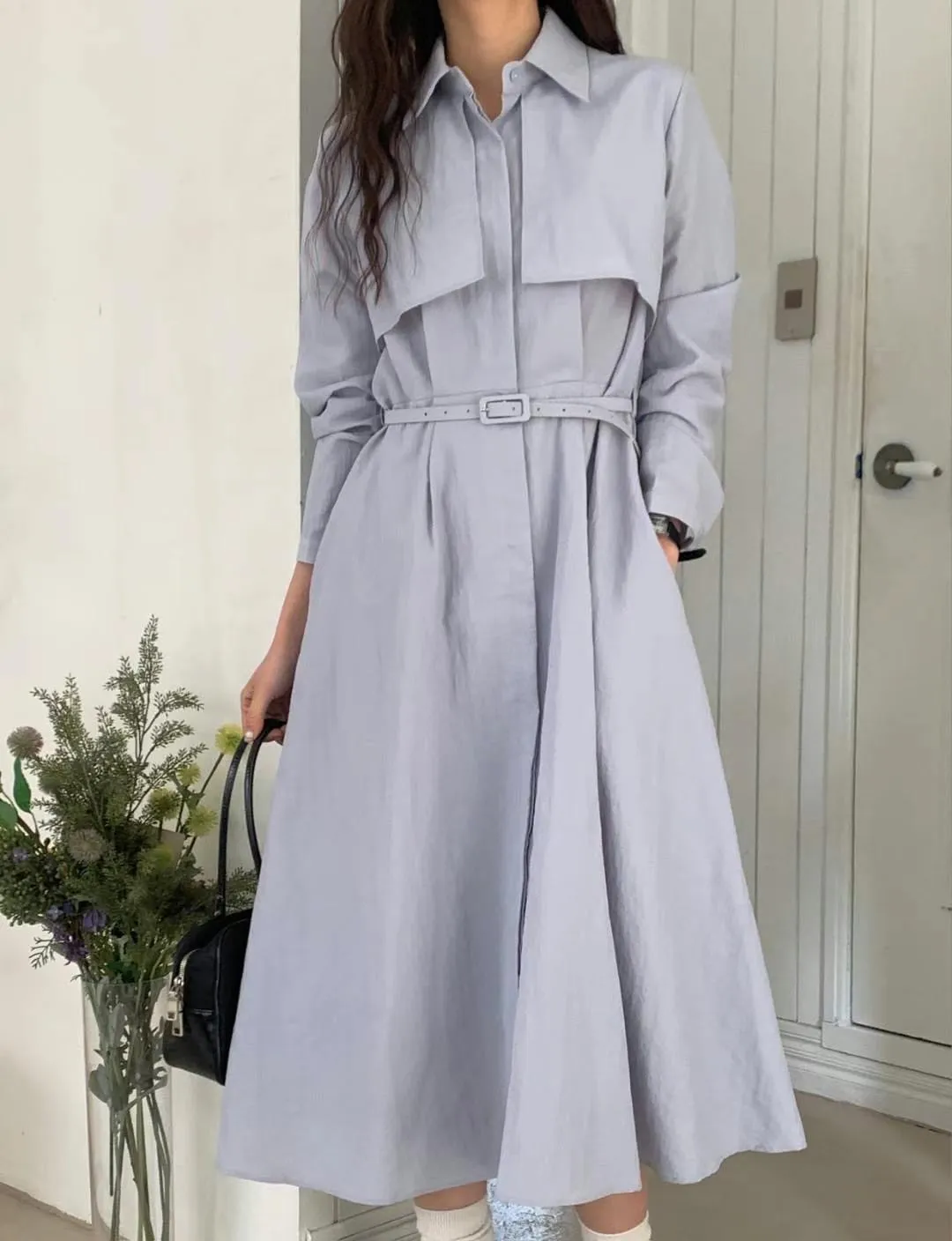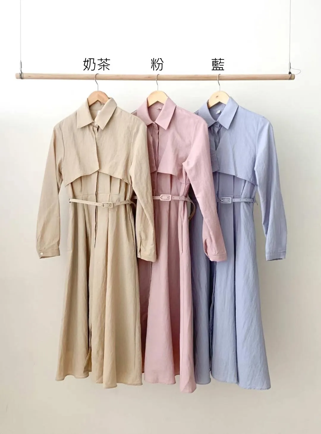 NZ356質感輕盈風衣款洋裝(附腰帶) 藍 粉 奶茶 官網價$1510 永恆甜甜價$1480