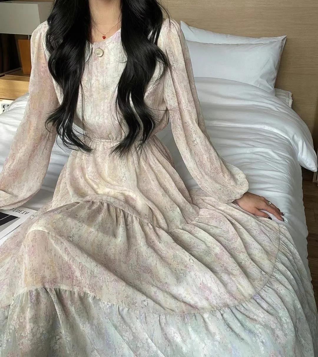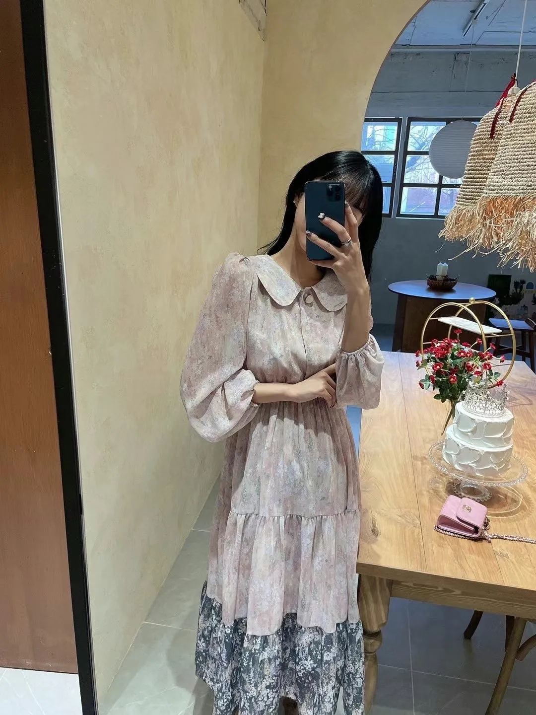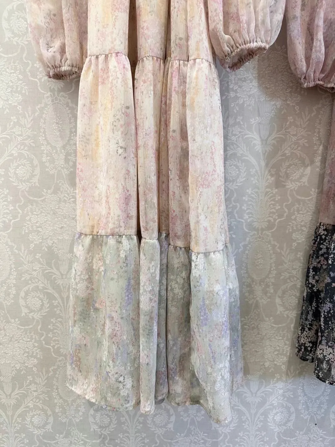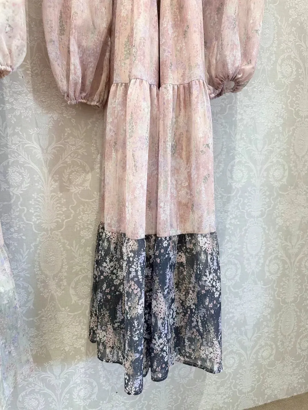 NZ359極美雪紡拼接仙女洋裝 黃 粉 官網價$1620 永恆甜甜價$1590
