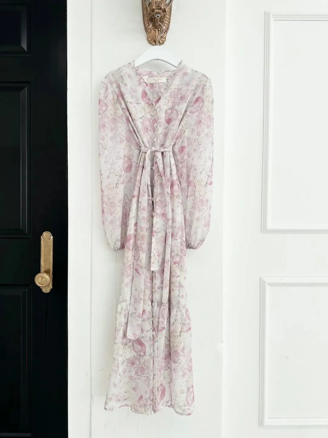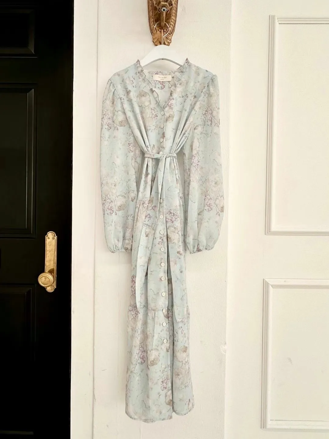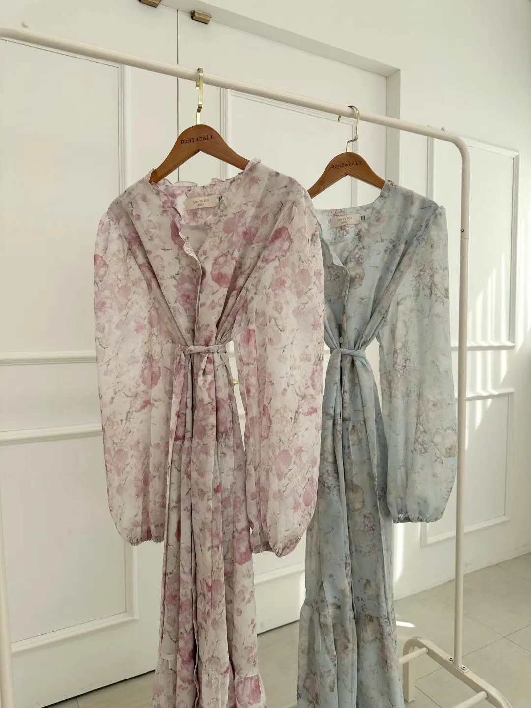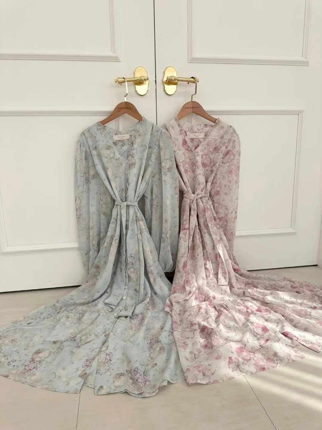 NZ362柔情玫瑰花洋裝(附綁帶) 藍 粉 官網價$1780 永恆甜甜價$1750