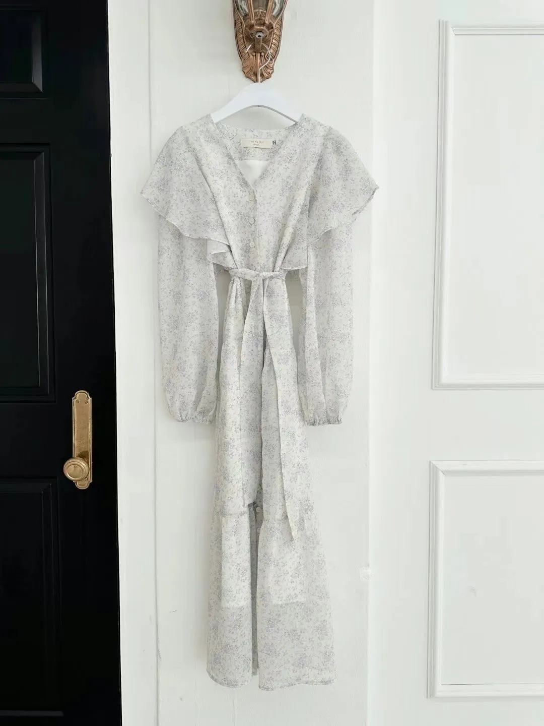 雪紡,輕盈飄逸 淡雅碎花 腰有綁帶 L號友善