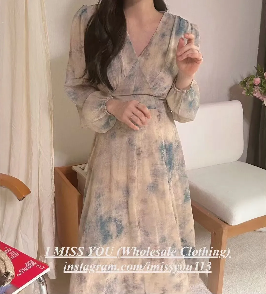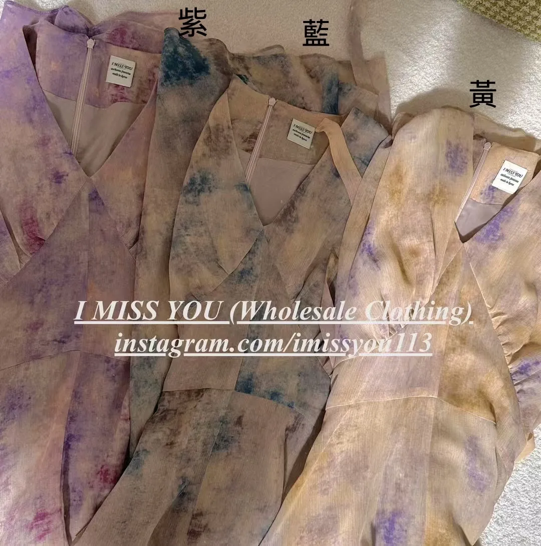 NZ368落日暈彩V領洋裝 黃 藍 紫 官網價$1620 永恆甜甜價$1590