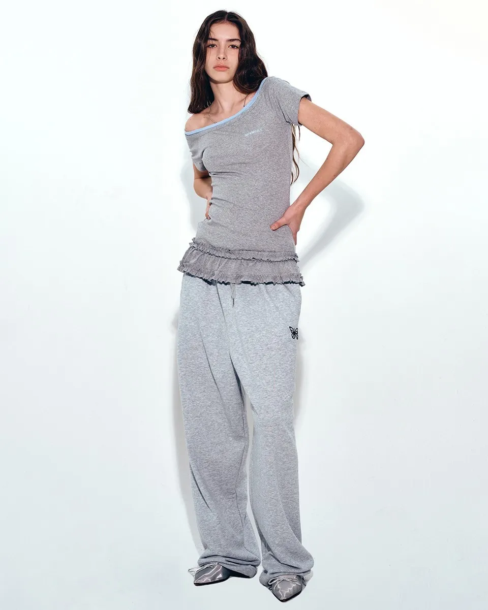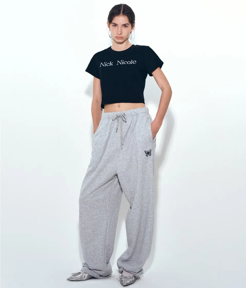 Nick021小蝴蝶舒適縮口棉褲 黑 灰 售價$1980
