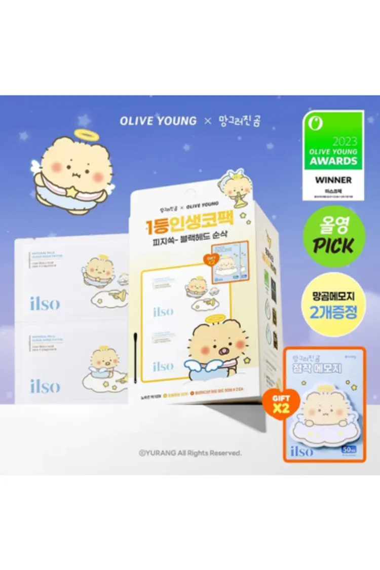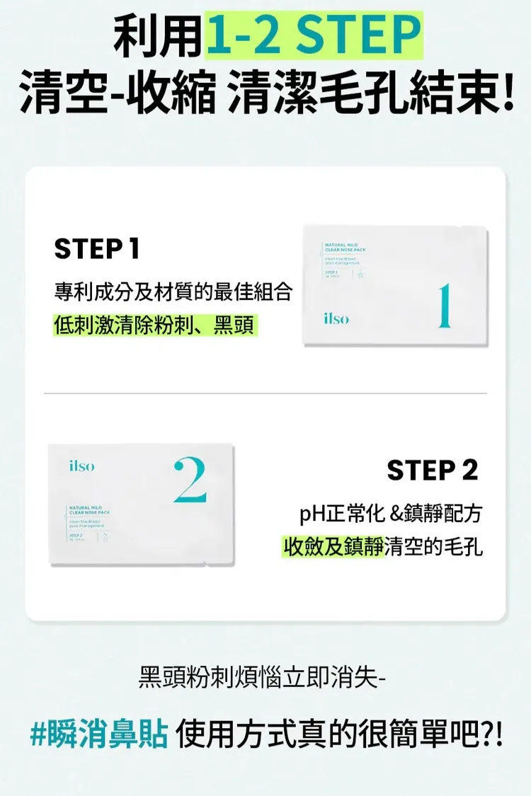 OLY004 ilso 清粉刺鼻貼10片裝(含20支棉花棒) 售價$799*聯名款售完後將寄送一般款,除外觀外,內容物並無差異*聯名款贈品送完為止 溶解、收斂,一包搞定。Olive Young熱賣4530萬張的粉刺瞬消鼻貼!!專利成分有效導出粉刺,生物纖維材質更好貼合皮膚無死角溫和去除頑固黑頭粉刺