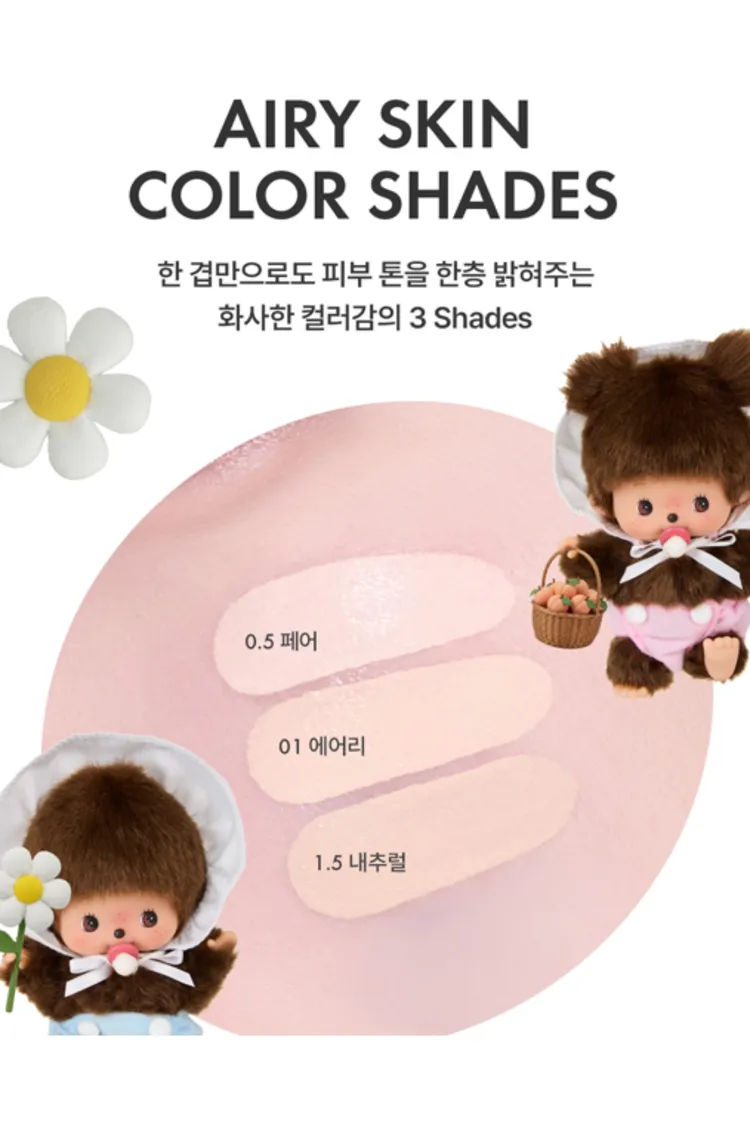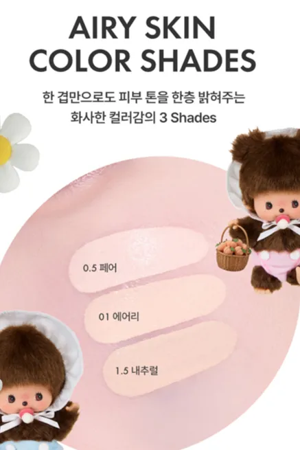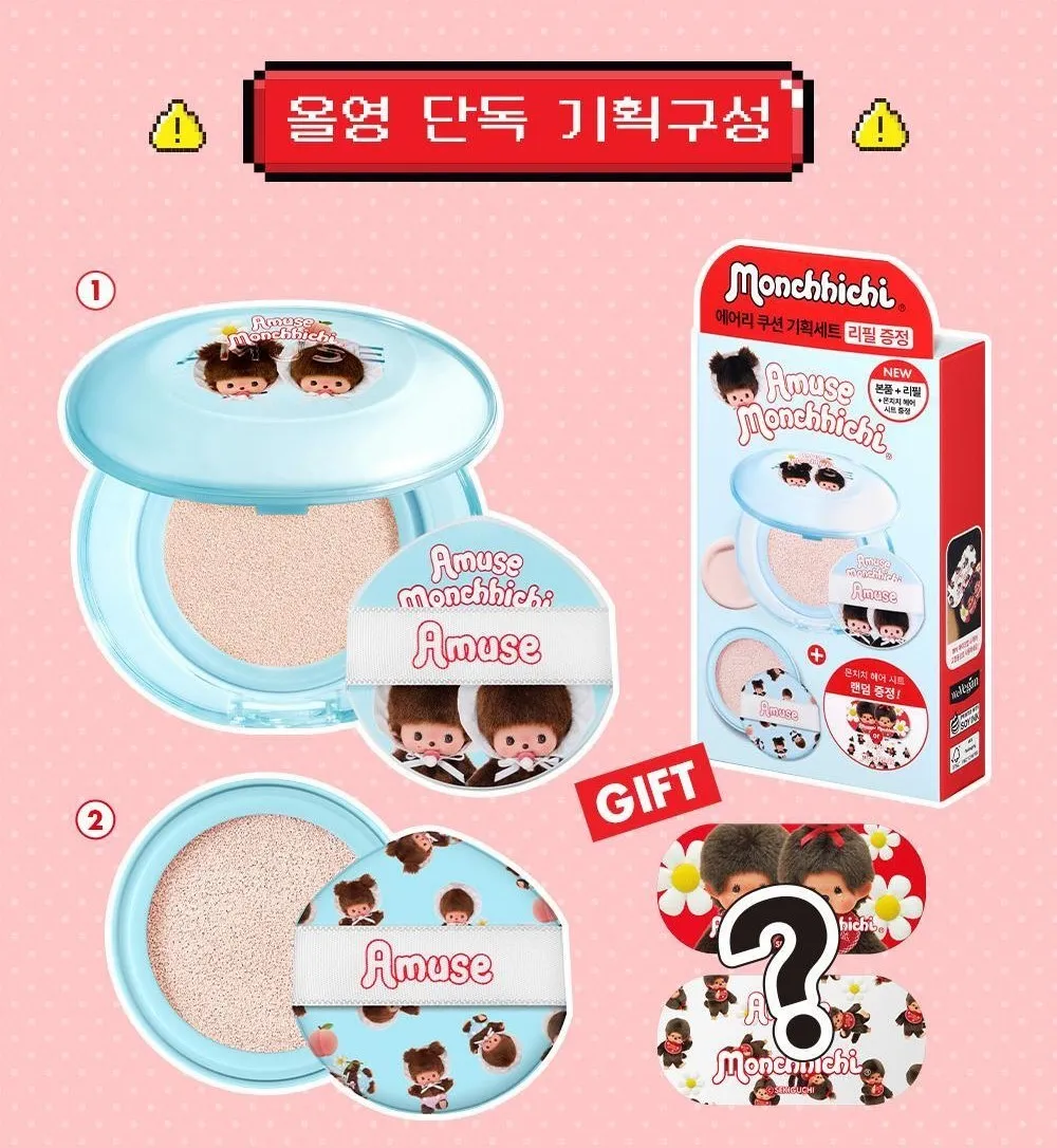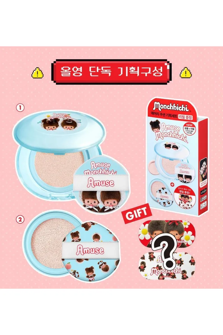 OLY023蒙奇奇聯名輕盈毛孔遮瑕氣墊(15G) 0.5 01 1.5 售價$880Amuse X Monchichi 連名款,張員瑛代言適合油性肌與混合肌的妹妹,高遮瑕、清爽質地,可持妝時間長,不容易脫妝0.5=FAIR01=AIRY1.5=NATURAL內容物(0.5、01、1.5):正裝15G(含粉撲)*1+替換0.5G(含粉撲)*1+隨機瀏海貼*1*聯名款贈品送完為止