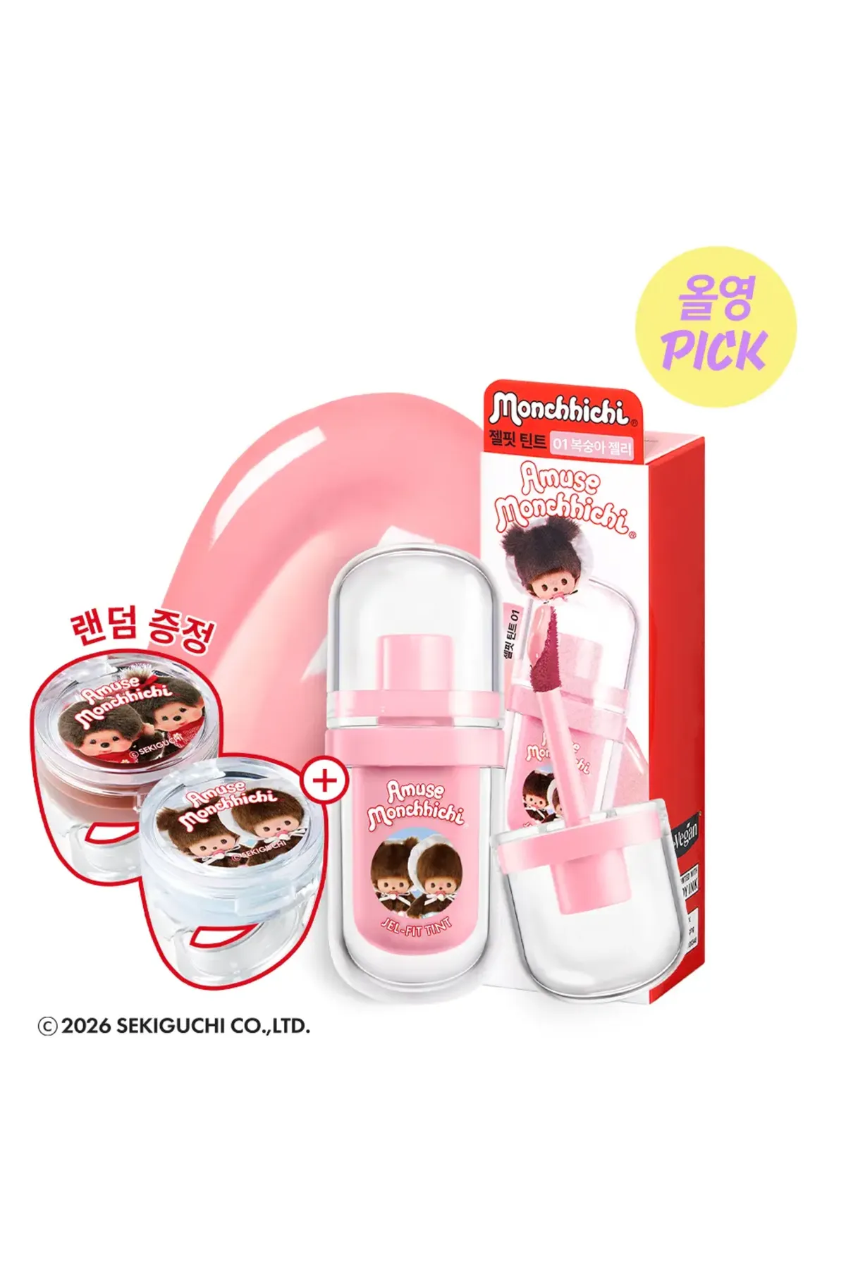 OLY028蒙奇奇聯名果凍唇釉(3.8G) 01 06 售價$550Amuse X Monchichi聯名款,張員瑛代言水潤、保濕、持久,果凍般緊緻服貼質地01=복숭아 젤리06=서울 걸內容物:正裝*1+隨機贈送聯名戒指唇膏*1*聯名款贈品送完為止 以下款式,01 以下款式,06