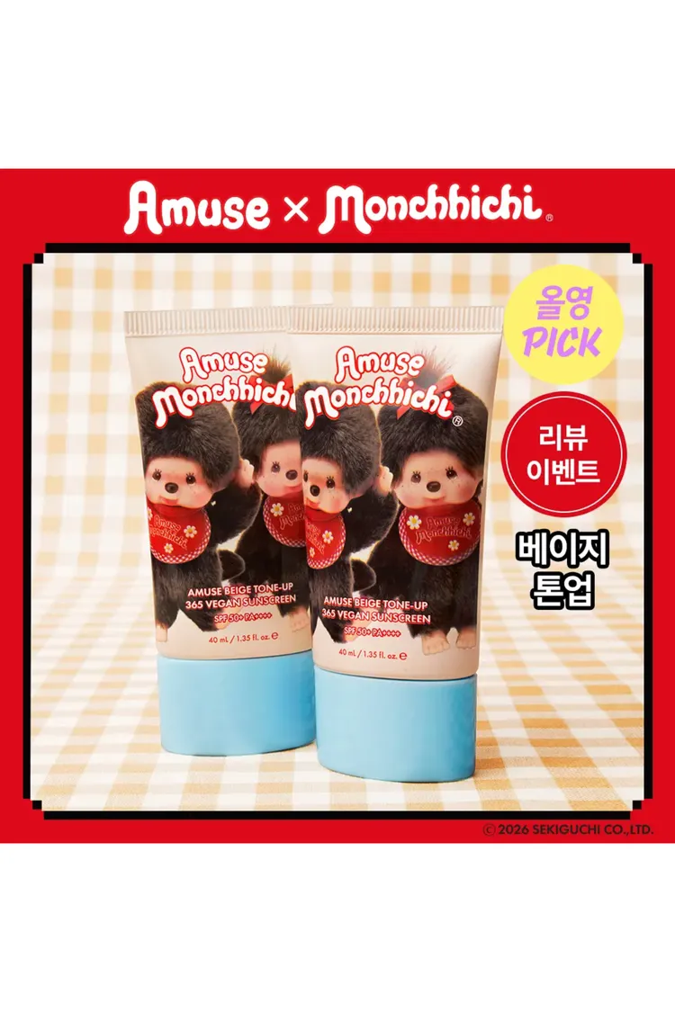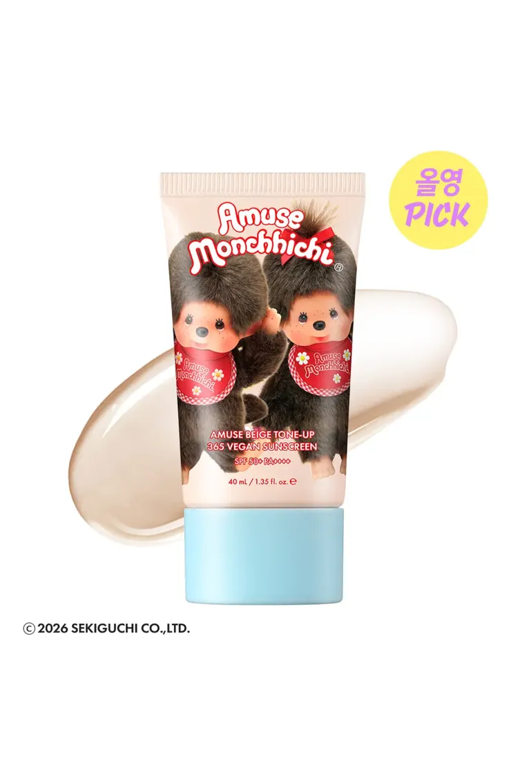 OLY029蒙奇奇聯名Beige Tone-Up 365 VEGAN 防曬乳(40ML) 售價$650Amuse X Monchichi聯名款,張員瑛代言SPF50+ PA++++,防曬係數高,米色的乳液,擁有水潤保濕質地,提亮肌膚,對於環境友善的產品*聯名款贈品送完為止