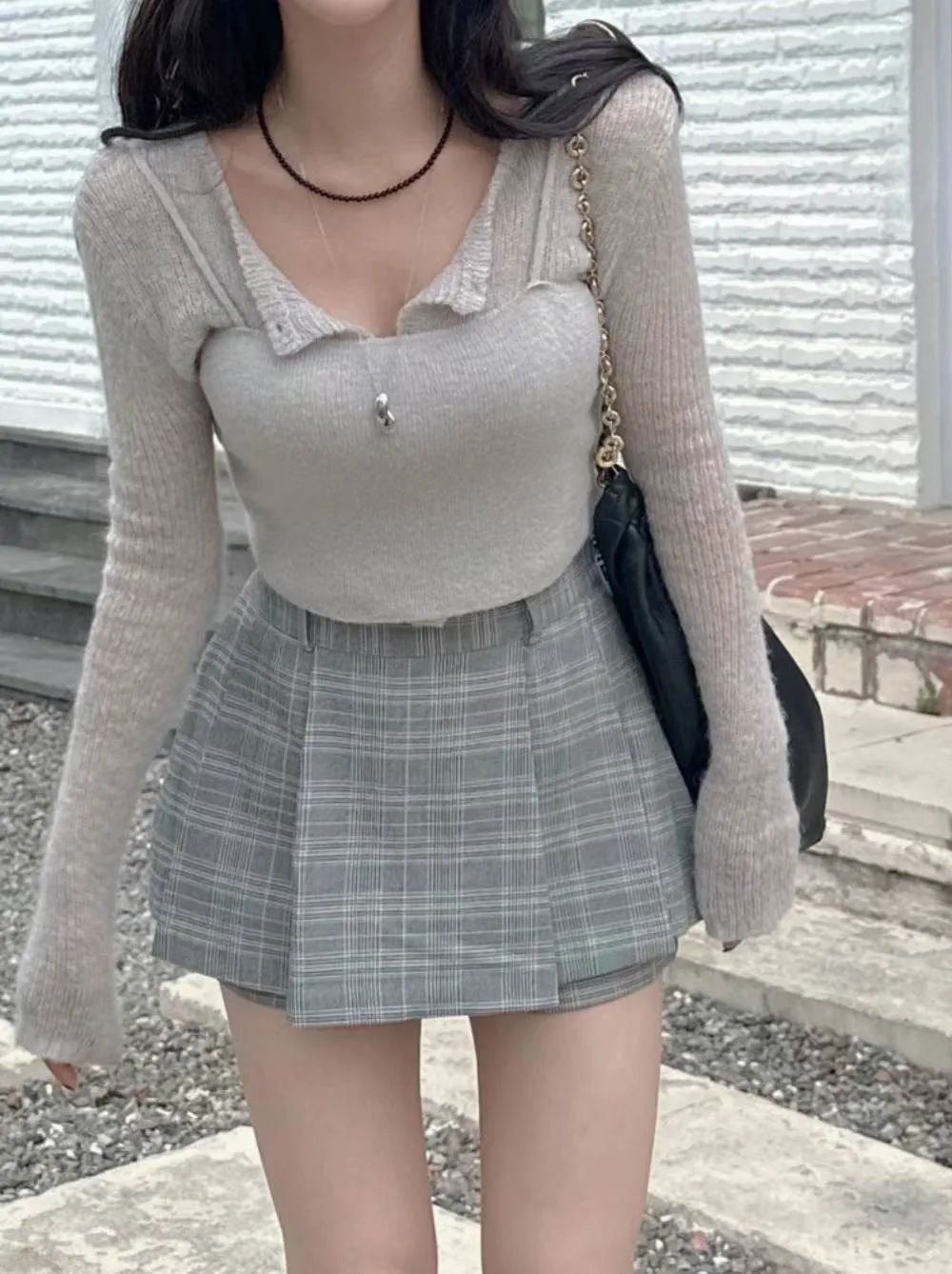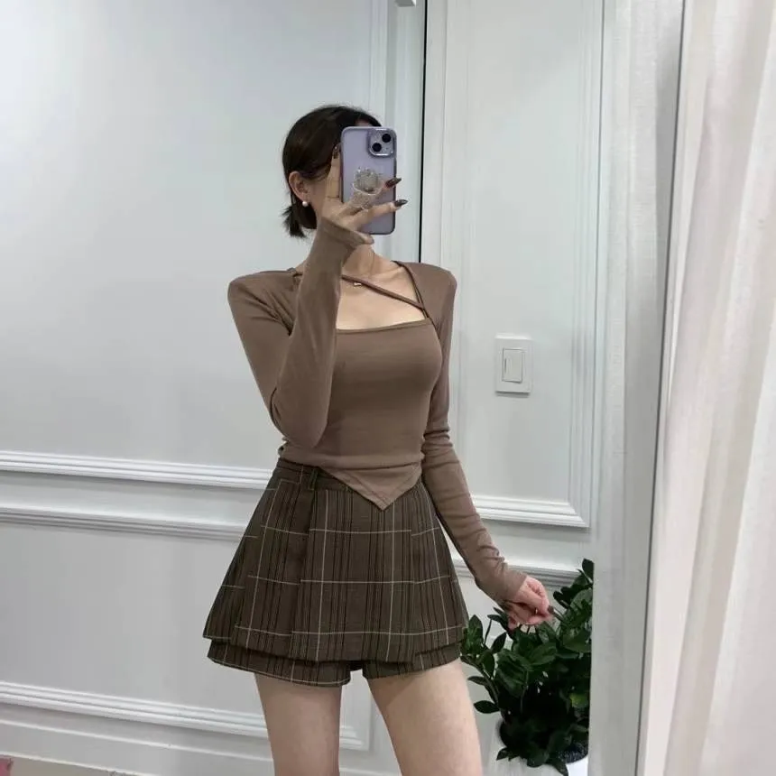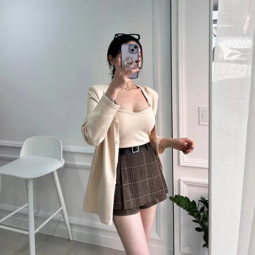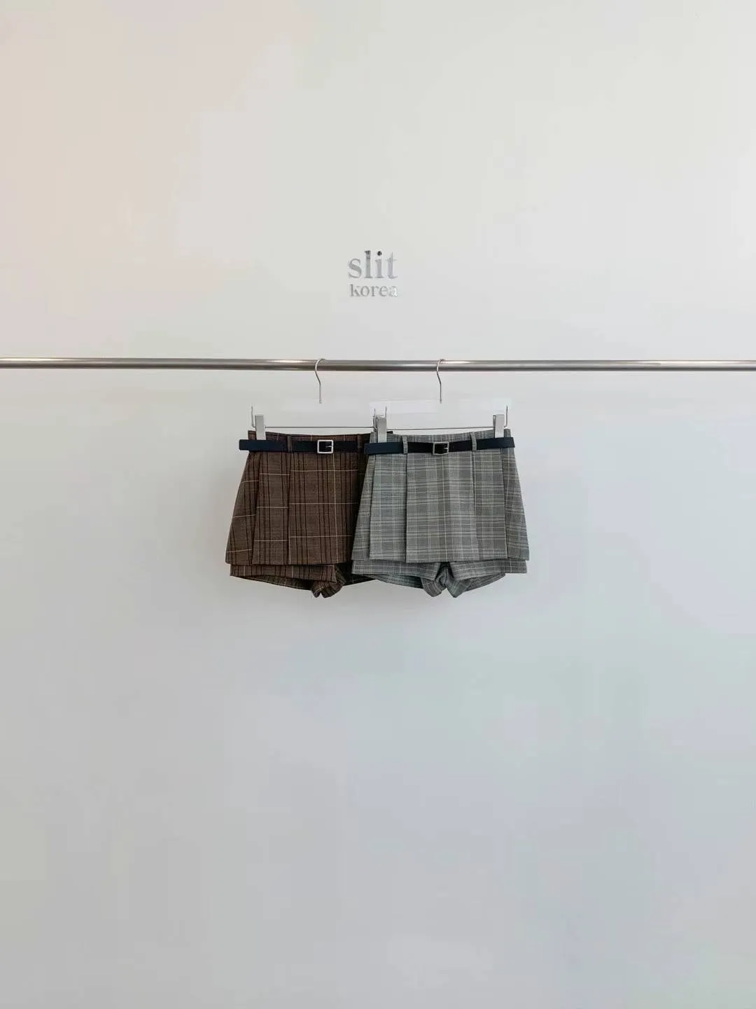 ✨PC075秋天必收細緻格褲裙(附皮帶) 灰 咖 官網價$1360 線上價$1330