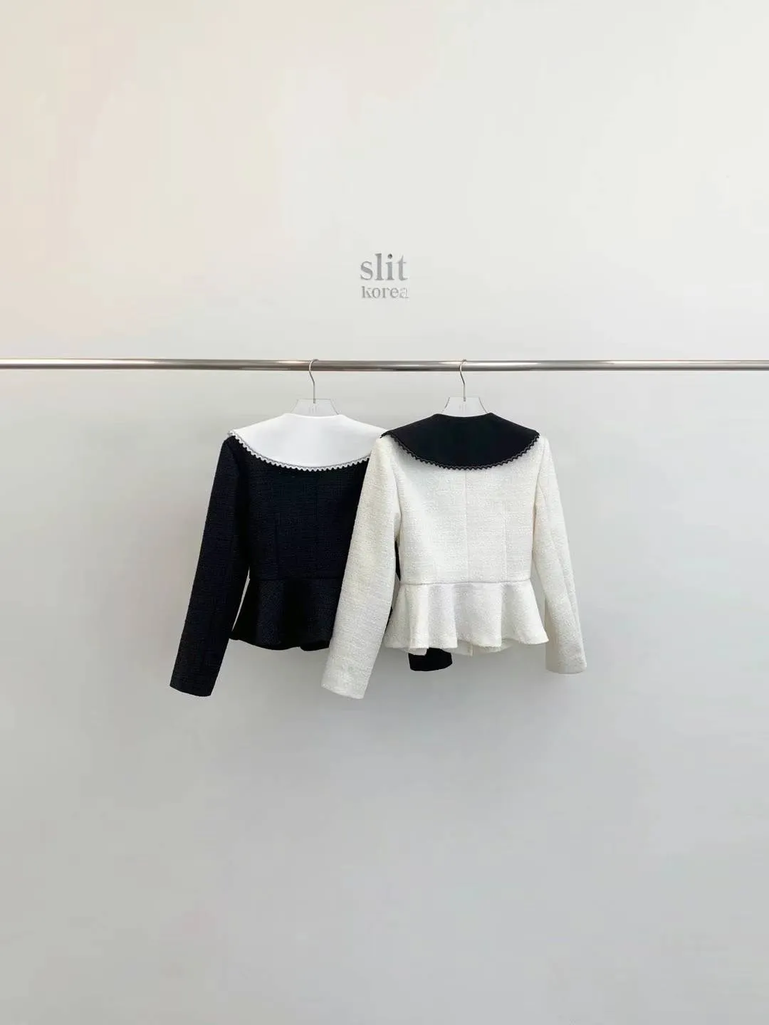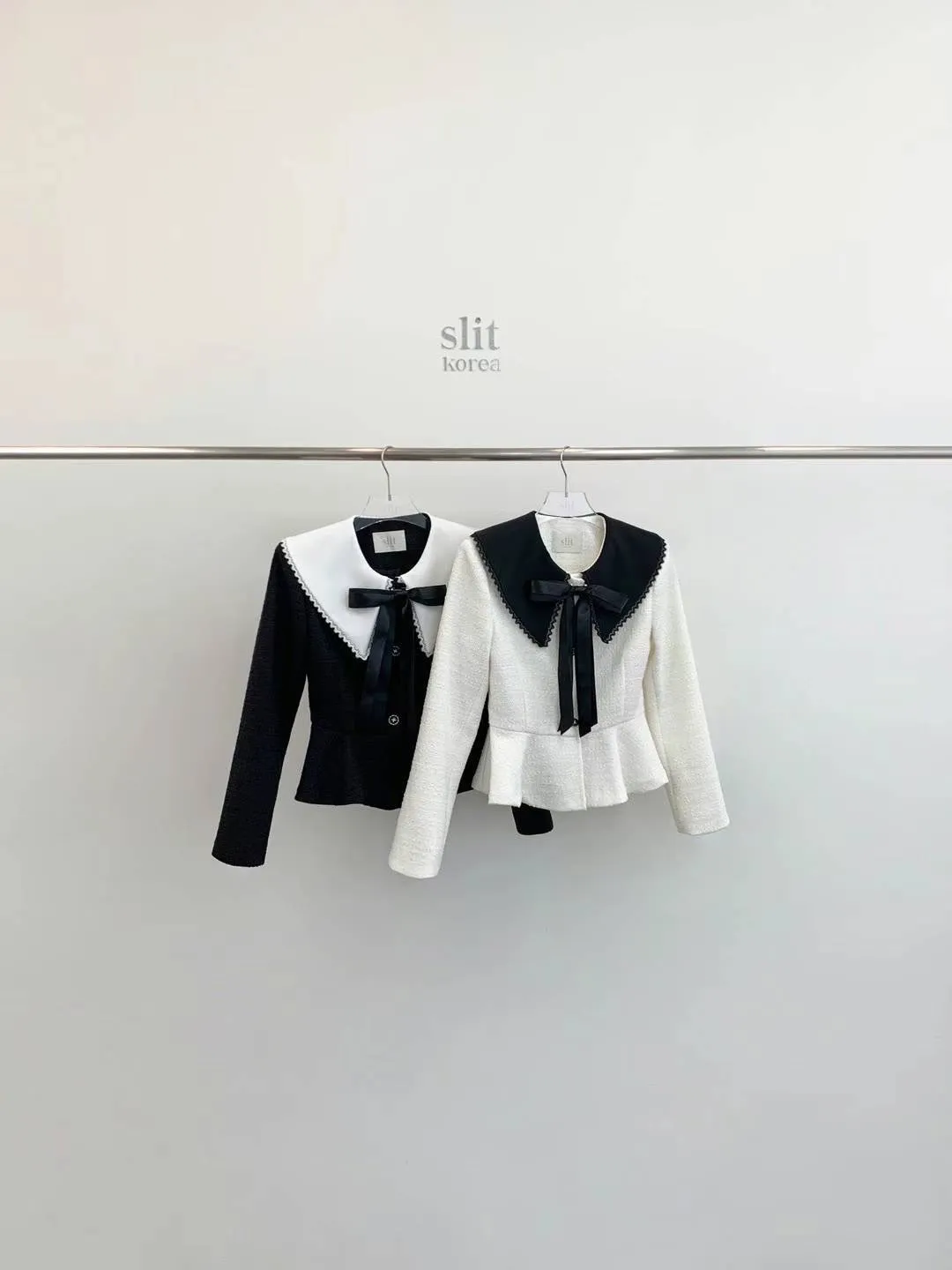 PC082滾邊蕾絲大翻領綁帶上衣 米 黑 官網價$2320 線上價$2290