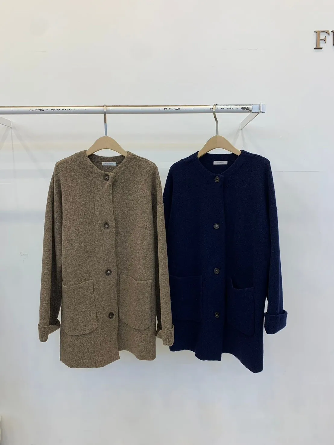 PC101高級羊毛雙口袋長版針織外套