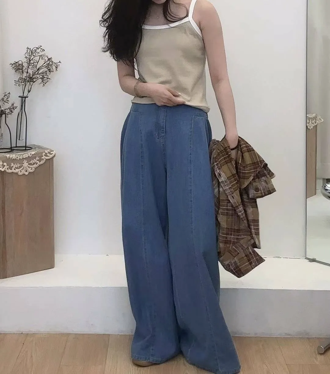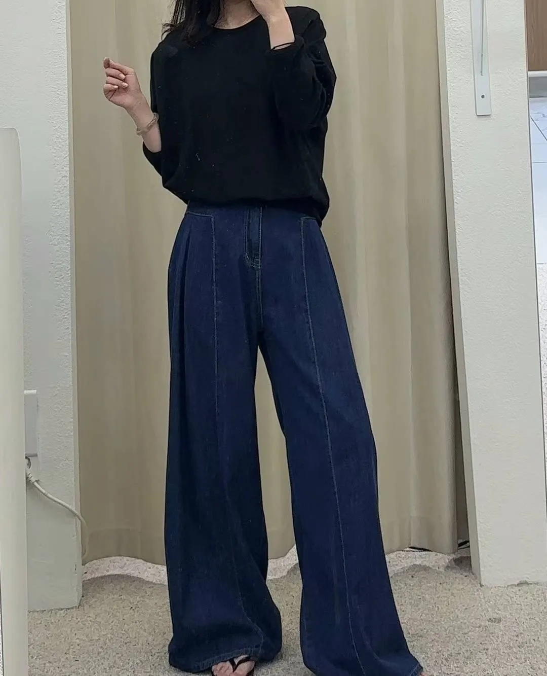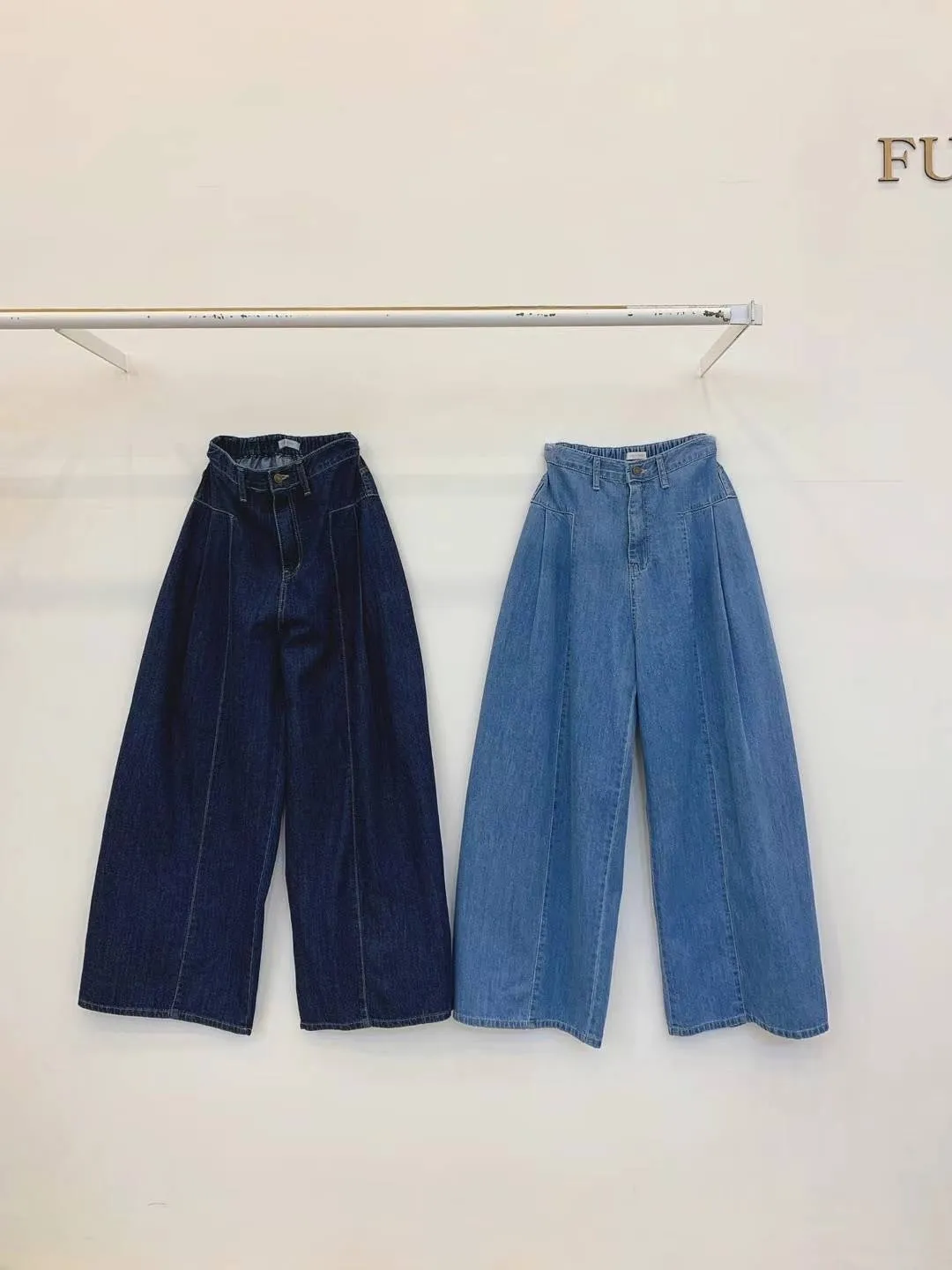 PC107牛仔細腰長腿層次寬寬長褲 淺藍 深藍 S M L 官網價$1199 線上價$1169