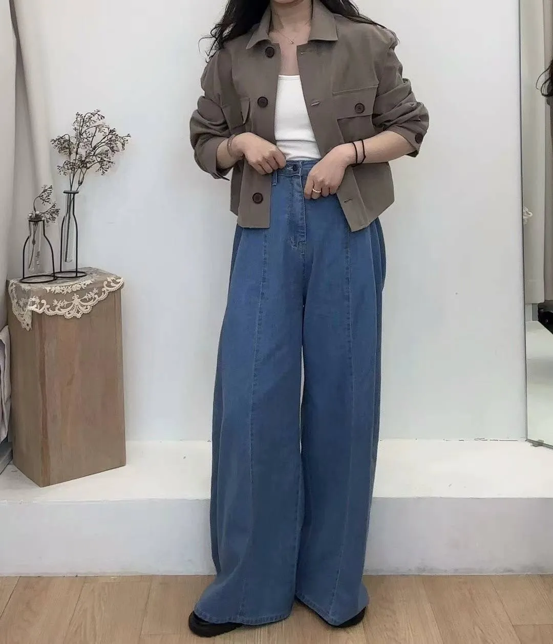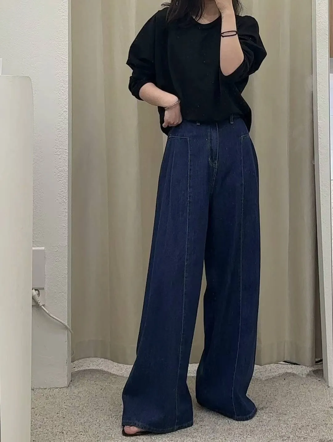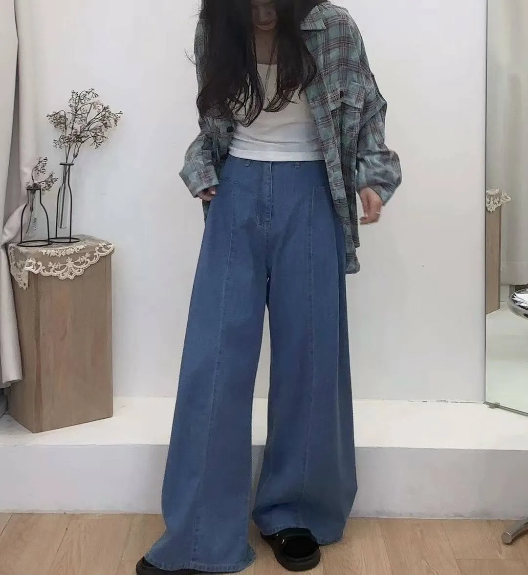 PC107牛仔細腰長腿層次寬寬長褲 淺藍 深藍 S M L 官網價$1199 線上價$1169