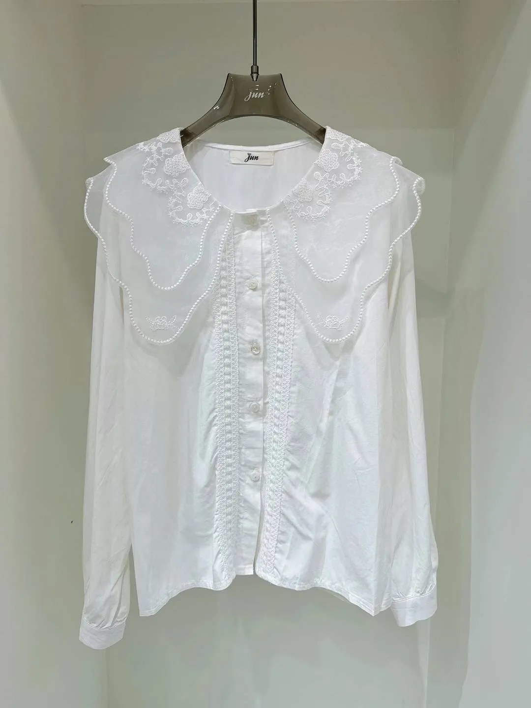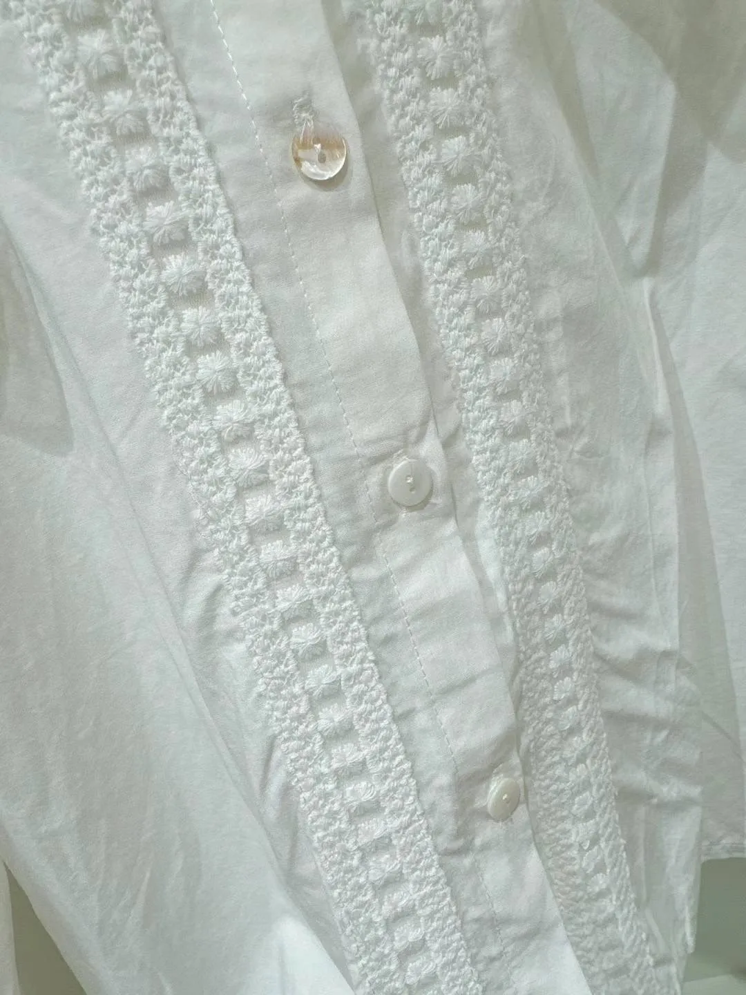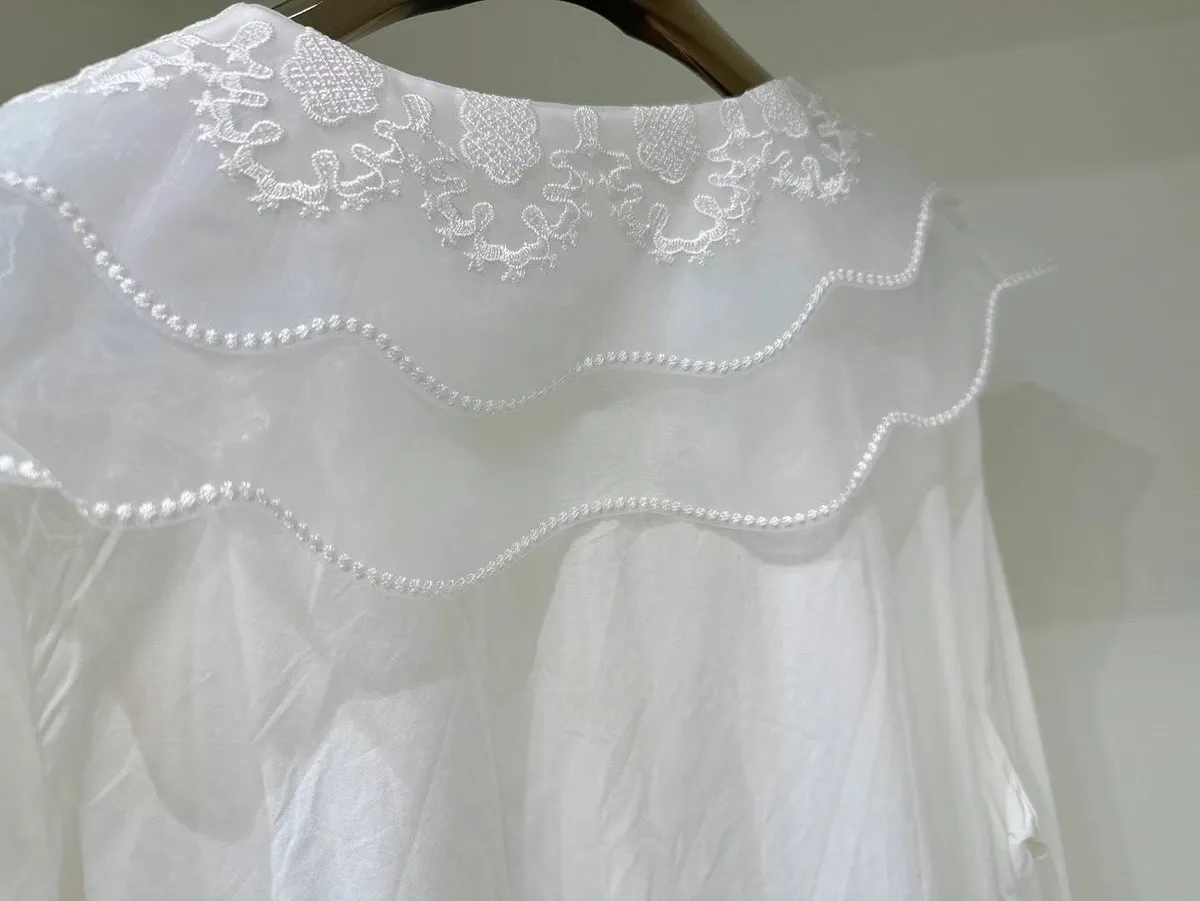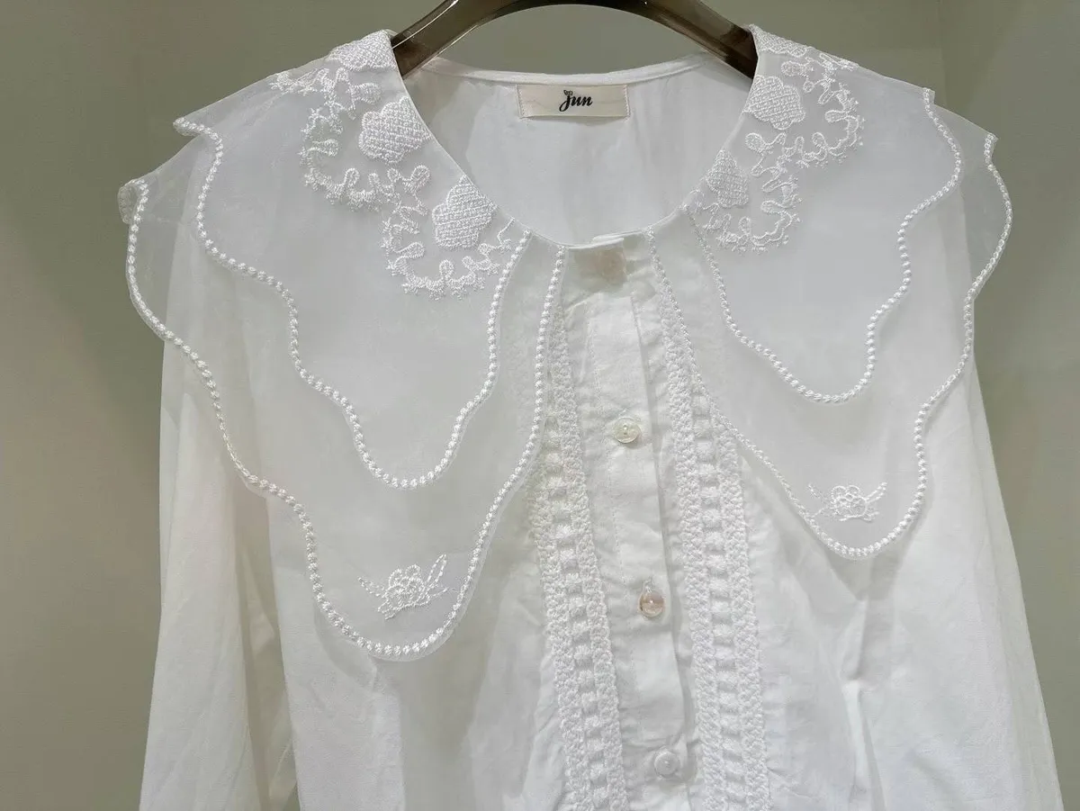 棉 非常舒服 透光飄逸雙層領 排釦穿脫 視覺輕盈柔焦 L號友善