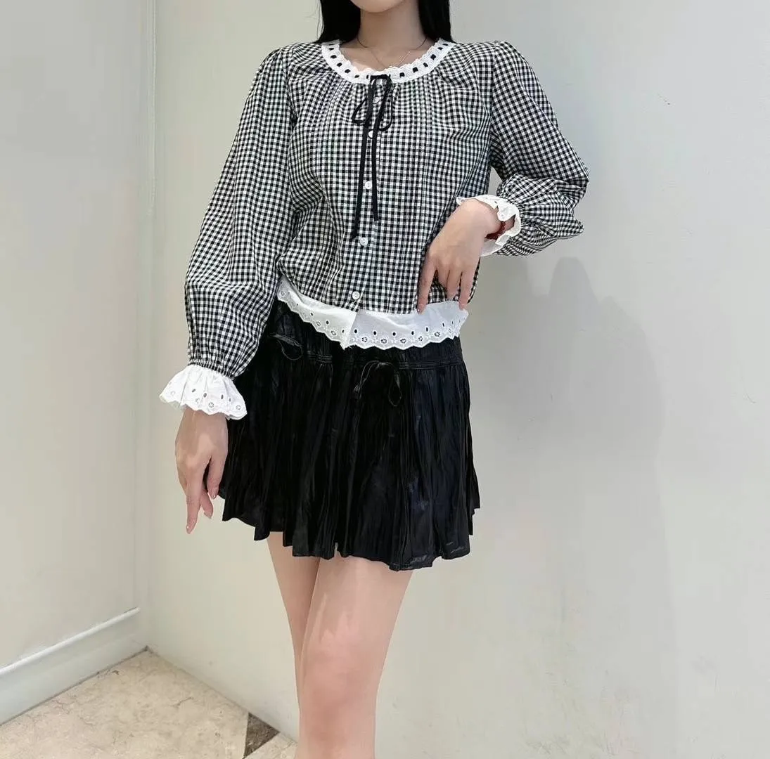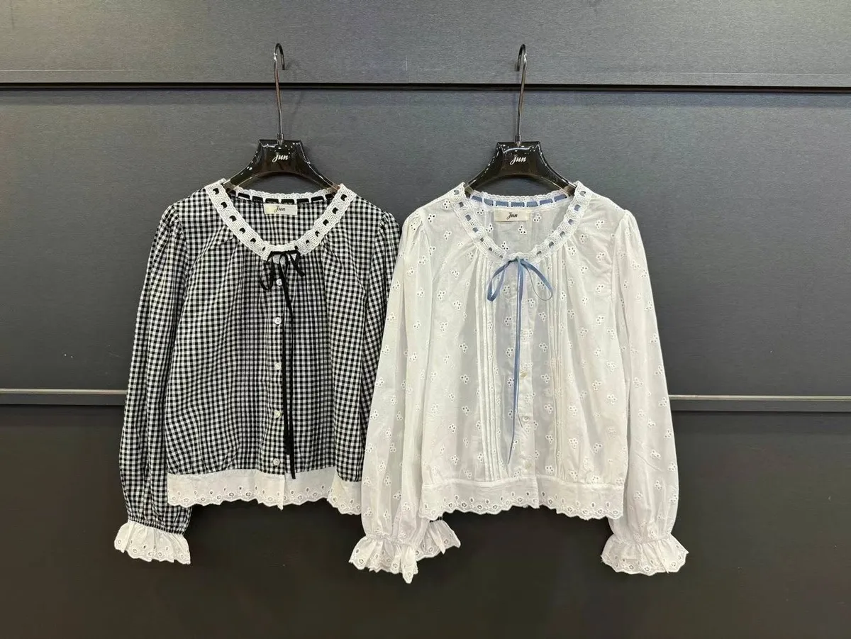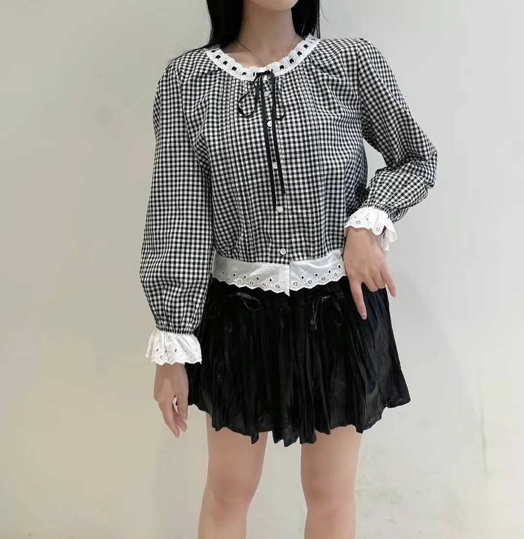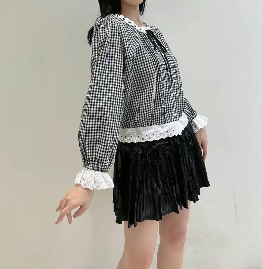 白色是簍空燒花蕾絲,黑色是細格紋面料