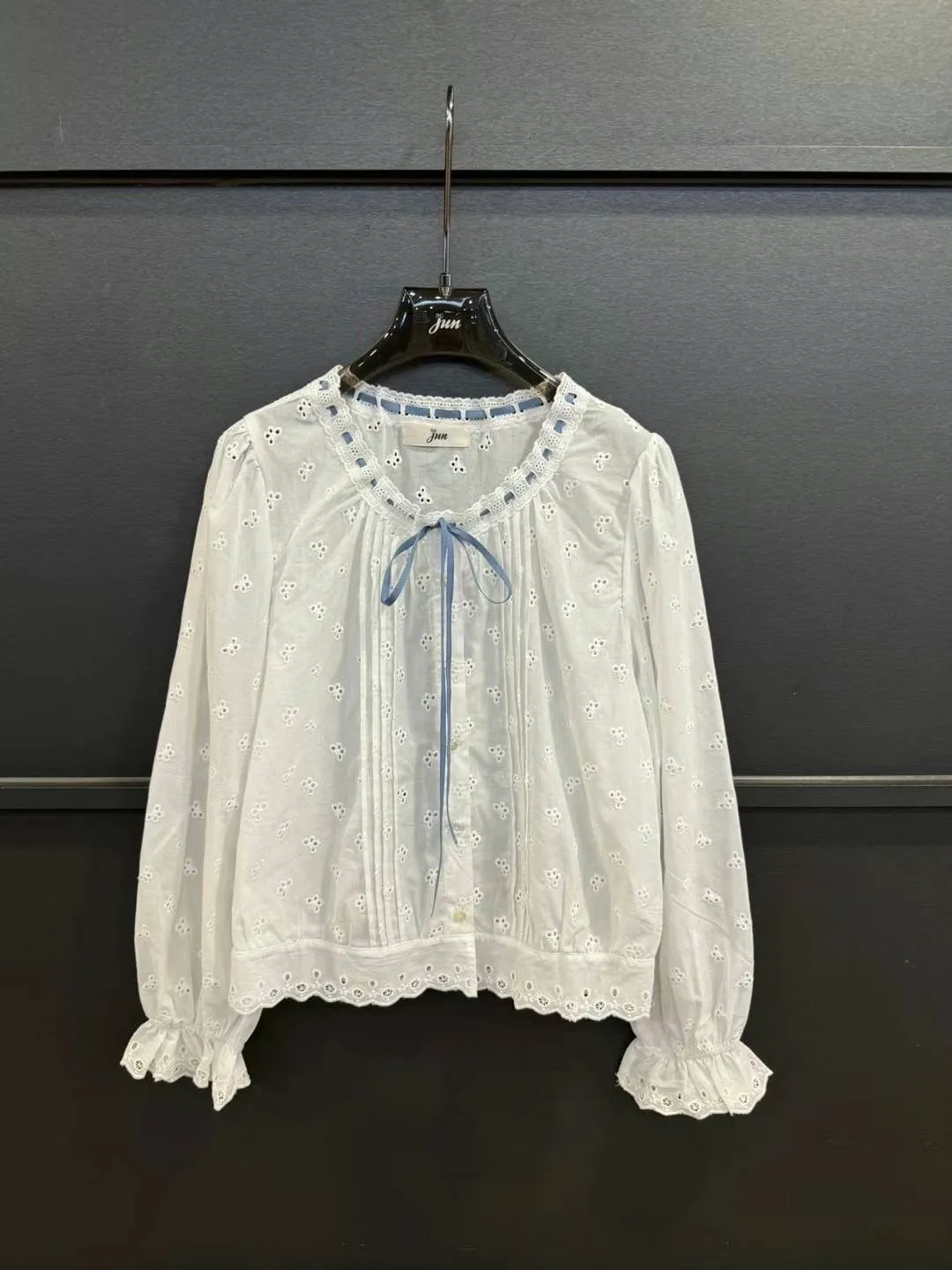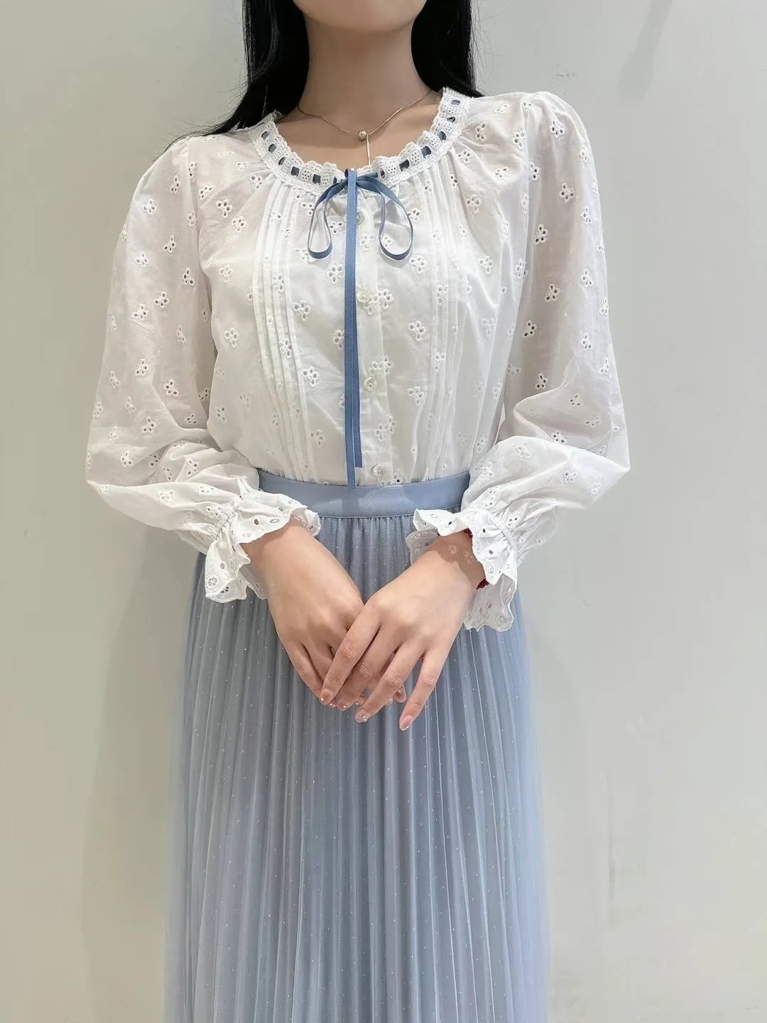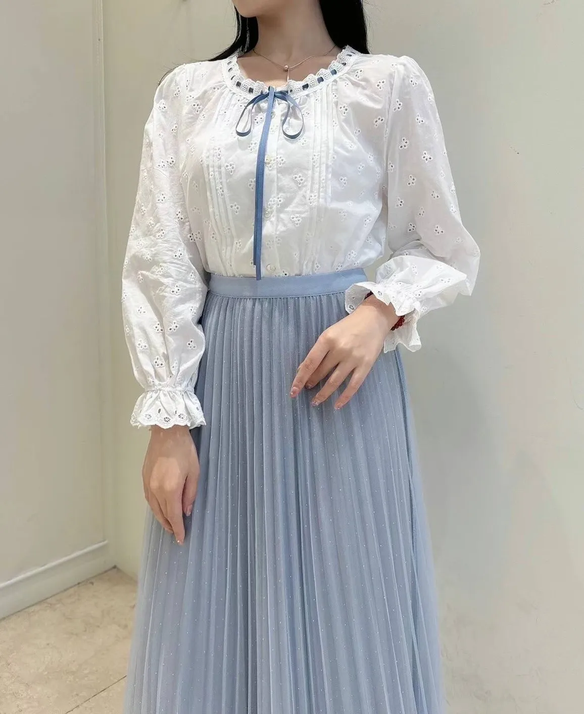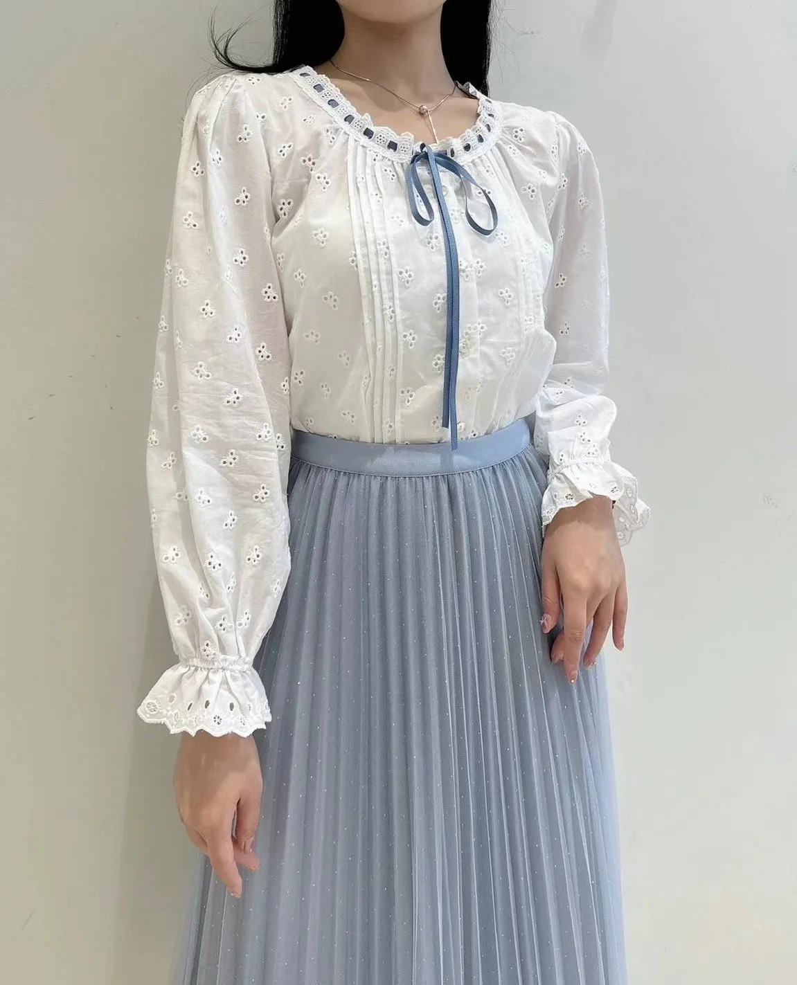 棉+聚酯 領口袖口拼接布蕾絲 風琴細褶 秋天舒適款