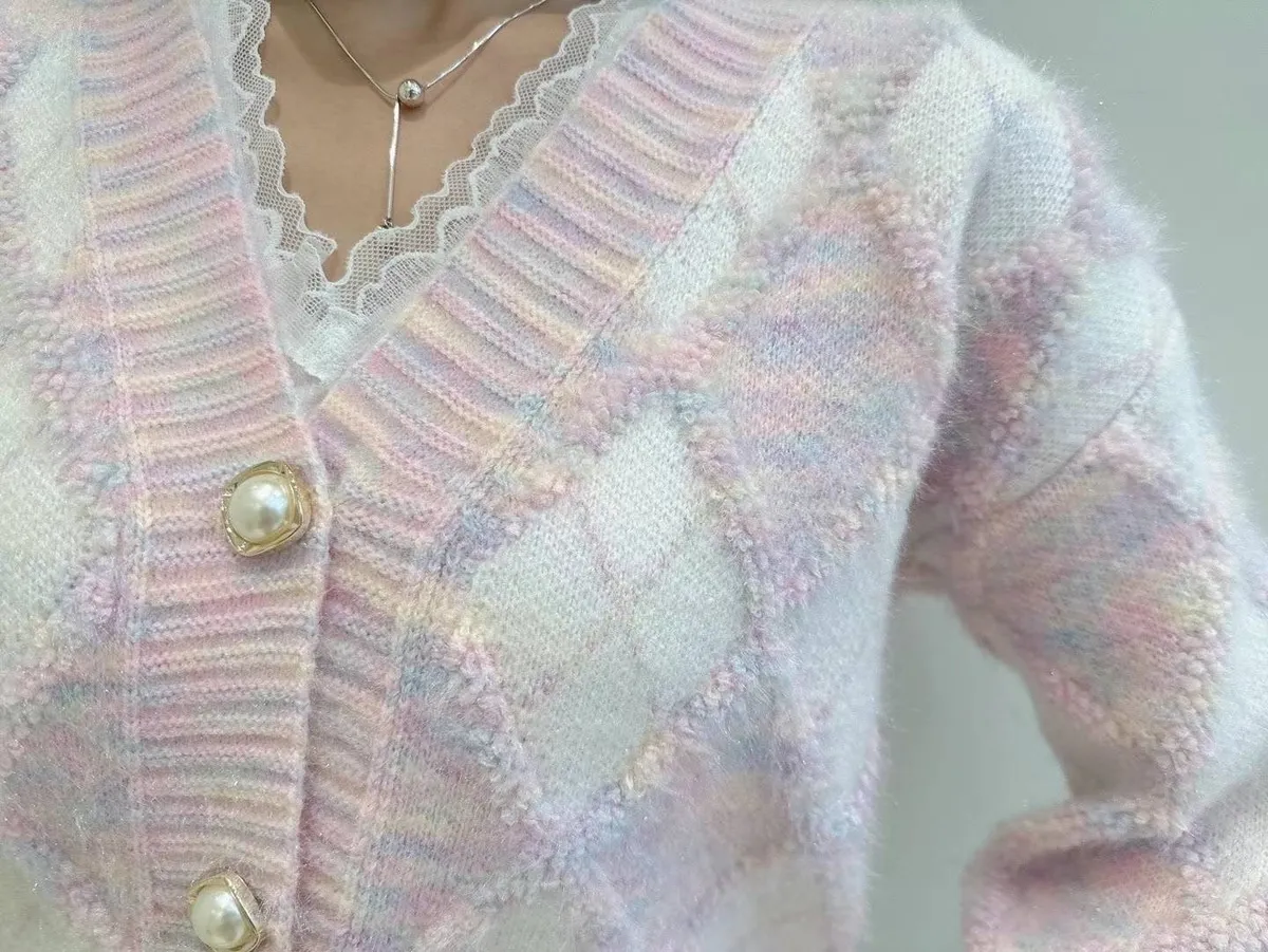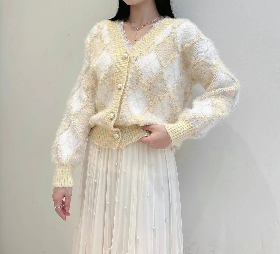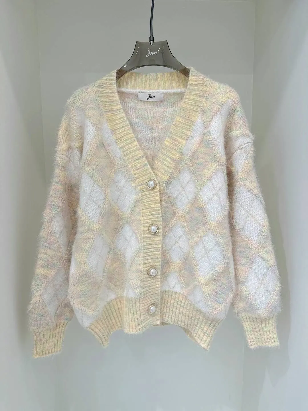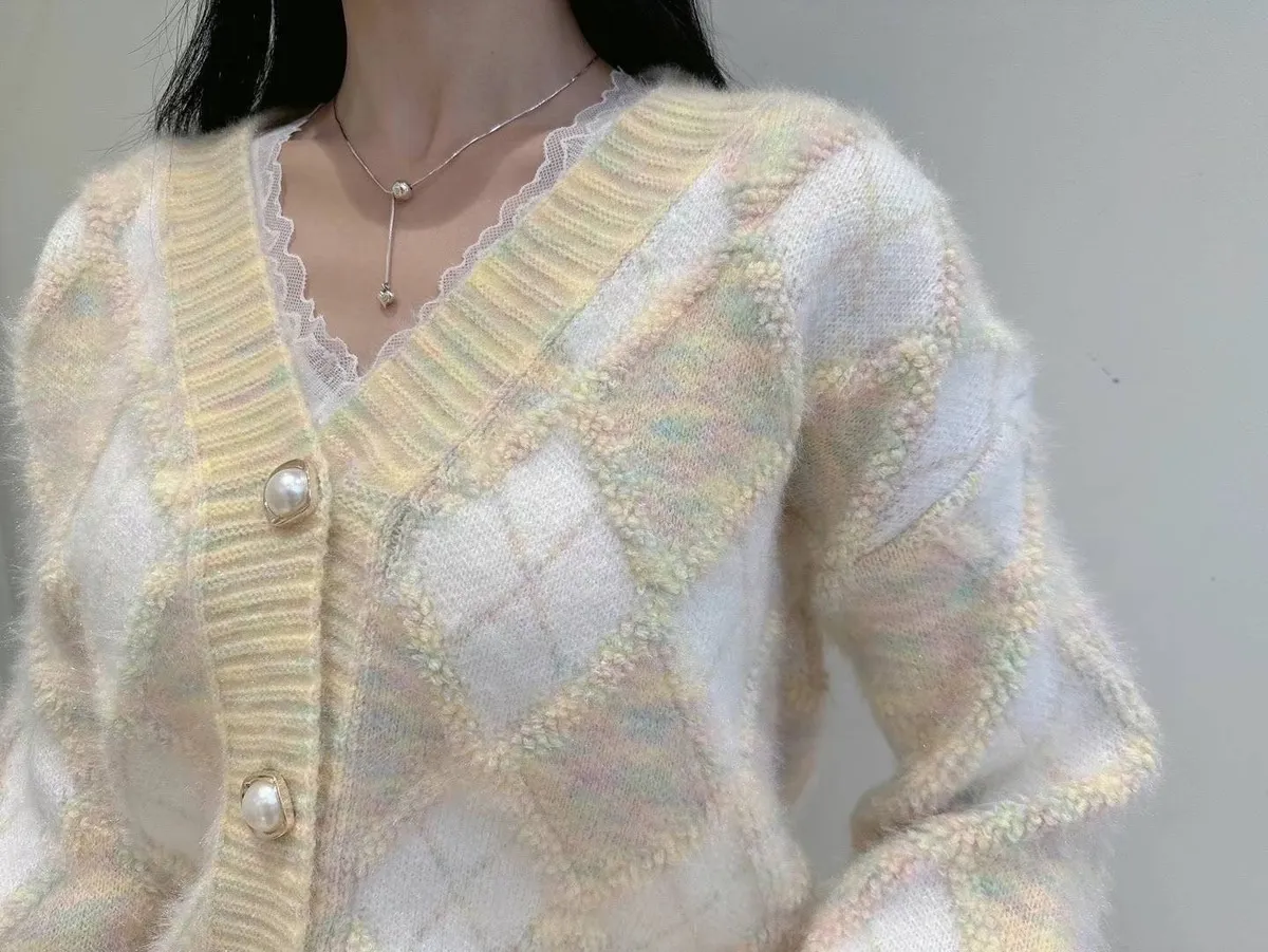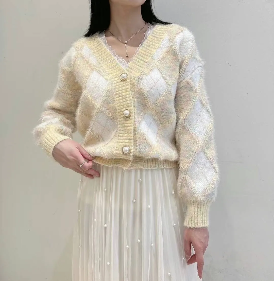 PC1093韓系英倫菱格混色針織外套 黃 粉 官網價$920 線上價$890