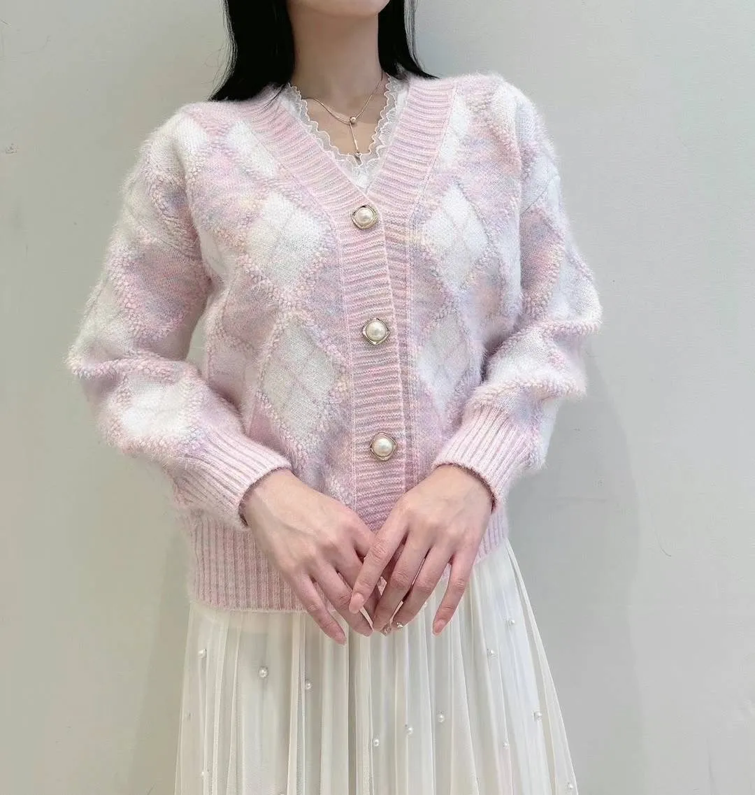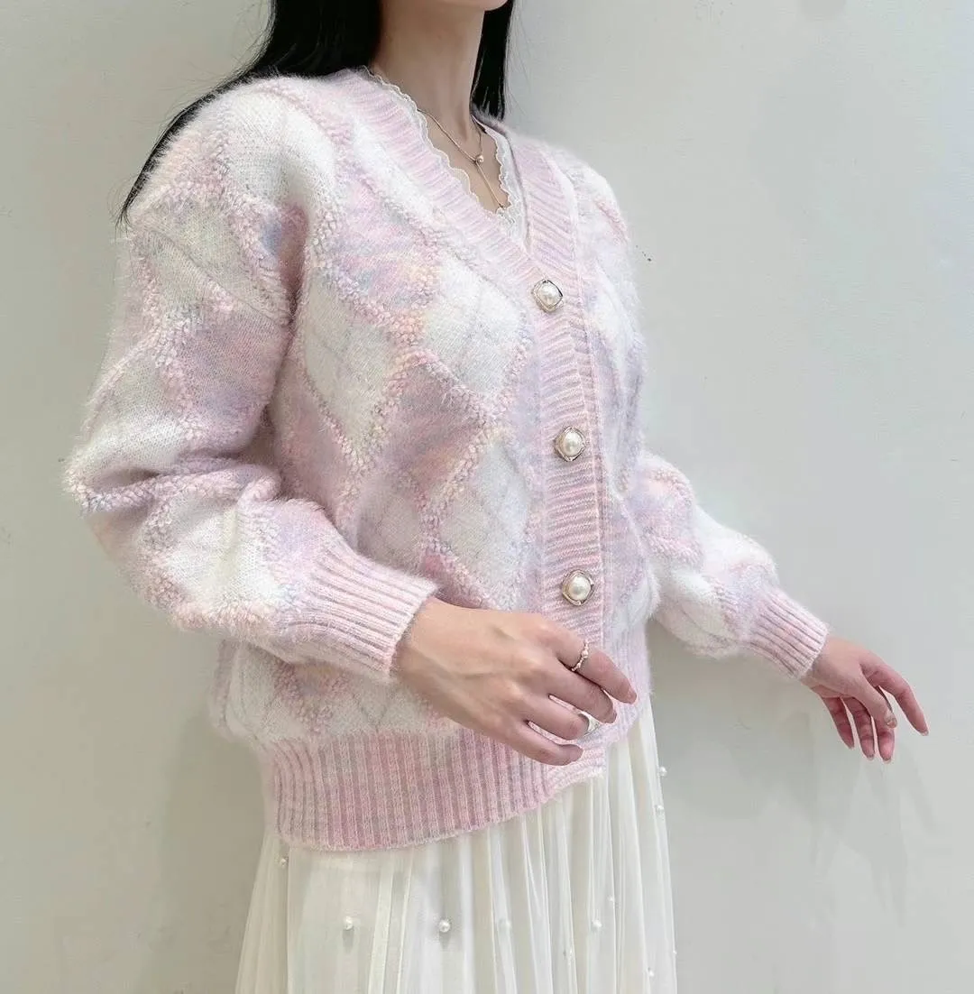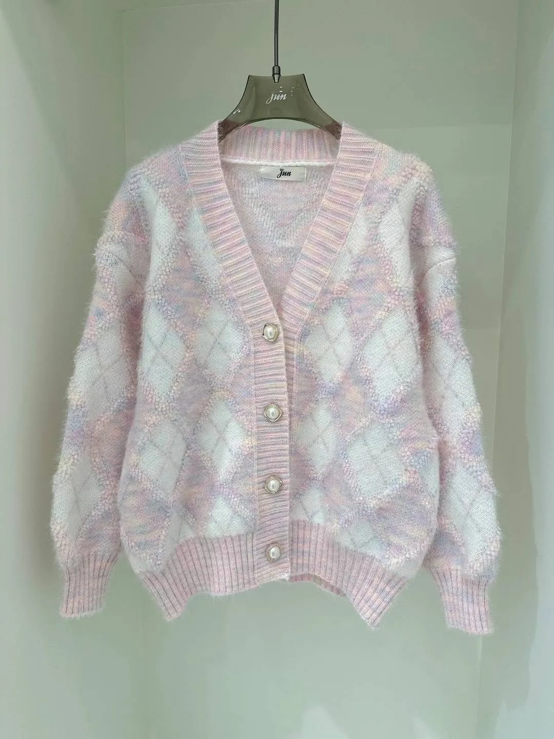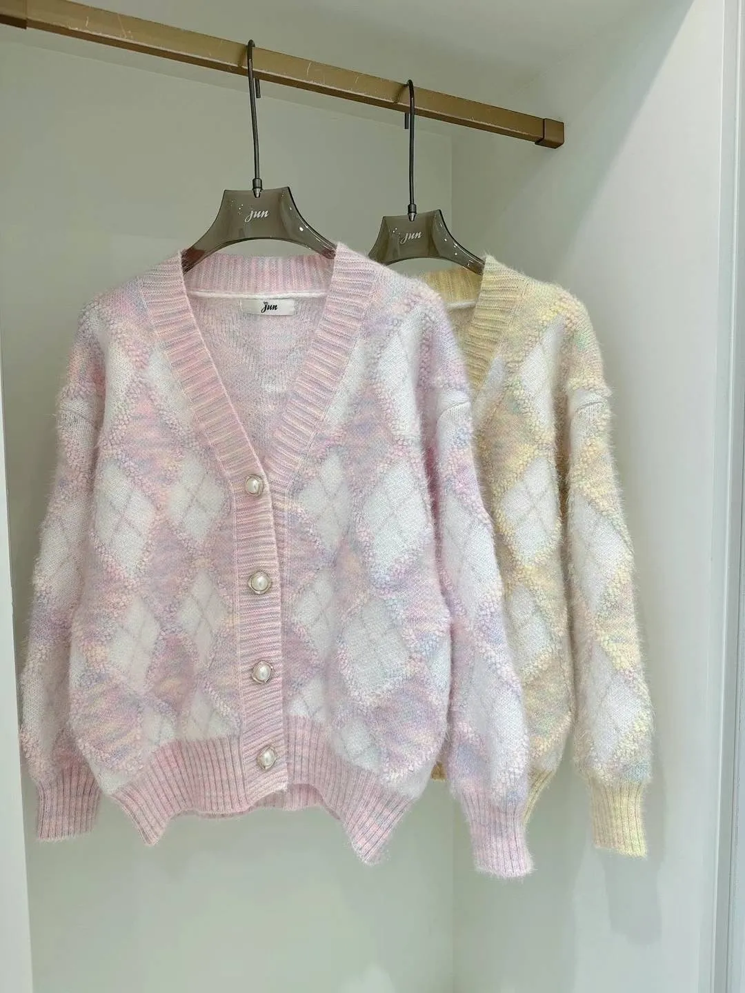 PC1093韓系英倫菱格混色針織外套 黃 粉 官網價$920 線上價$890