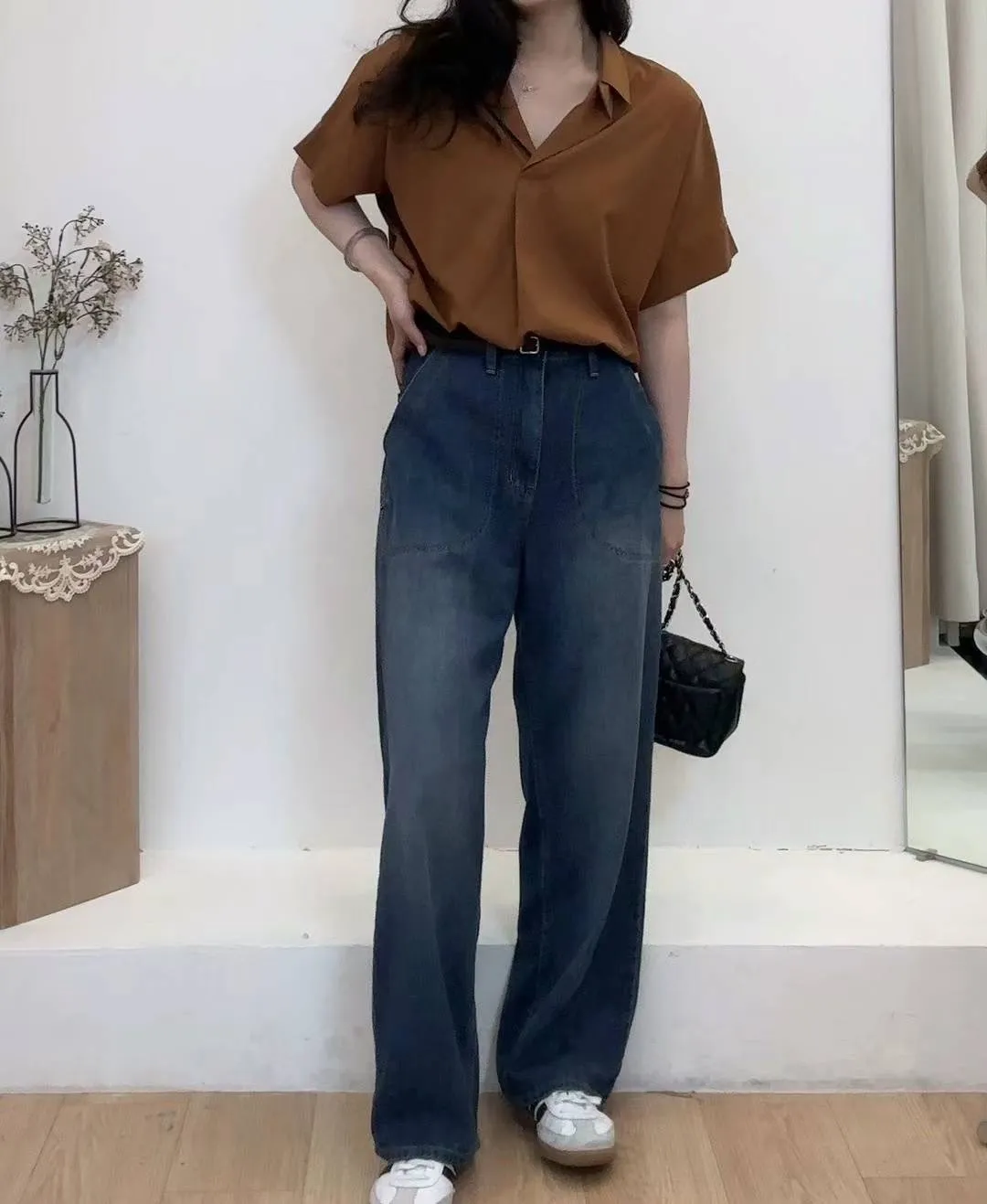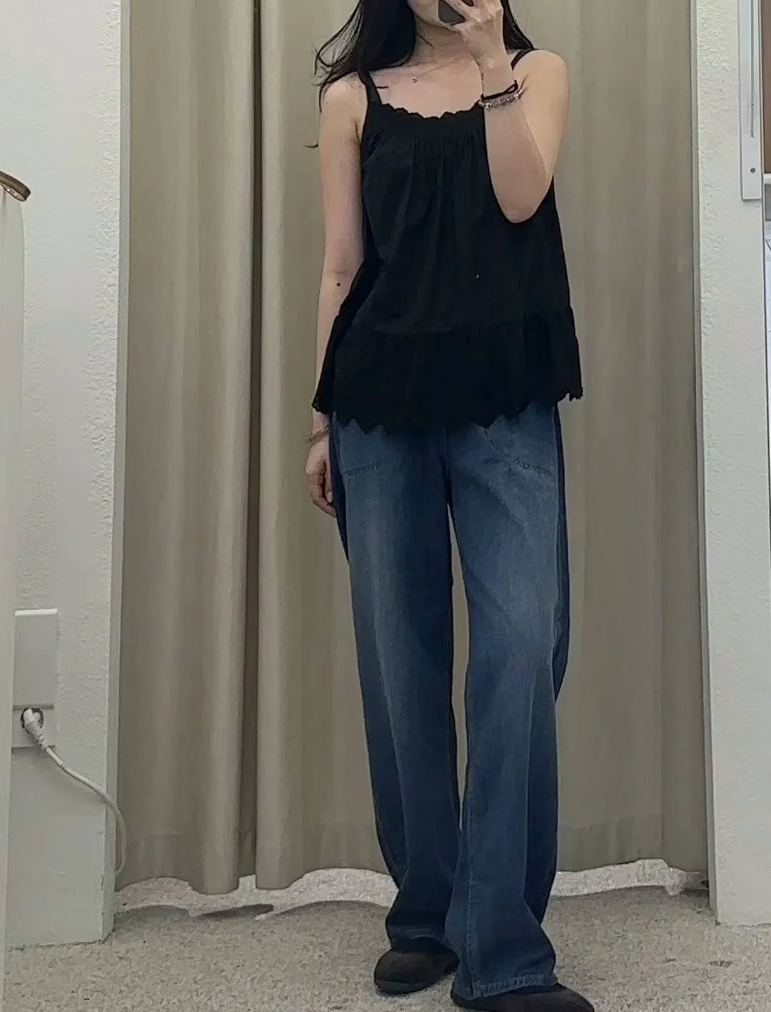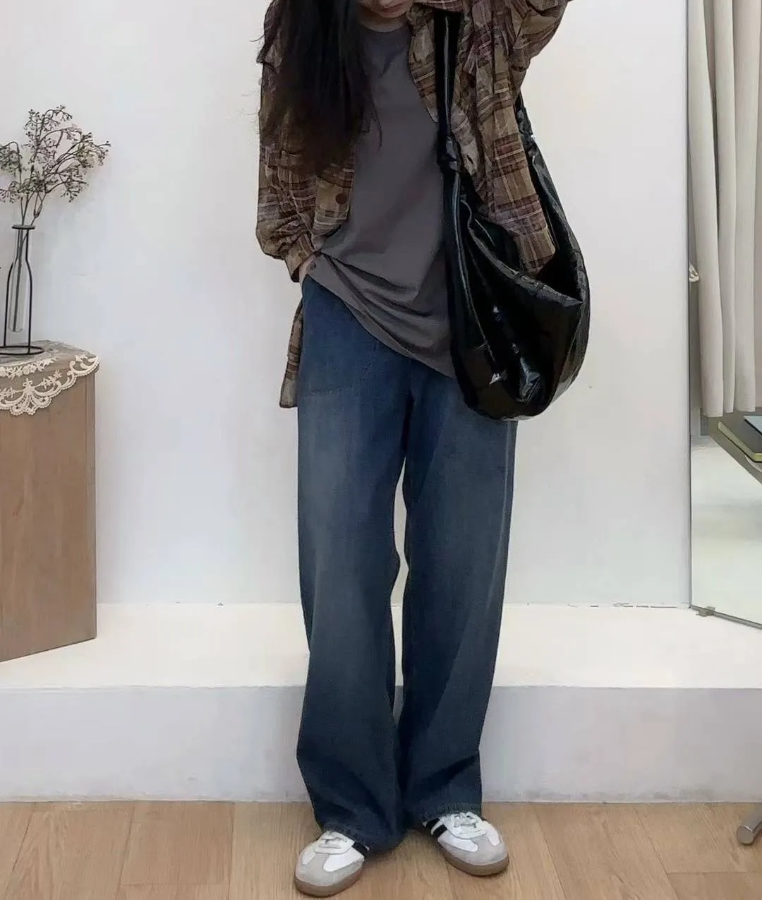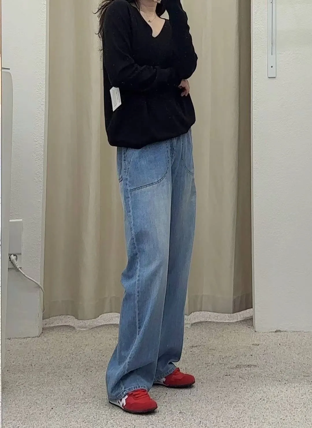 棉 薄款 釦鍊穿脫 後腰鬆緊 有口袋 寬寬褲管男友風