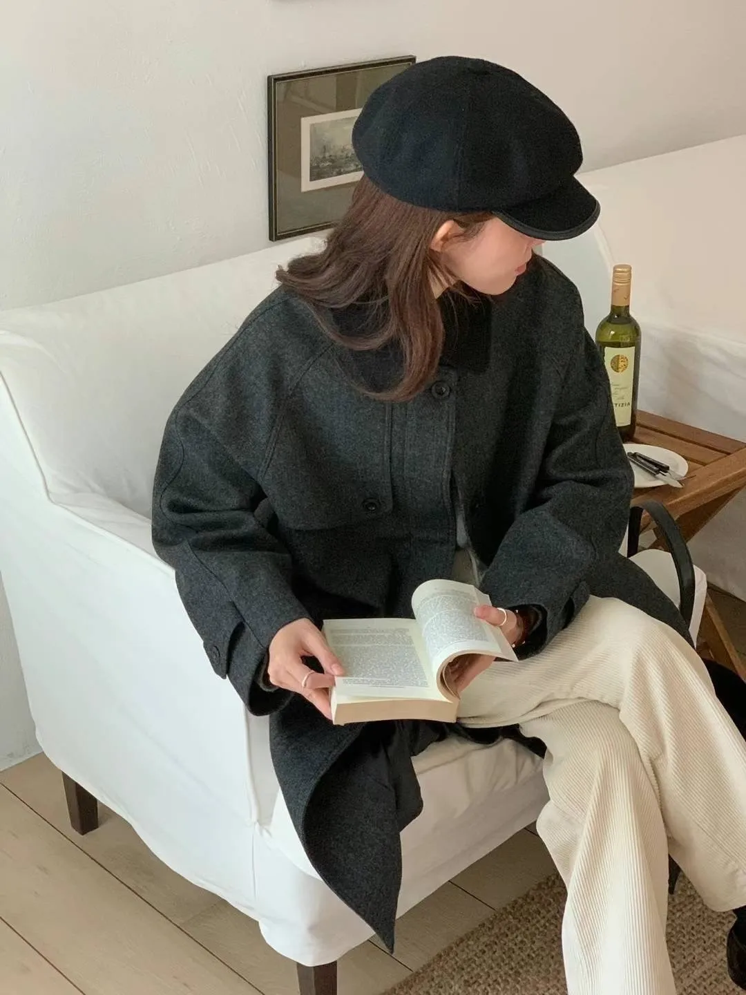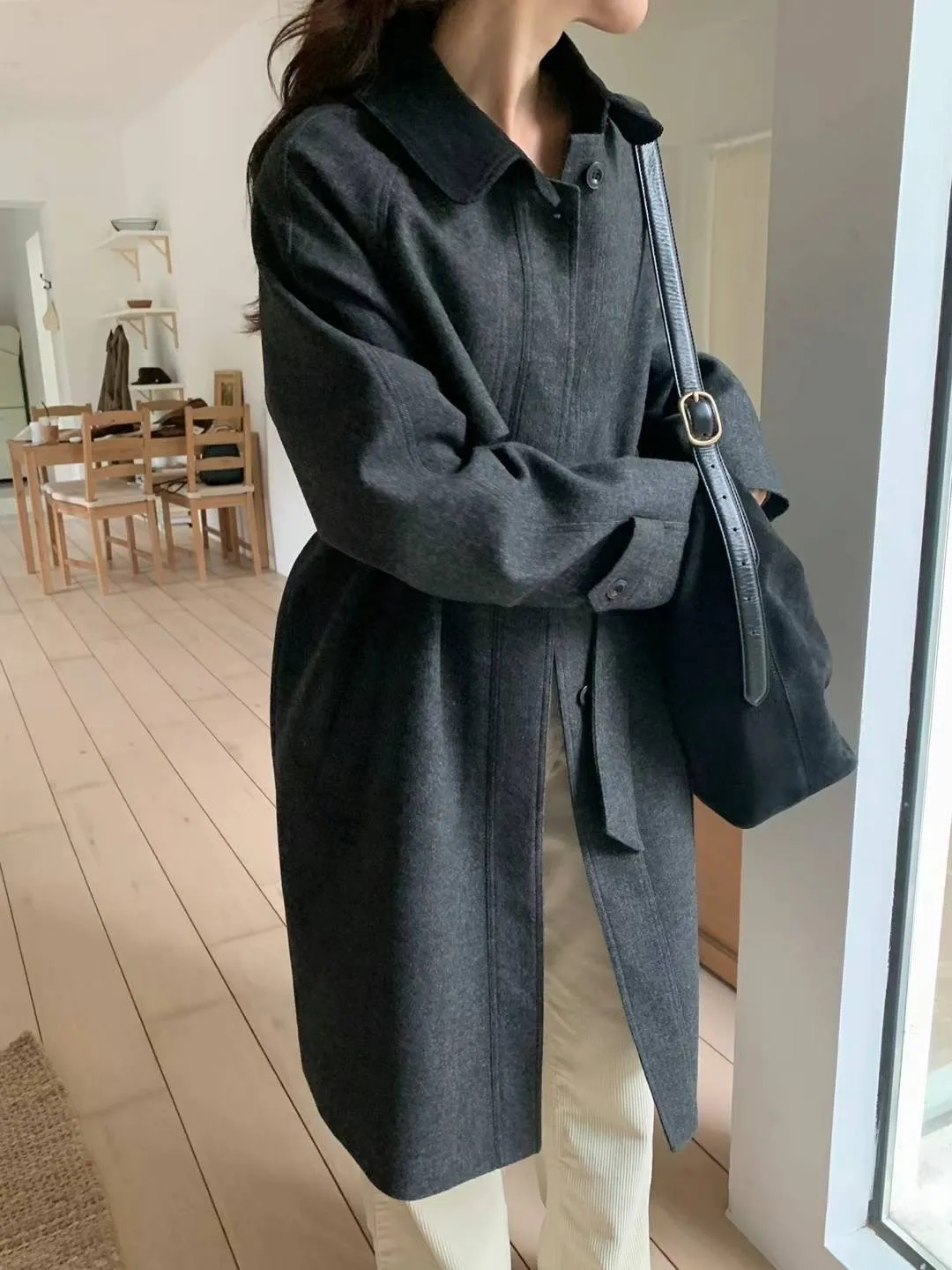 羊毛80% 落肩 領口燈心絨 附綁帶(無腰耳) 後開叉 不易起毛球
