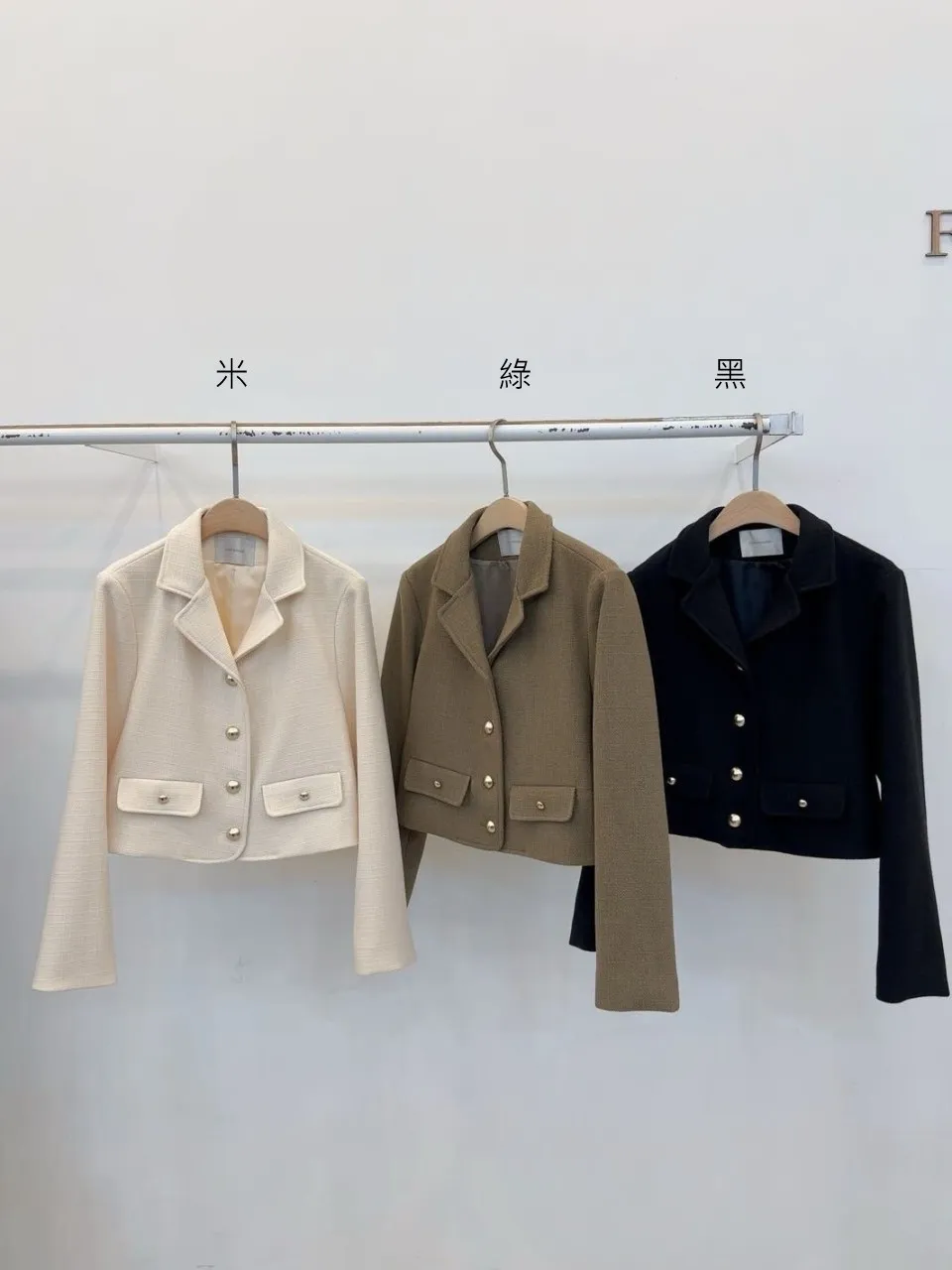 PC112高級感金釦短版小香外套 米 綠 黑 官網價$1980 線上價$1950
