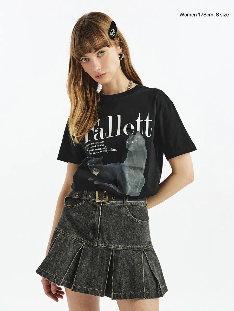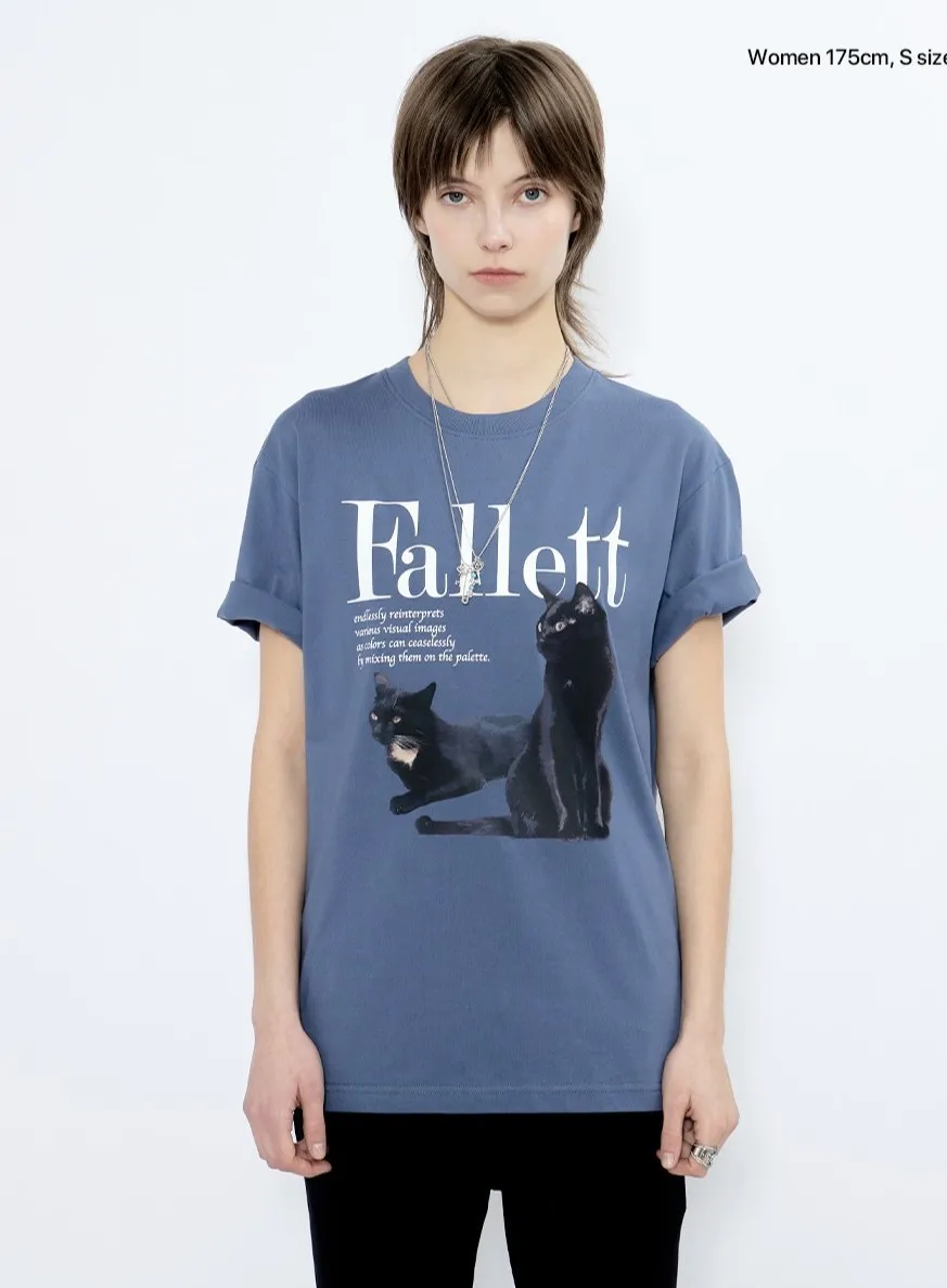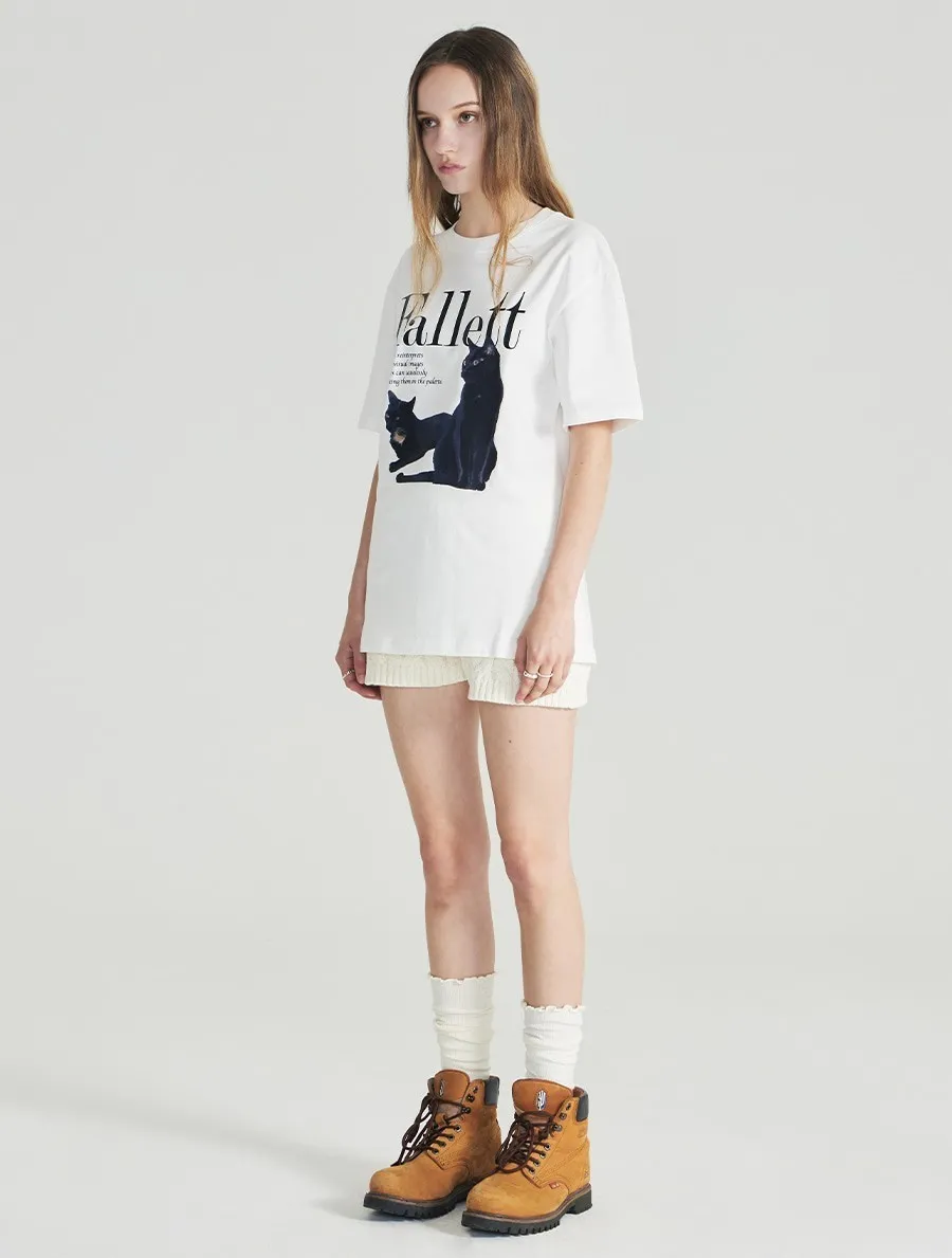 PC1142潮流可愛兩隻貓貓短袖Tshirt 白 藍 灰 黑 XS S M L XL 官網價$920 線上價$890
