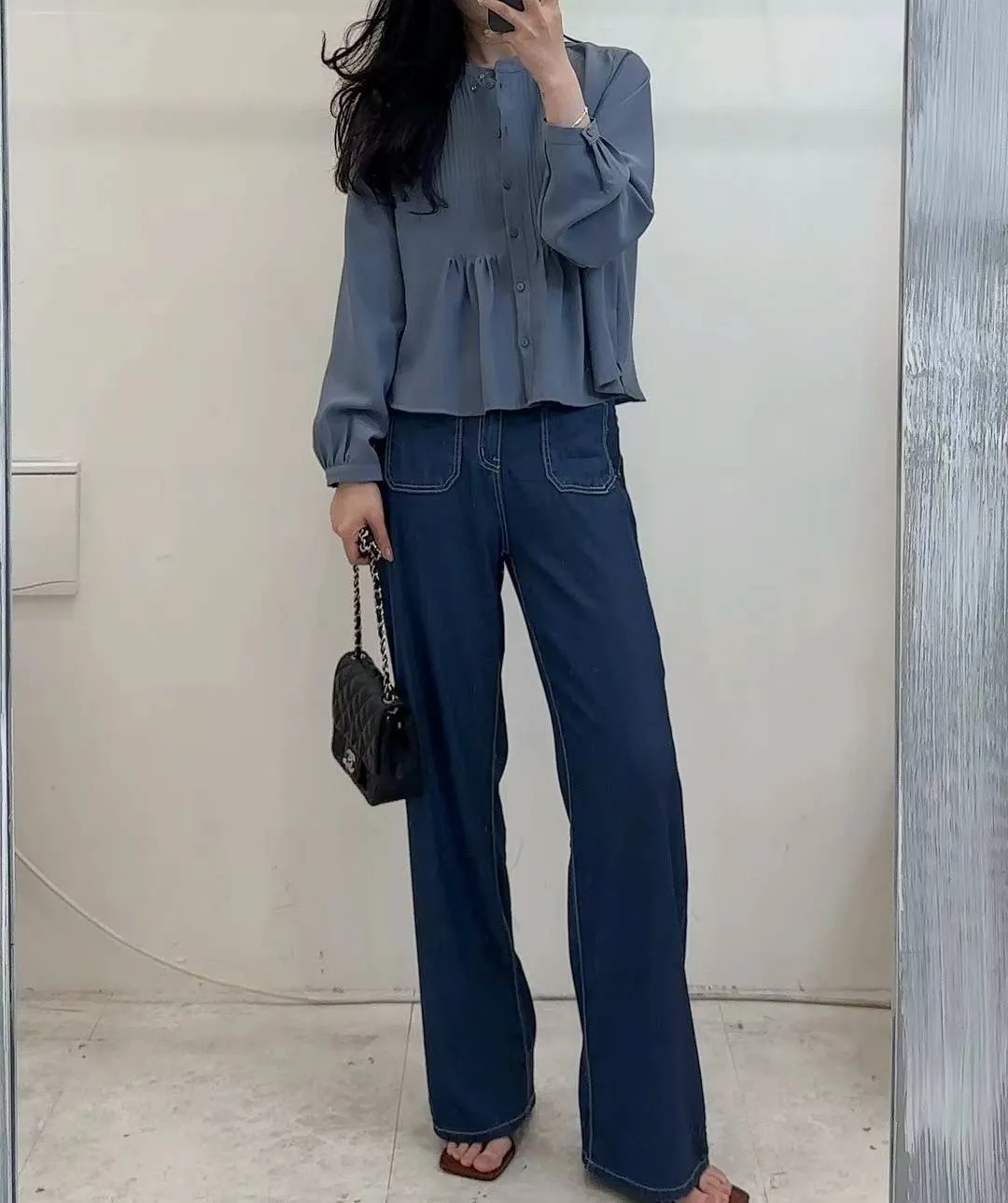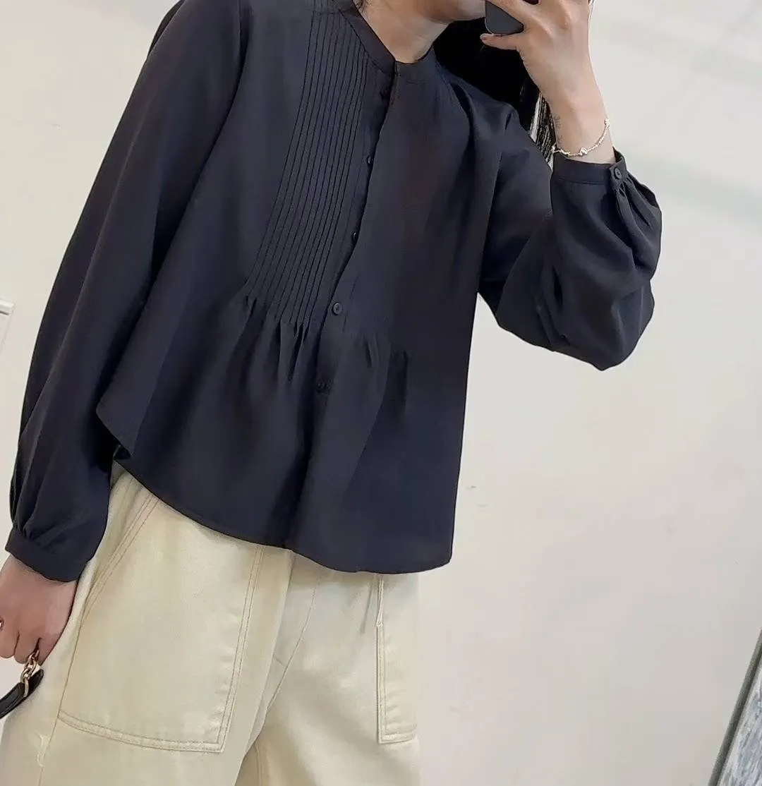 雪紡 釦子穿脫 中山領 娃娃裝下擺 不易皺面料