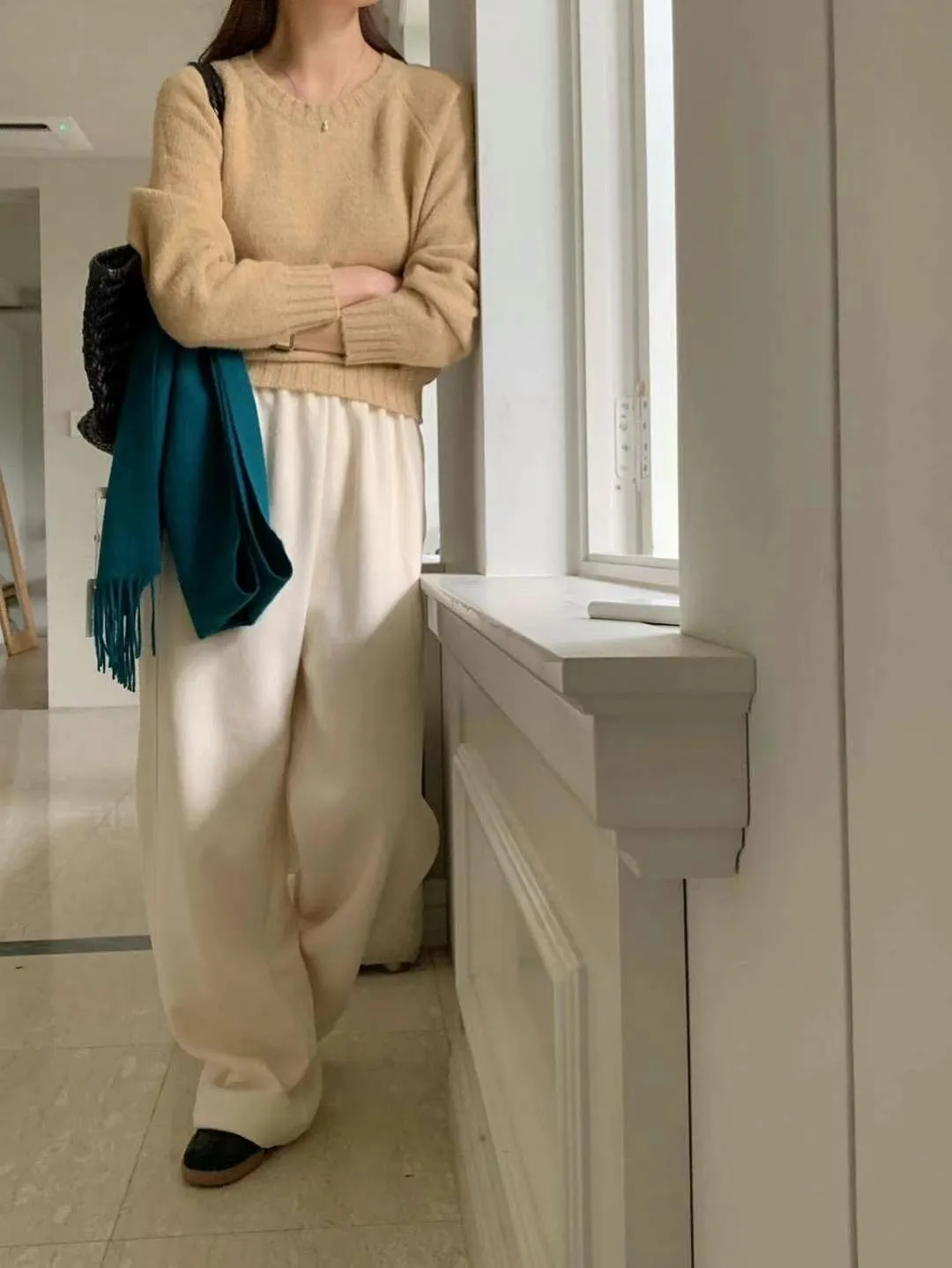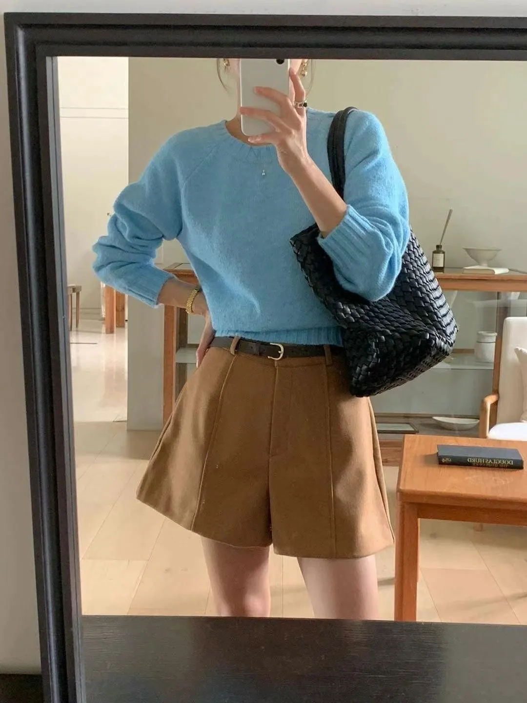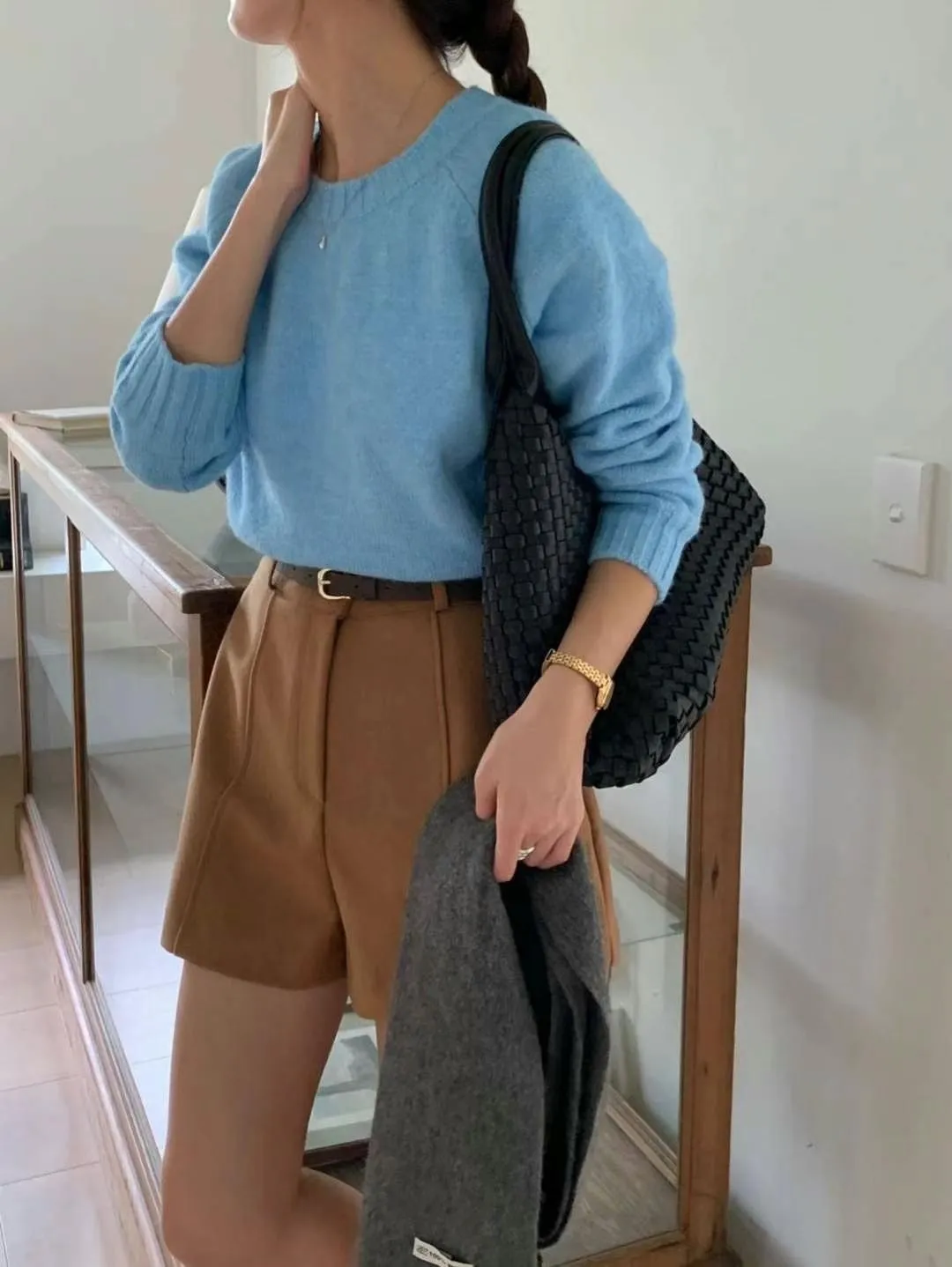 羊毛8%+聚酯 下擺縮口 簡單好看 百搭款式