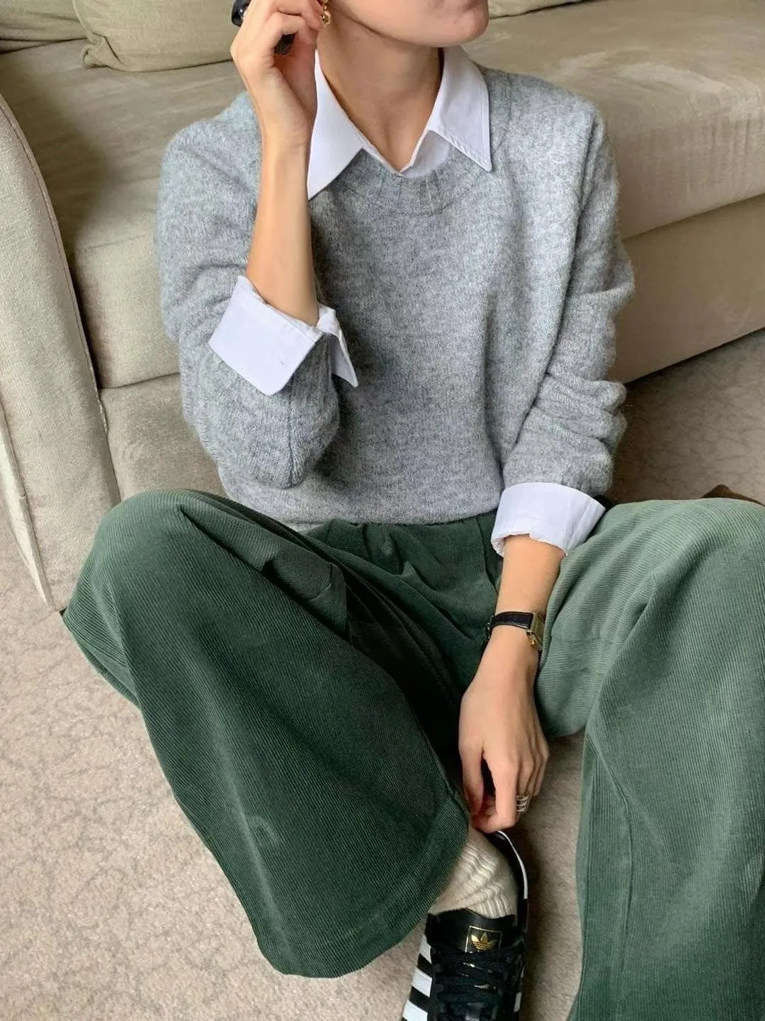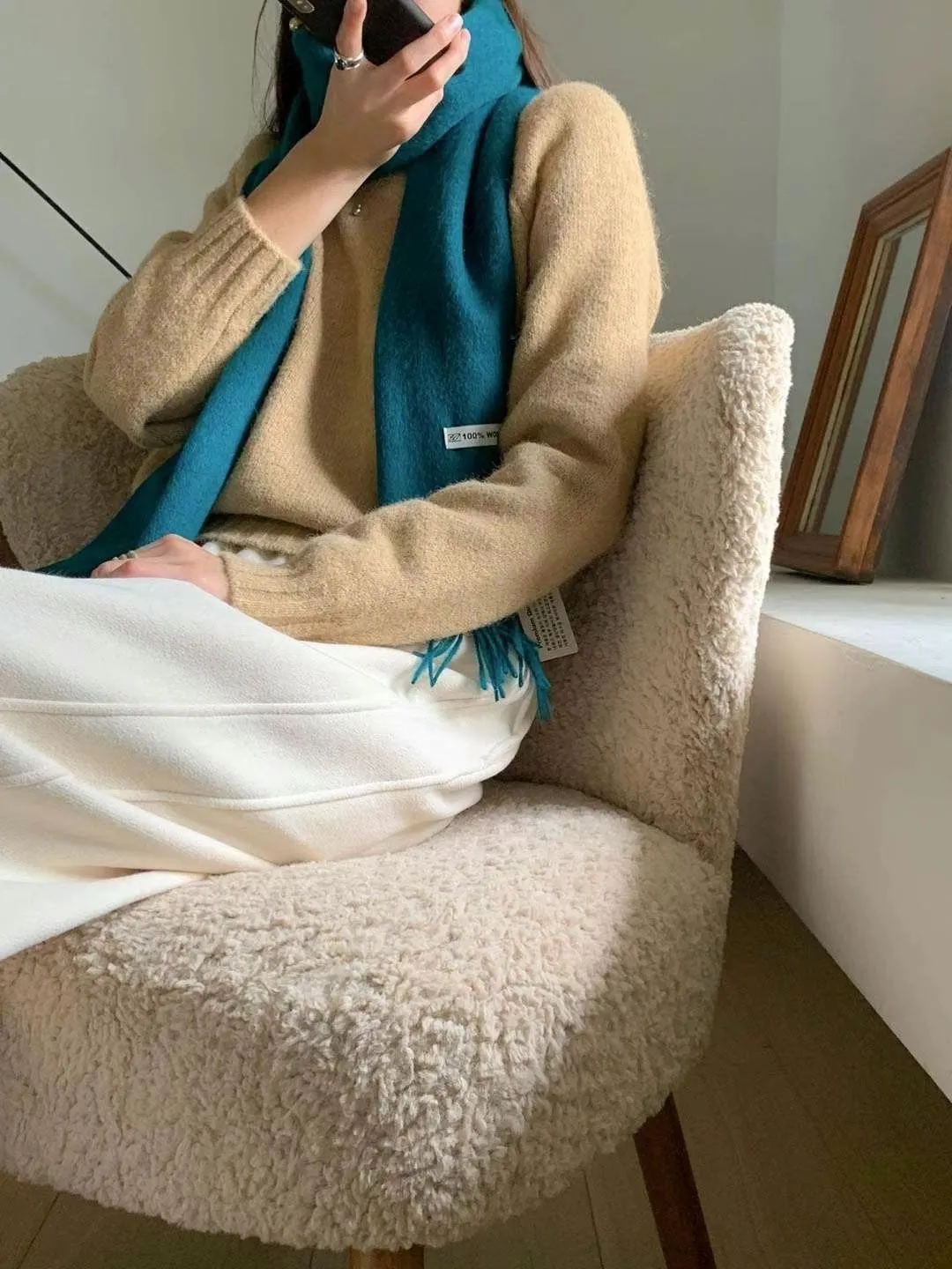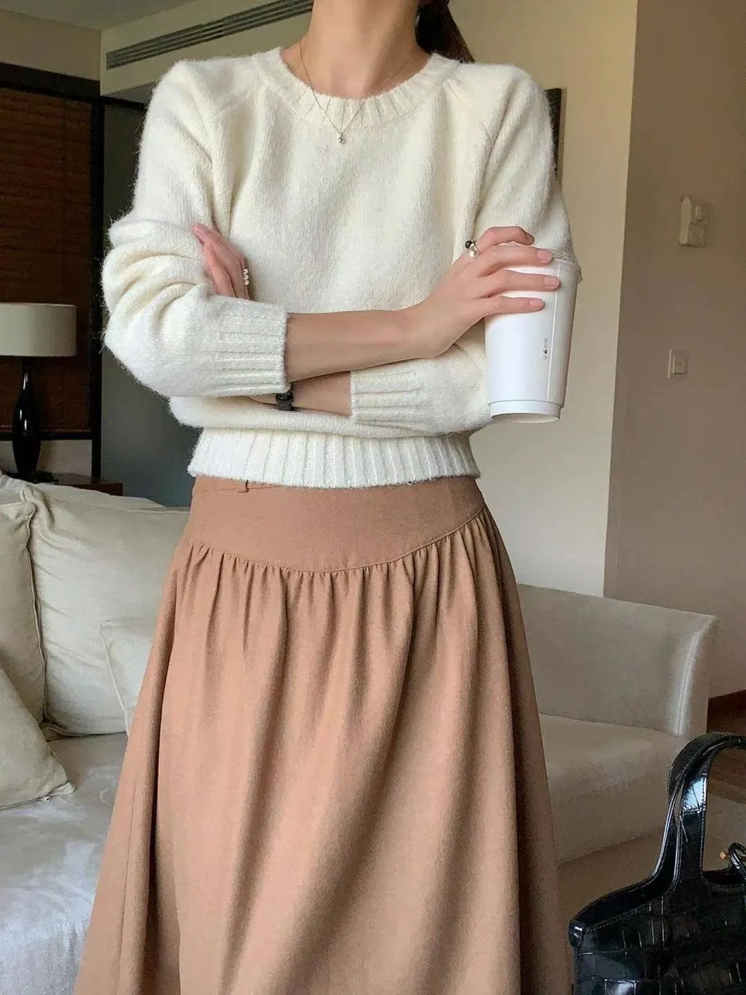 羊毛8%+聚酯 下擺縮口 簡單好看 百搭款式
