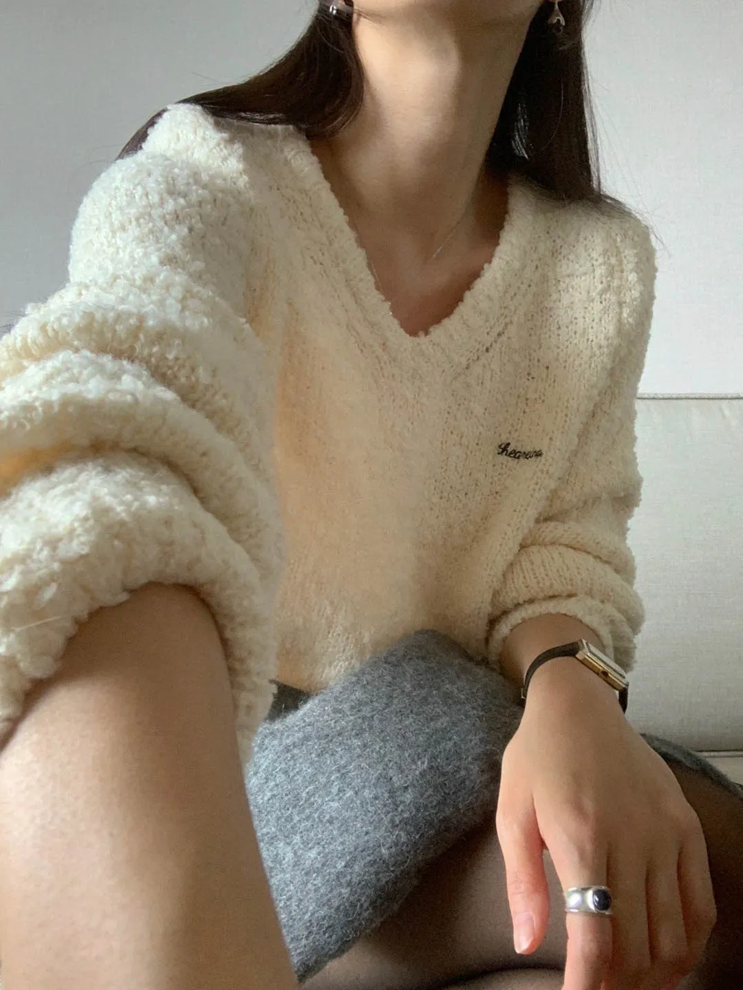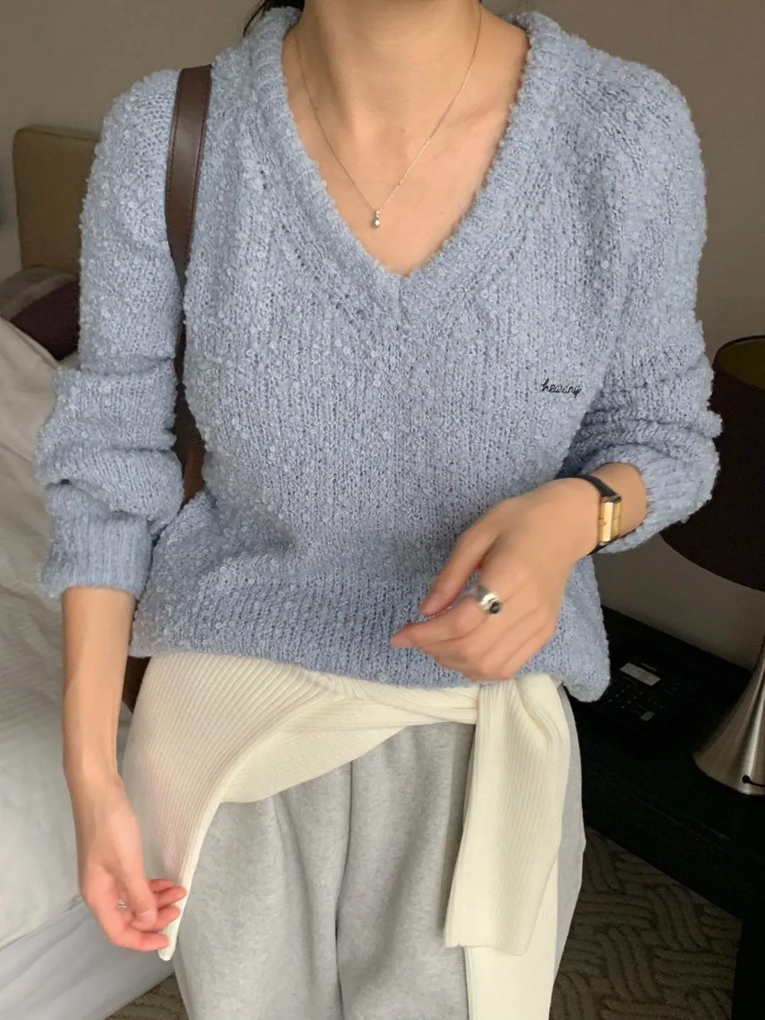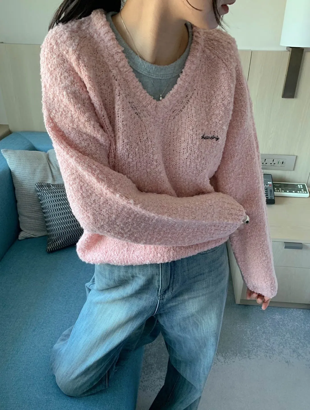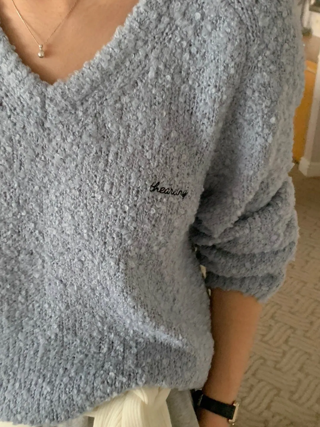 壓克力 無羊毛 親膚舒適 胸前刺繡英文 舒適寬V領
