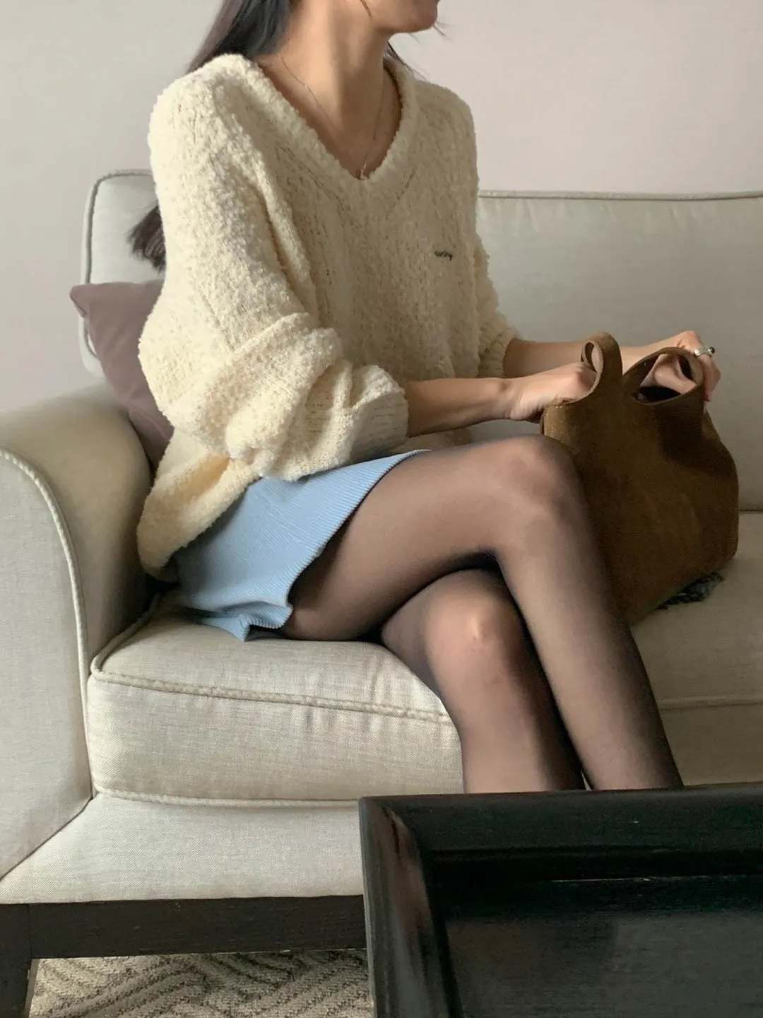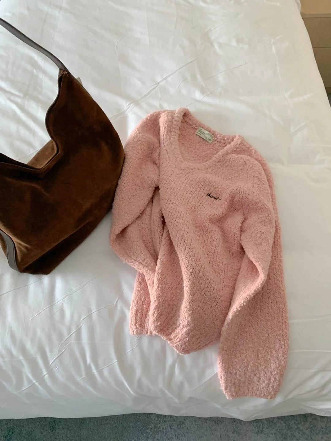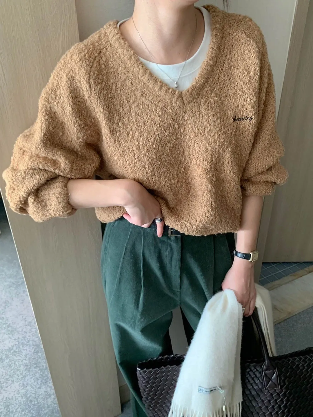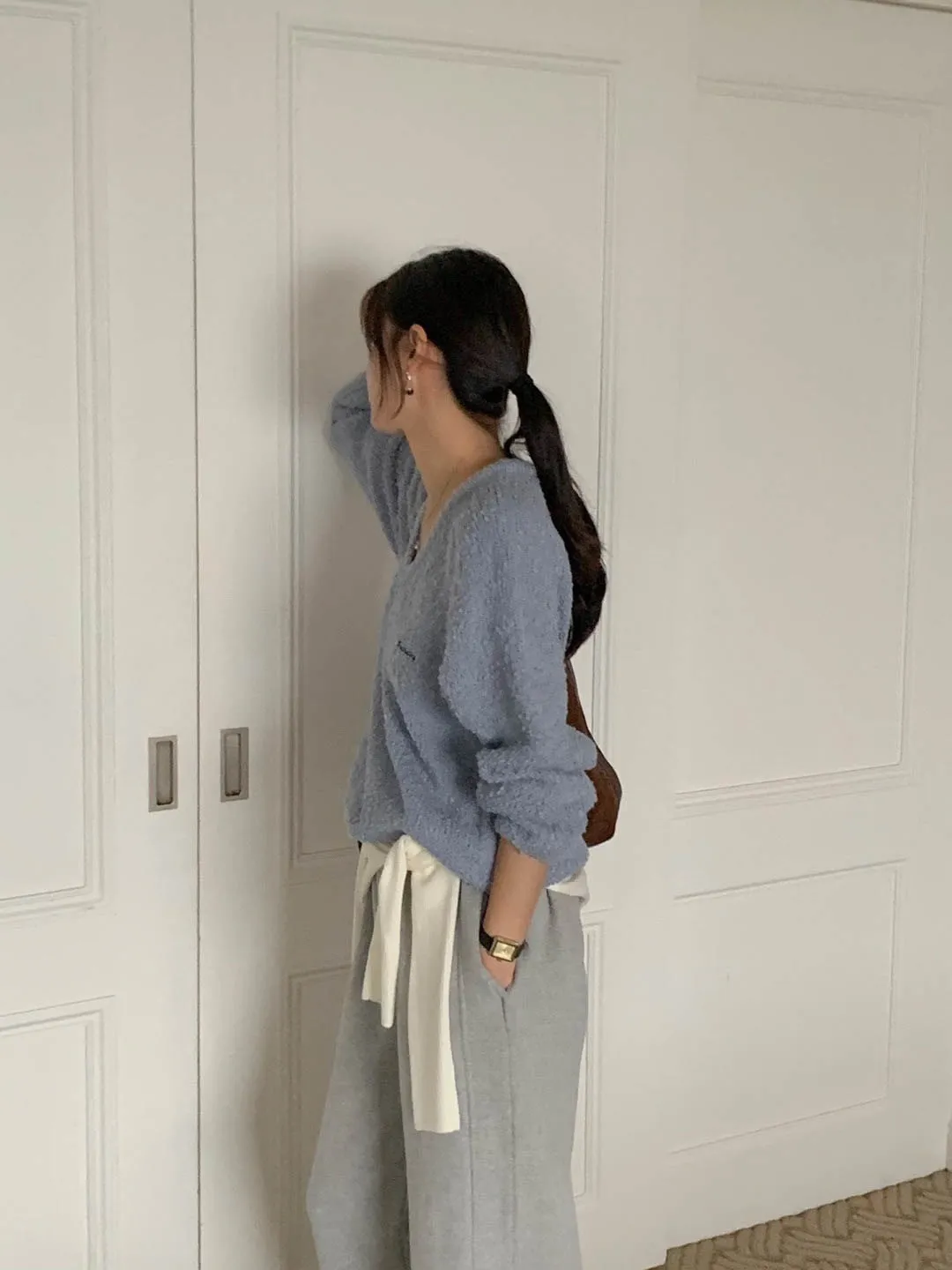 壓克力 無羊毛 親膚舒適 胸前刺繡英文 舒適寬V領